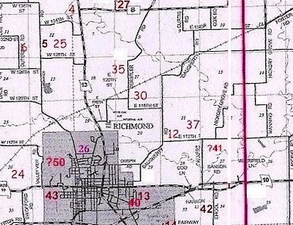 From 13 Highway north or Richmond, turn east onto Crispin Street. Crispin Street become Crispin Road. Turn left (northeast) onto Daughtery Road. Drive about 3/4 miles. Turn right (east) onto E. 112th Street. Drive about 1/4 mile. Cemetery is on the left (north) side of the road just northeast of a house that sits on the south side of the road. Cemetery is well maintained. [Ancestry.com says that Hill Cemetery is next to Watkins Cemetery; that is NOT true, that was the description for the previous cemetery that they had listed.] |
