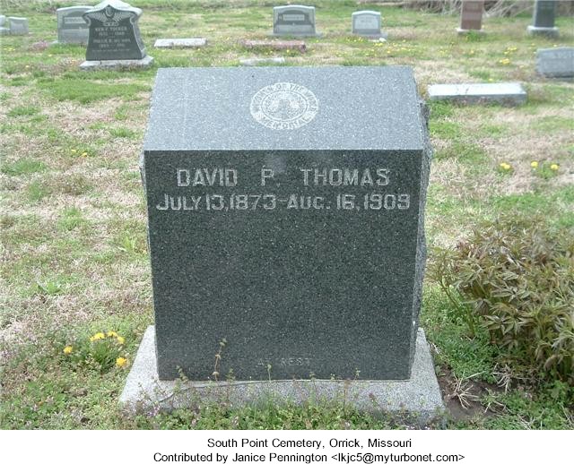 | Thomas | David P. | July 13, 1873 | August 16, 1909 | South Point Cemetery | . | Find-A-Grave | ![]() |