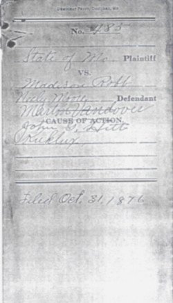 * Jan 07,1878 | for Trial April 1878 | Posted by Madison Robb Sr, J. A. Pope, Louis A. Stillwell, Joseph Hall, George W. McElrath, and S. D. Gatlin | Page 1 | Page 2 | ||||||||||