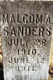Sanders, Malcom A. 28 July 1910 - 21 June 1911. Son of John Sanders & Annie M. Legg. | |