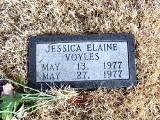 Voyles, Jessica Elaine 13 May 1977 - 27 May 1977. Infant daughter of Gordon Voyles & Lynn Dixon. |