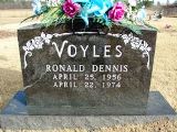 Voyles, Ronald Dennis 25 Apr. 1956 - 22 Apr. 1974. Son of Ronald Jerome Voyles & Freida Yvonne Dixon. Killed in an auto accident. |