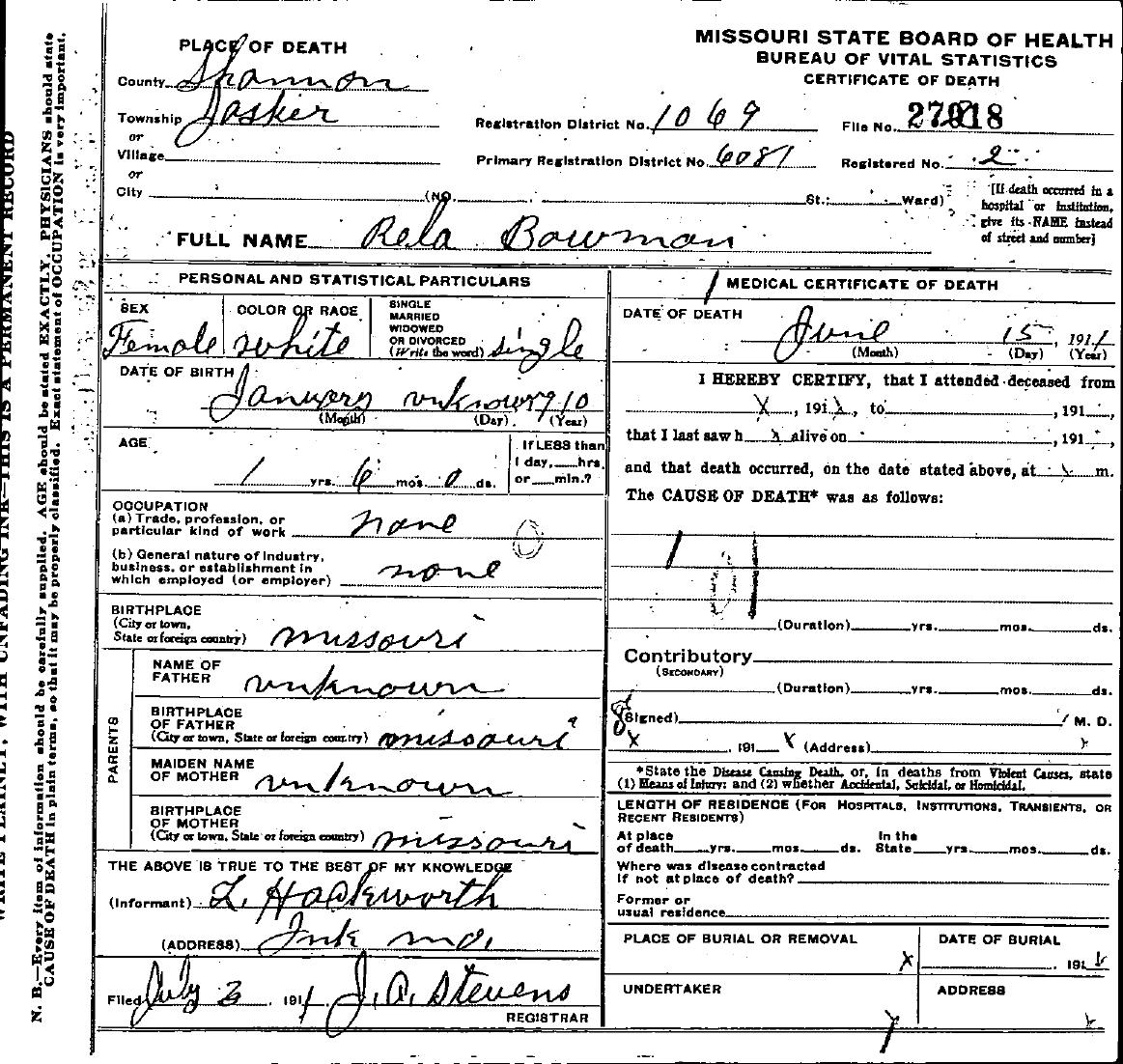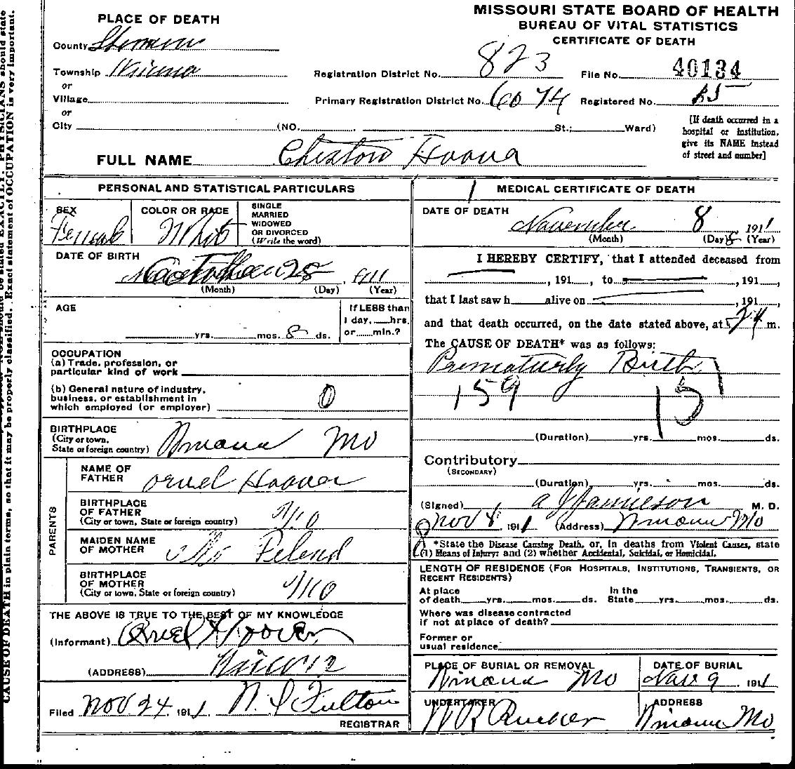 Roberts, Infant of Joseph and Emma