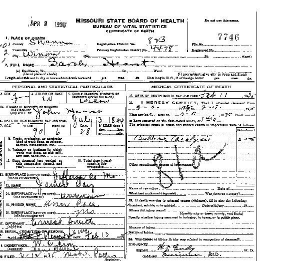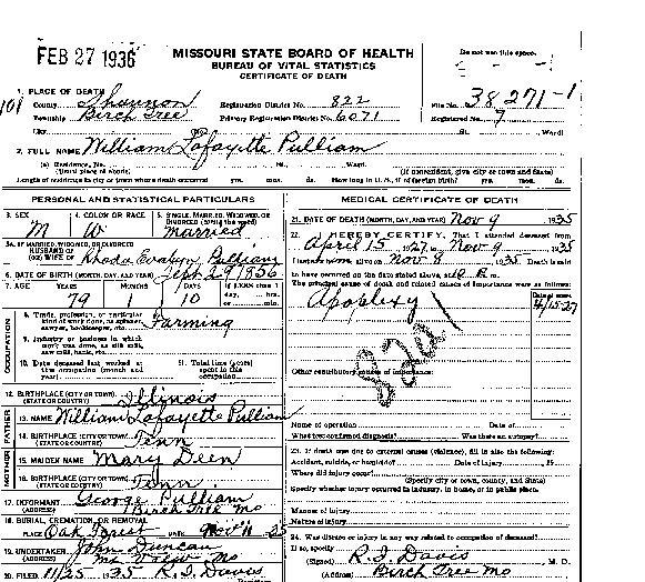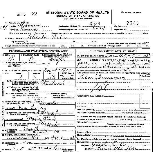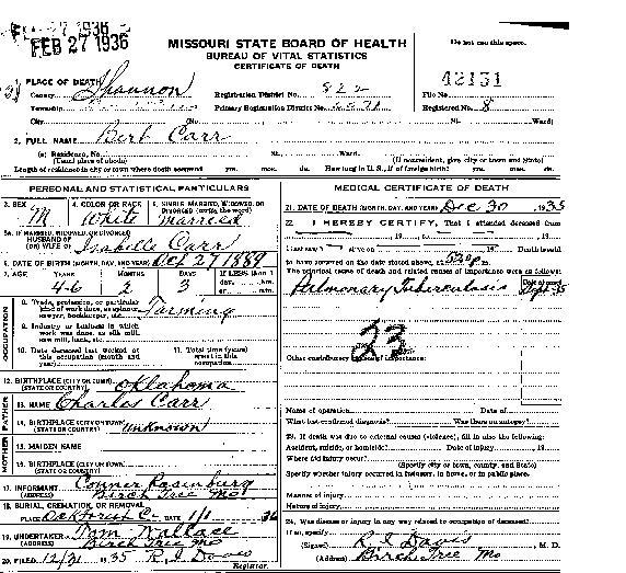 1935 Shannon County Death Certificates
