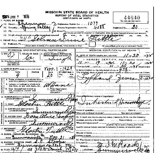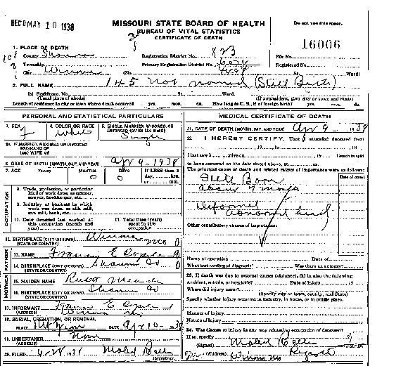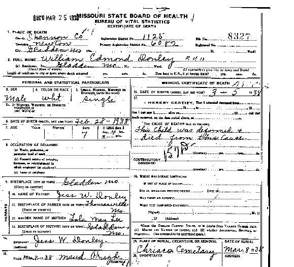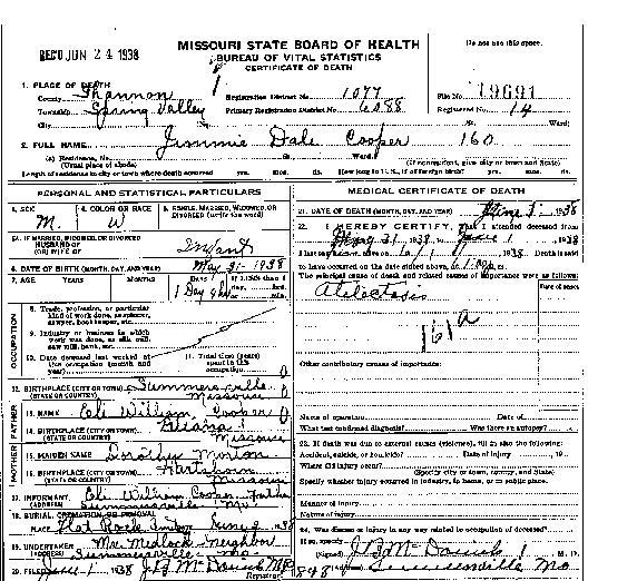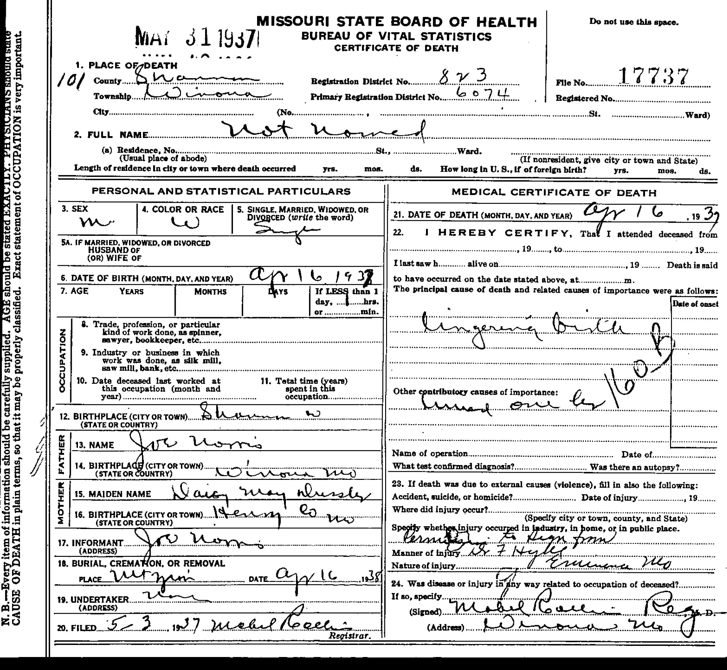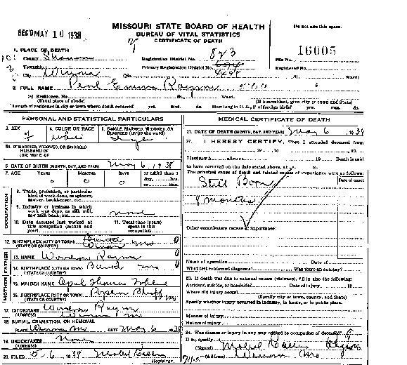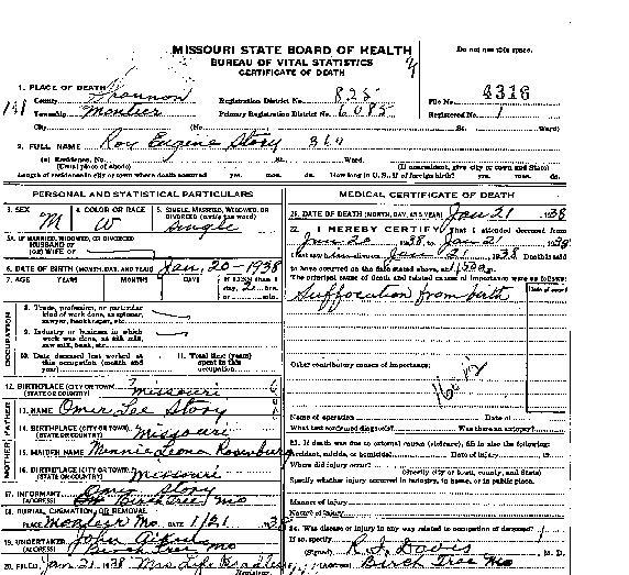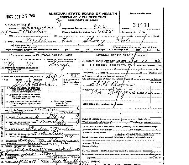 Lee stillborn infant of Frank Story