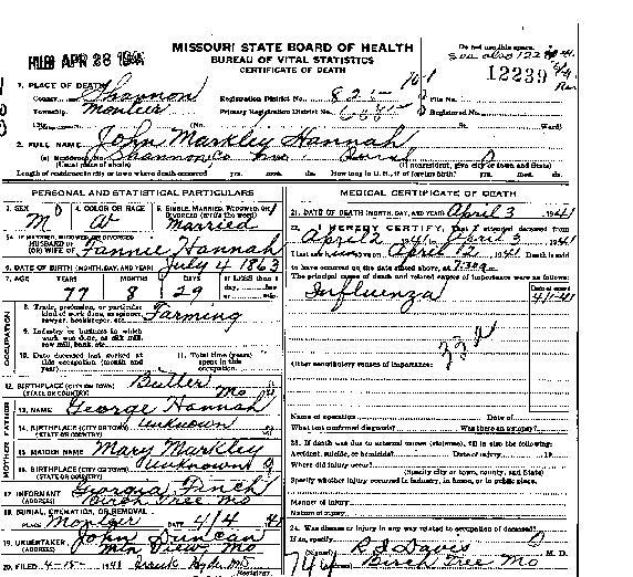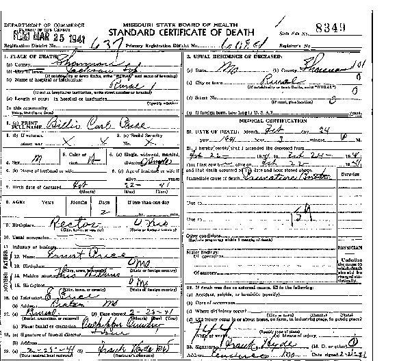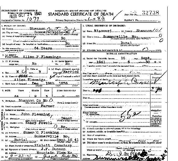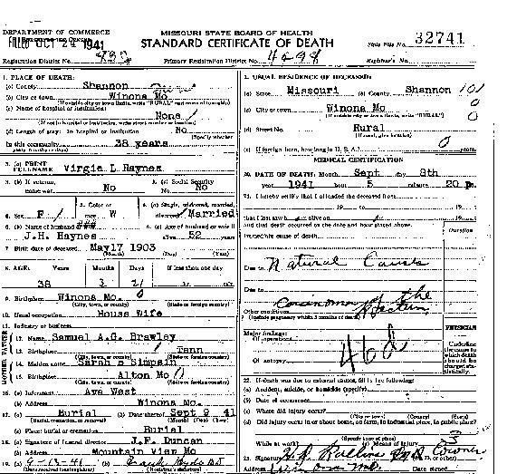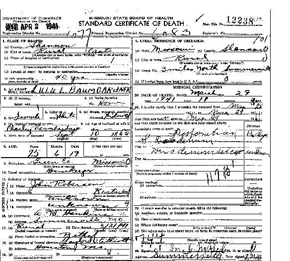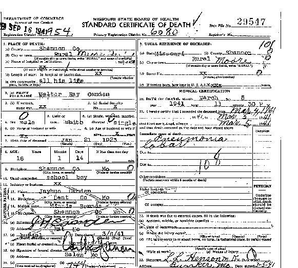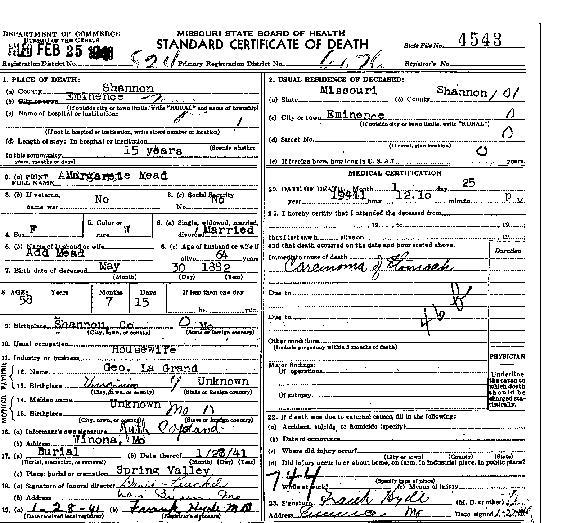 1941 Shannon County Death Certificates
