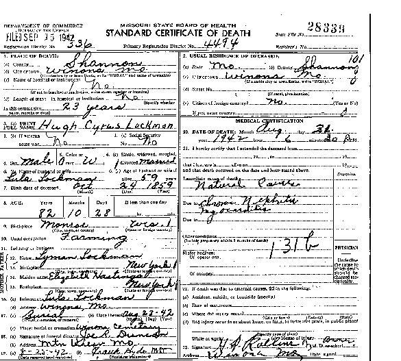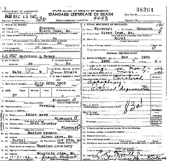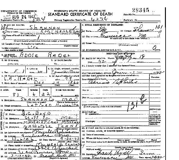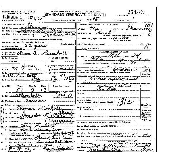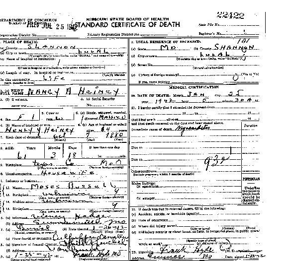 1942 Shannon County Death Certificates