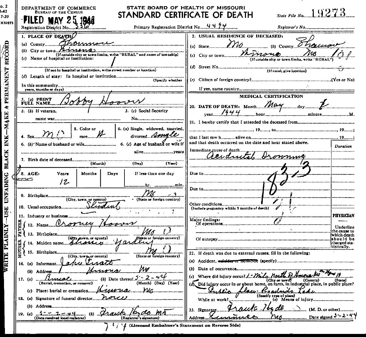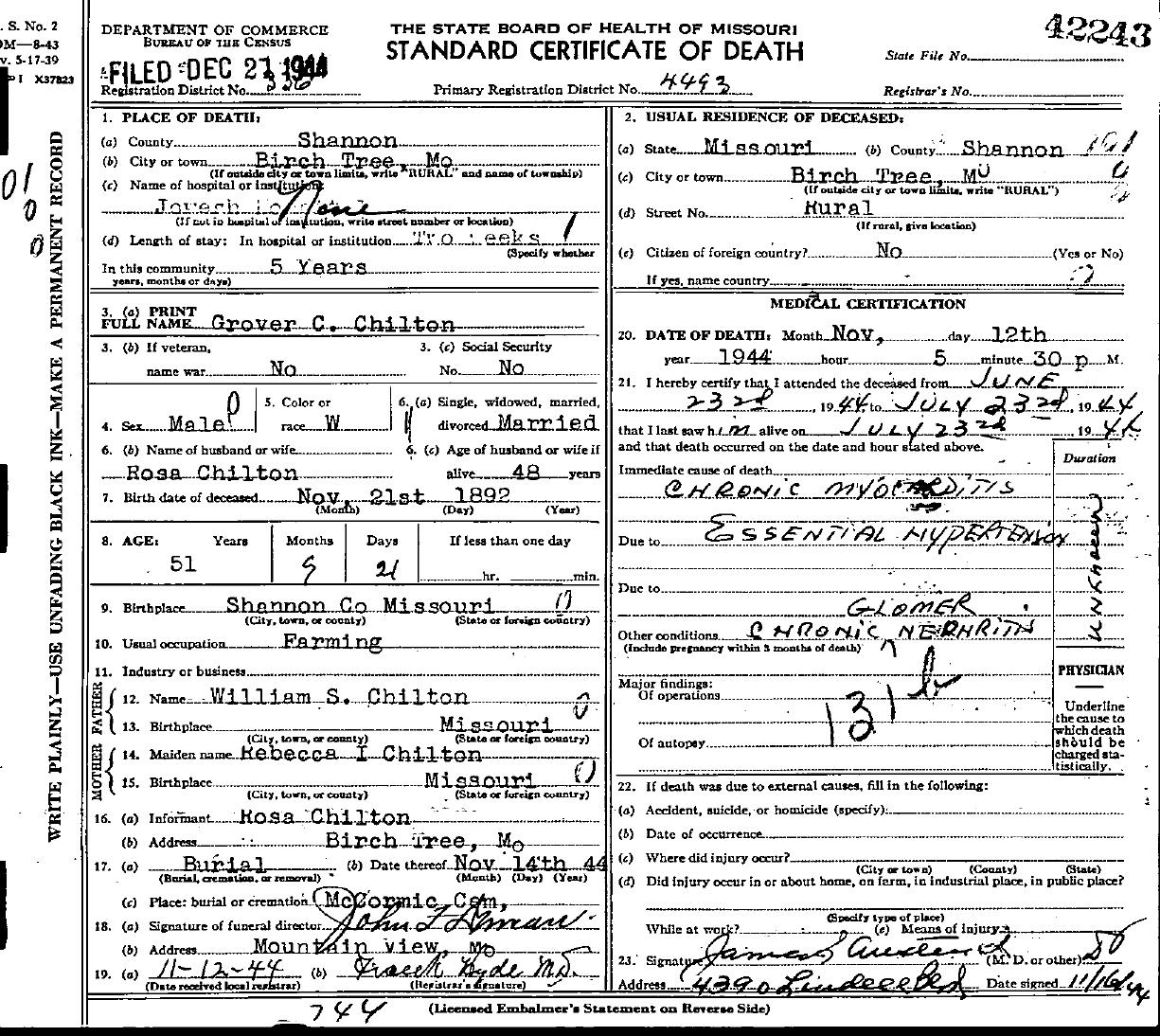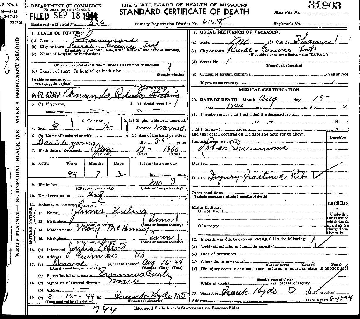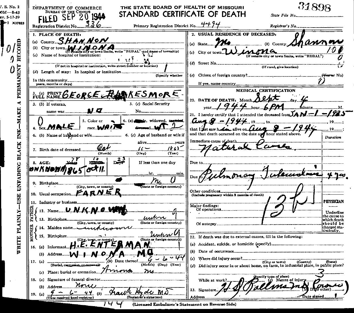 1944 Shannon County Death Certificates
