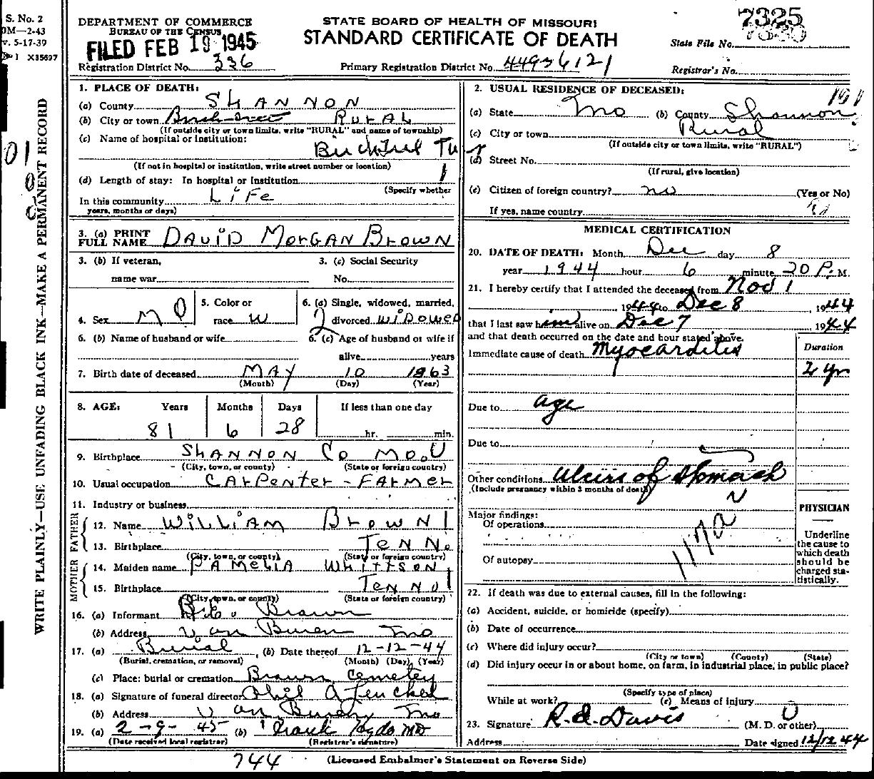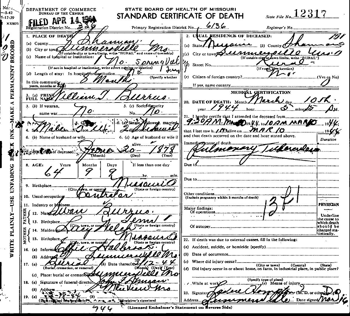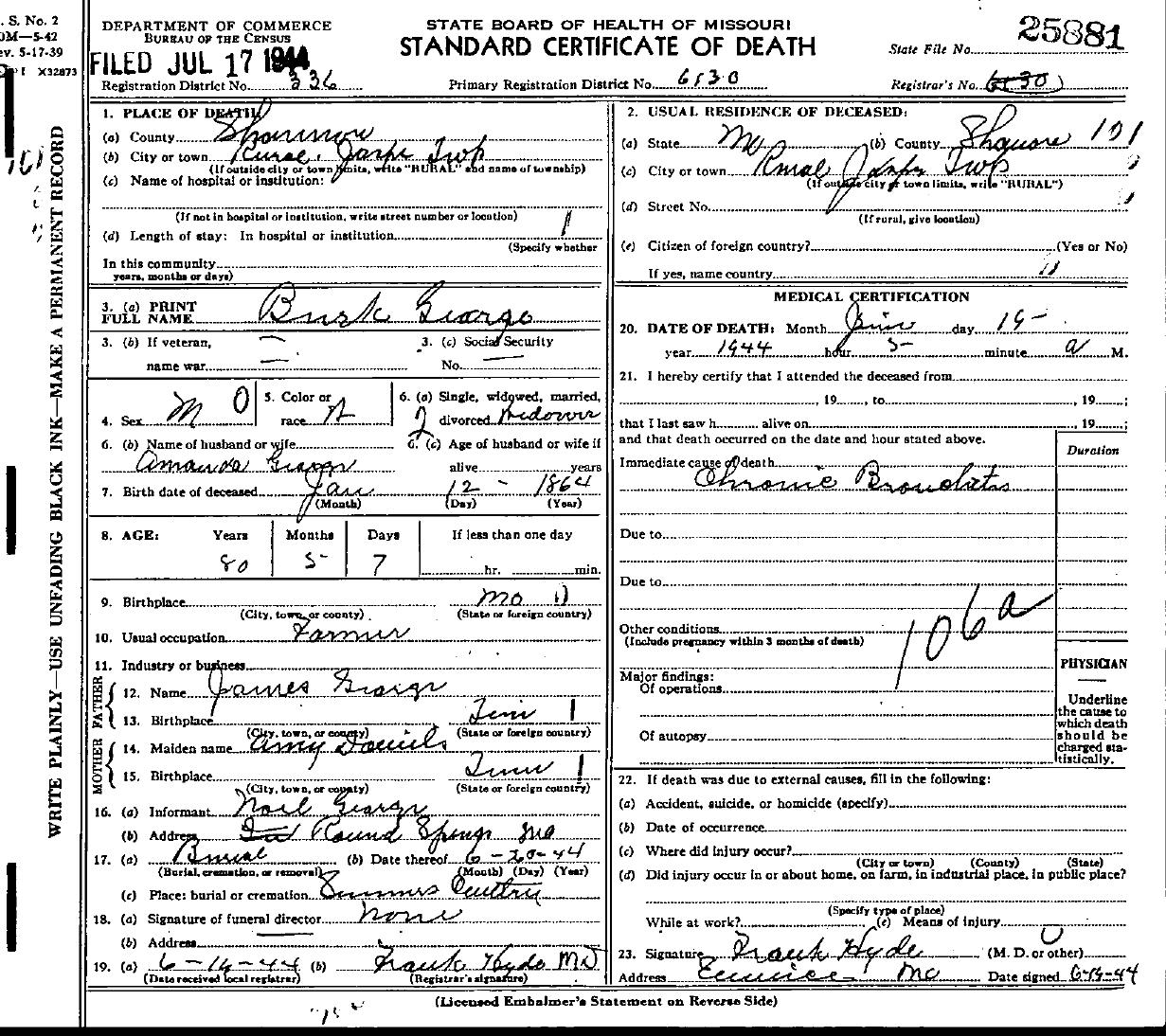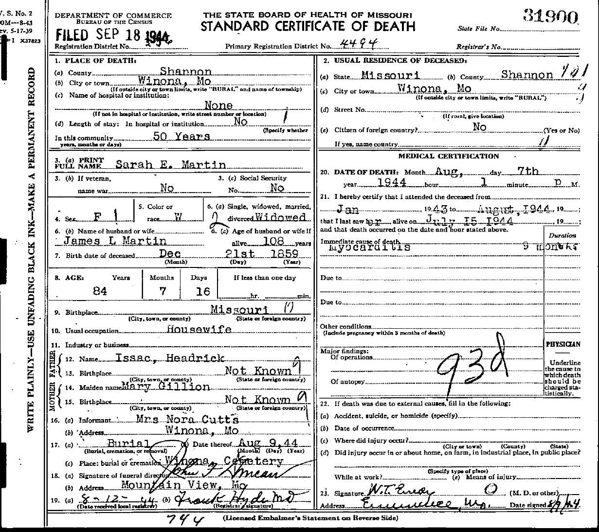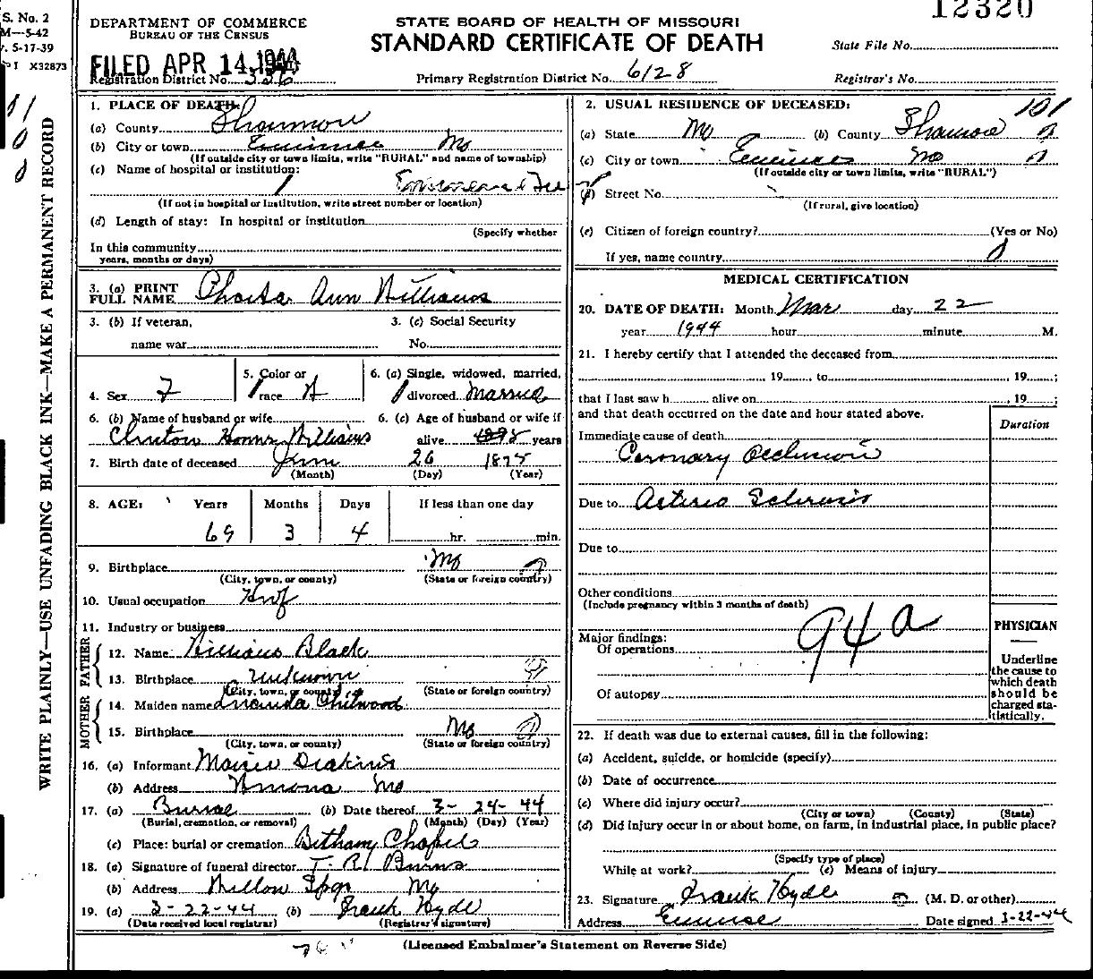 1944 Shannon County Death Certificates