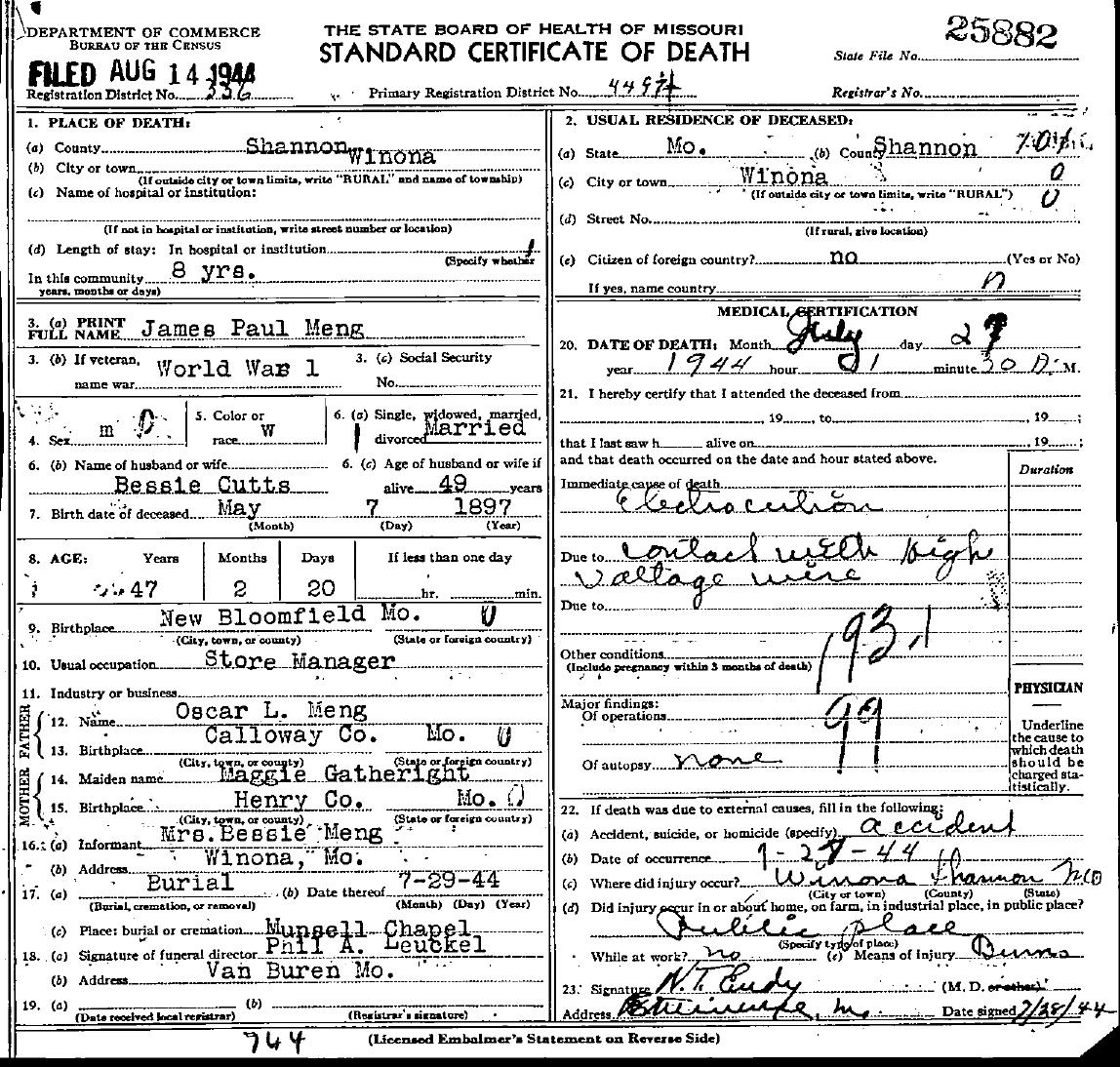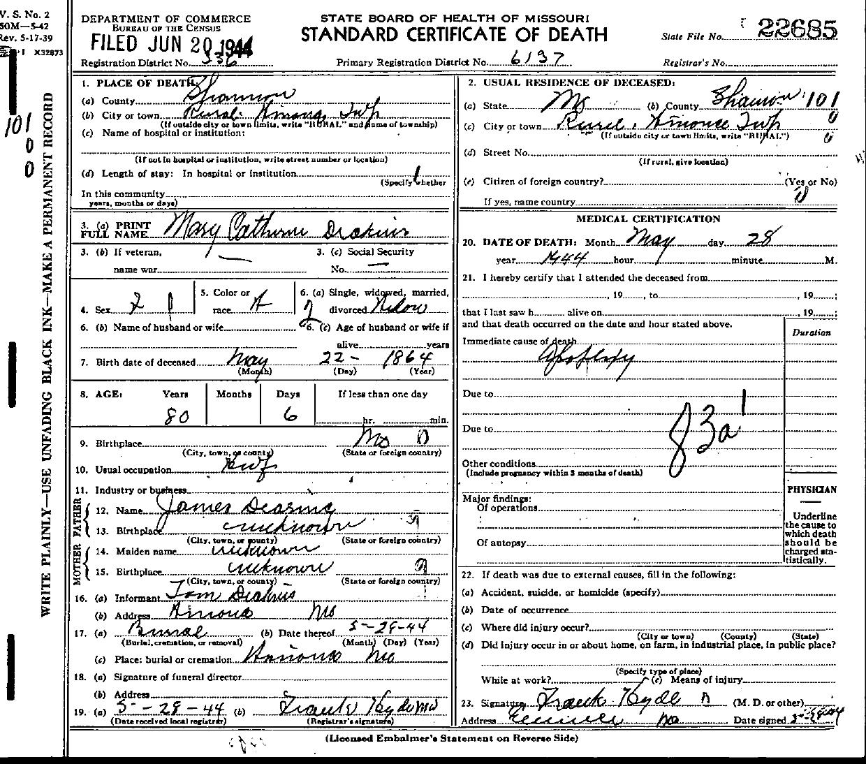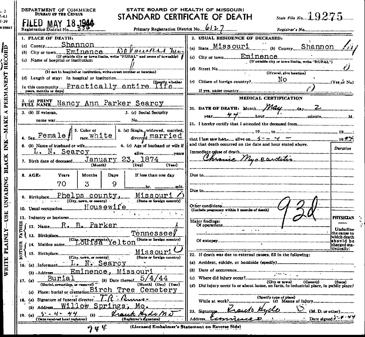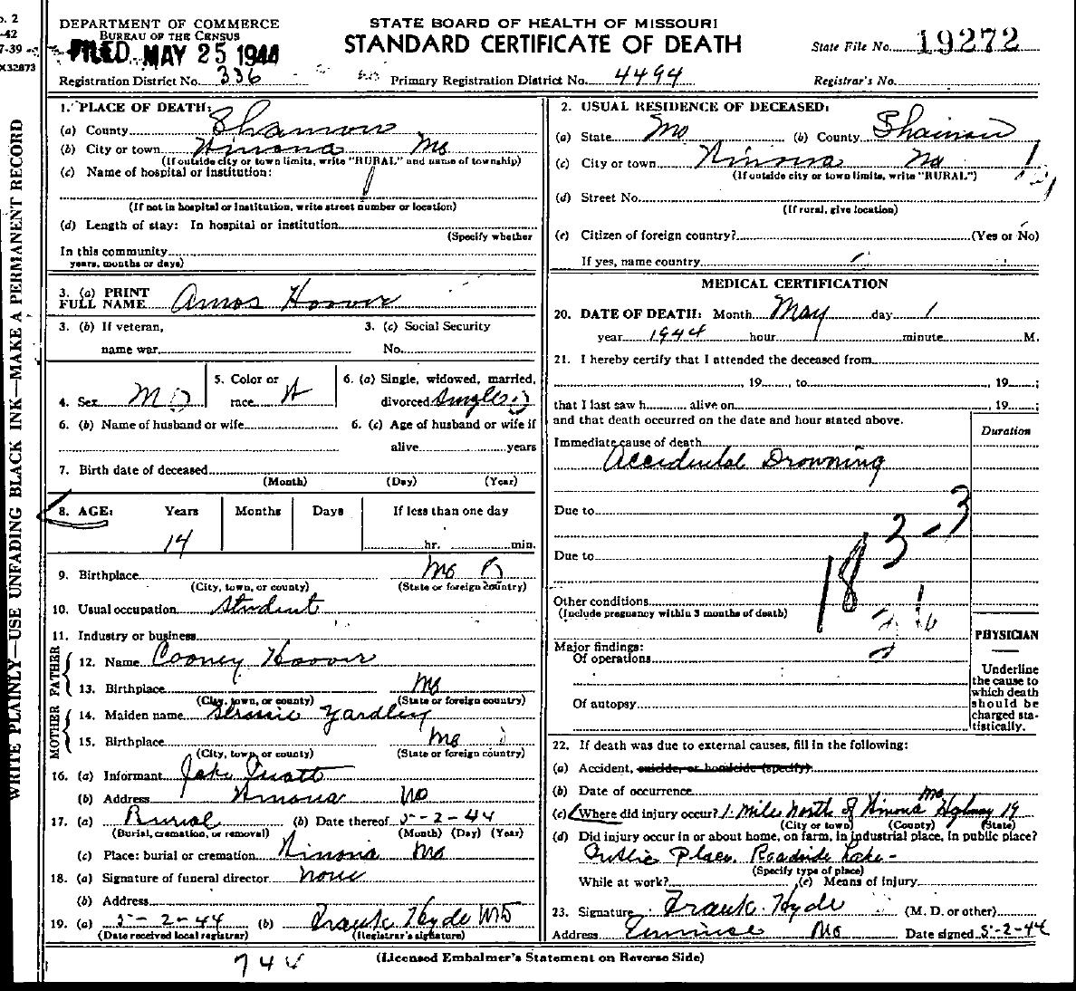1944 Shannon County Death Certificates