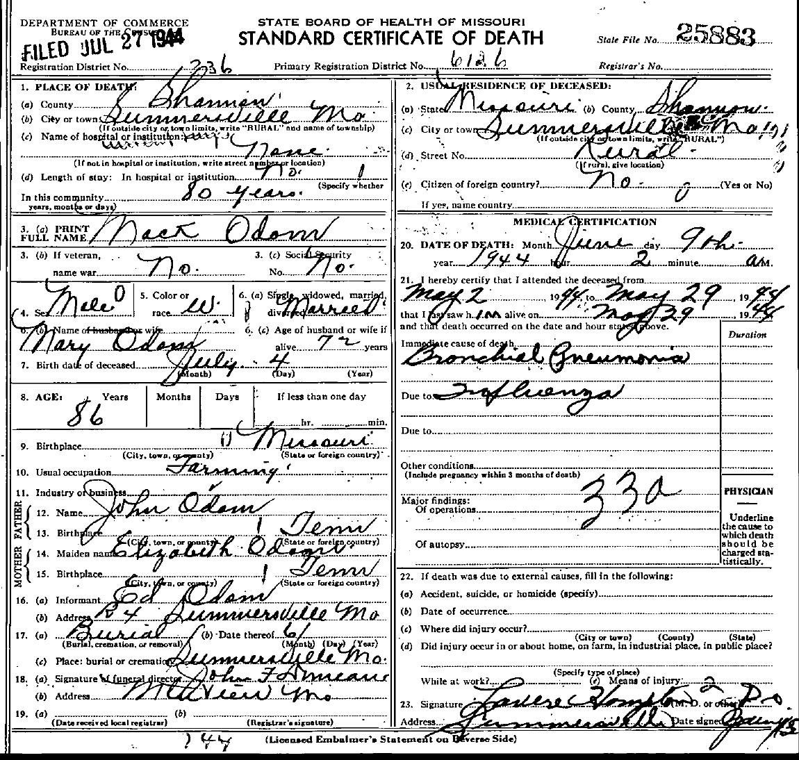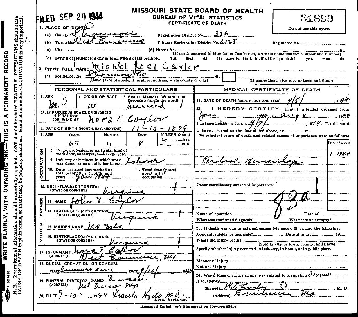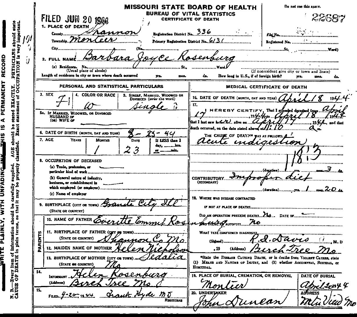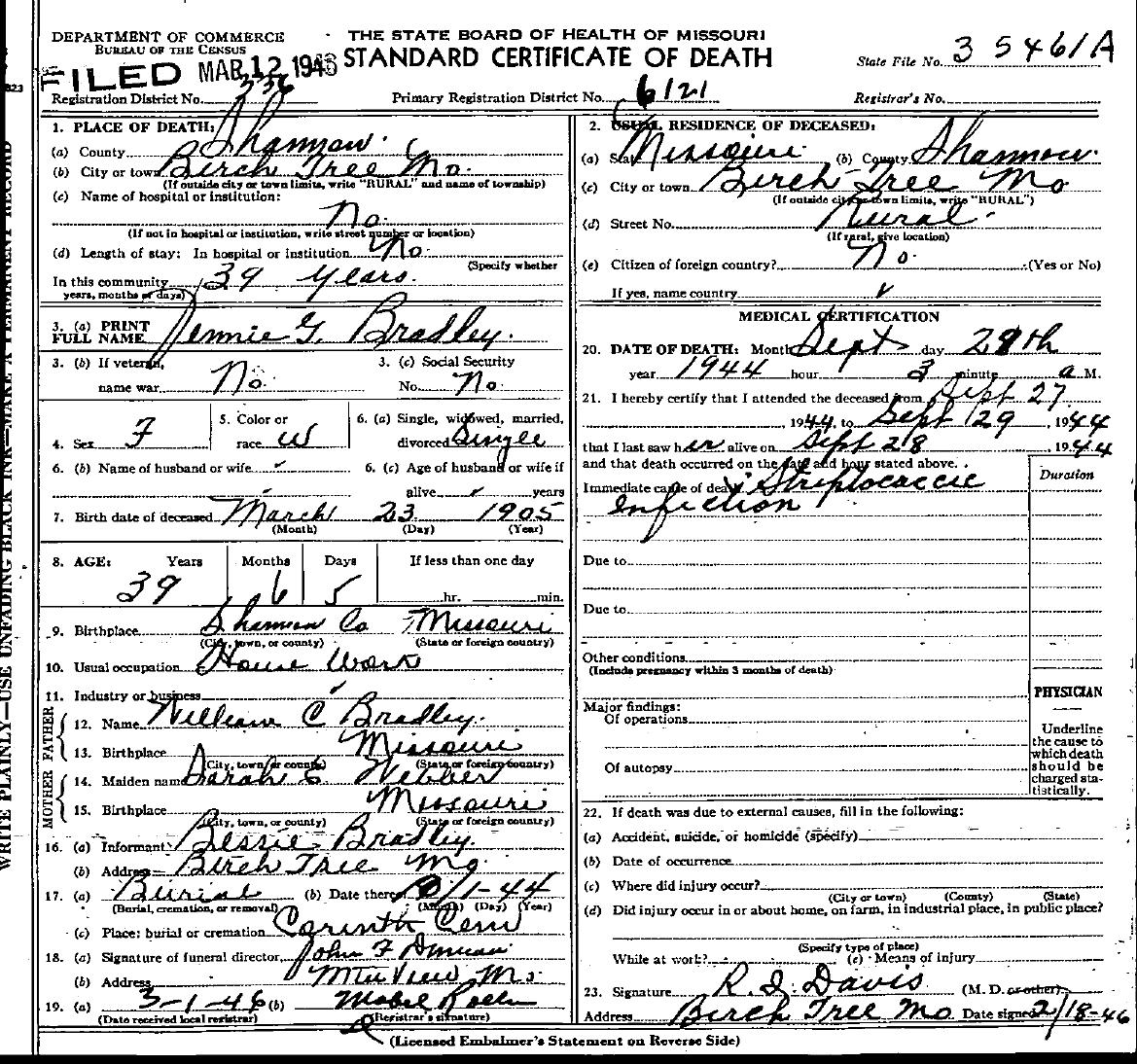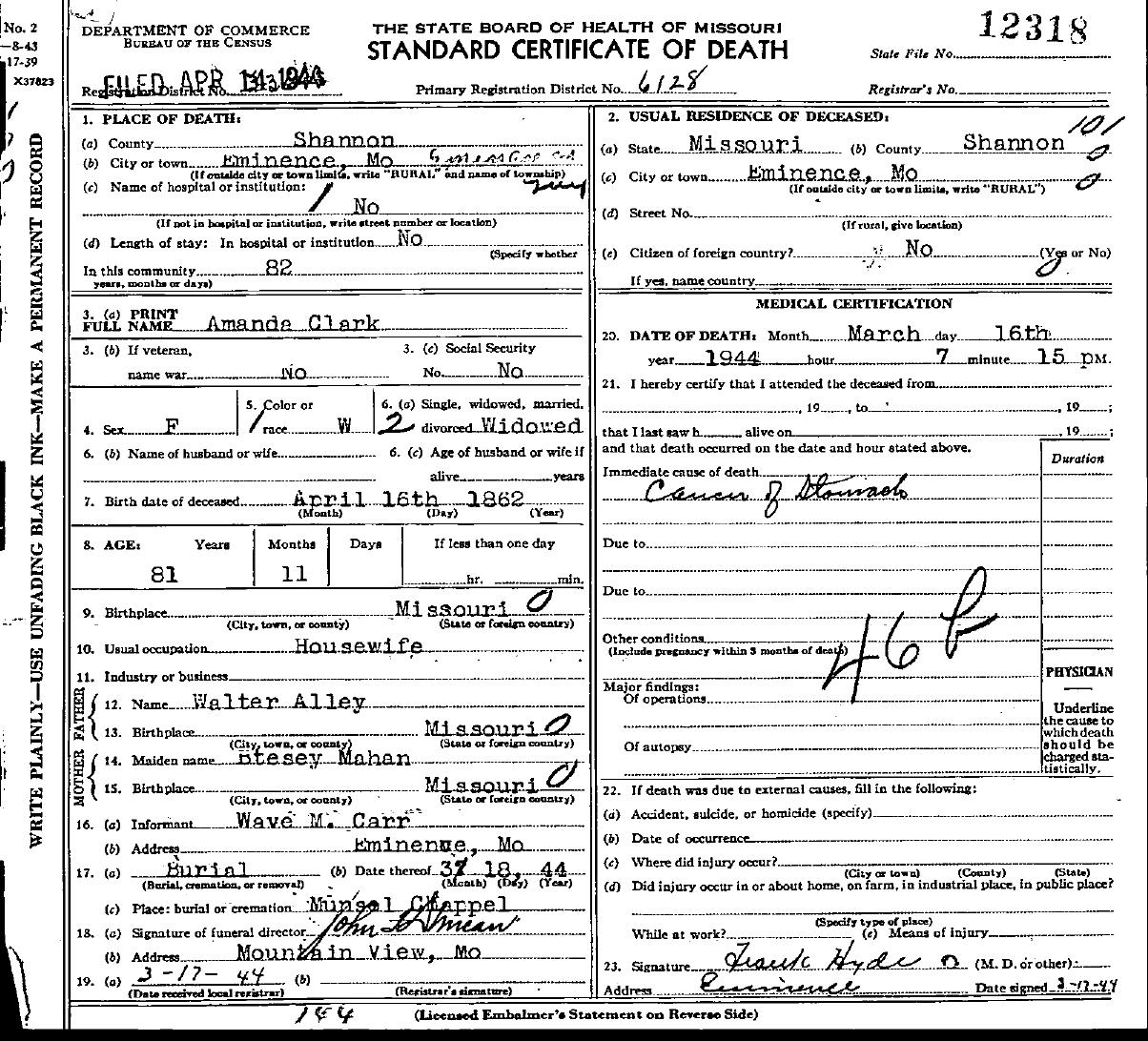 1944 Shannon County Death Certificates