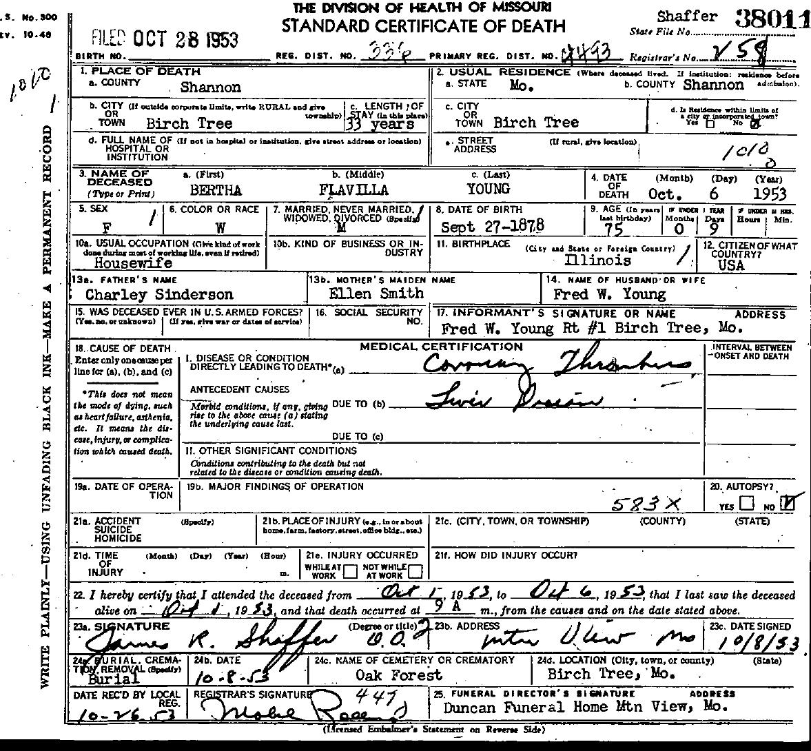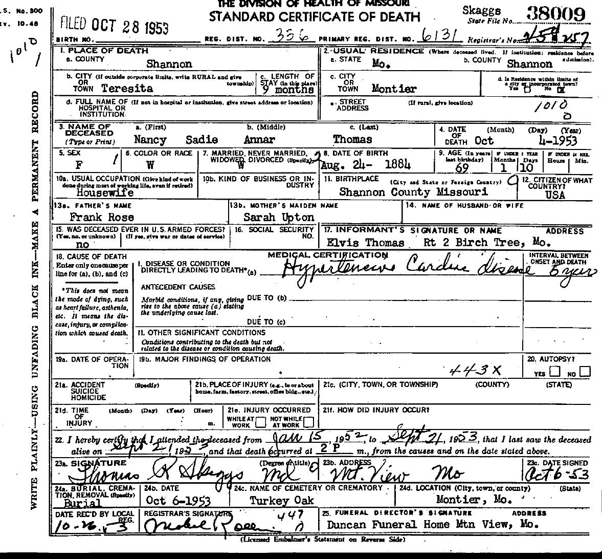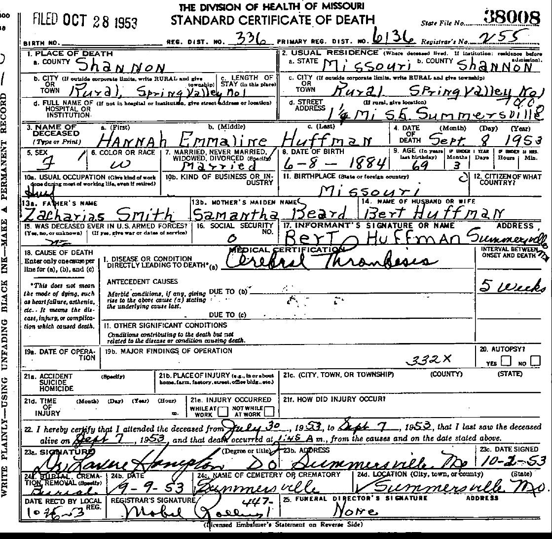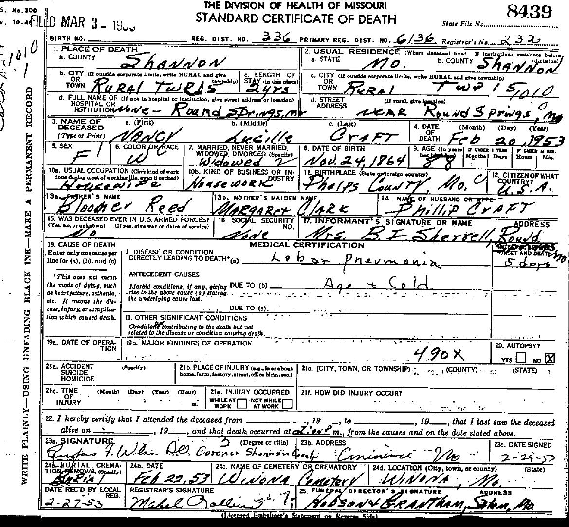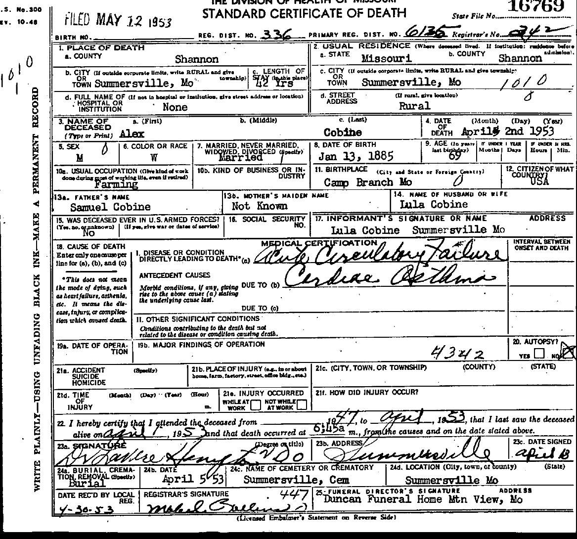 1953 Shannon County Death Certificates