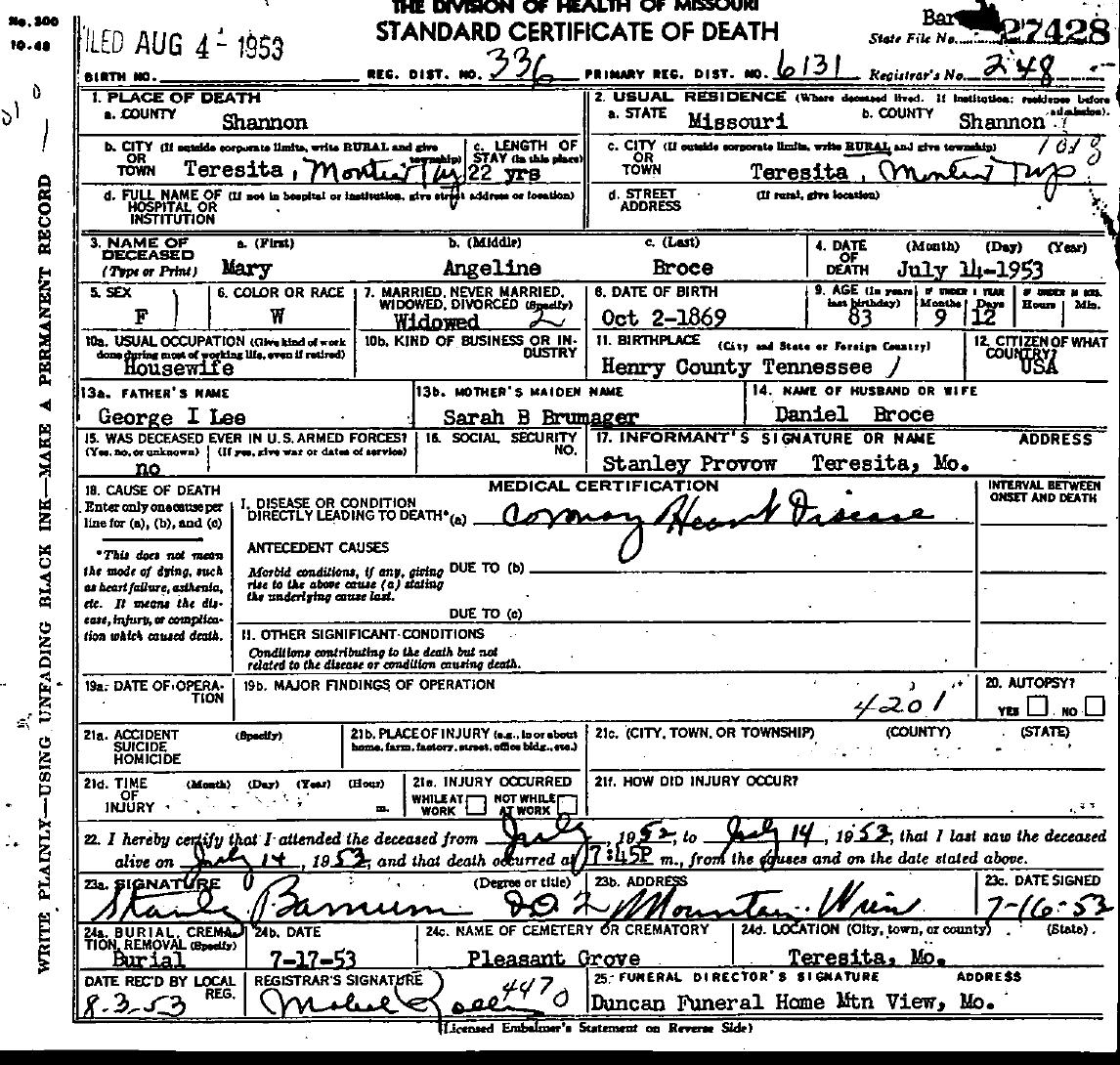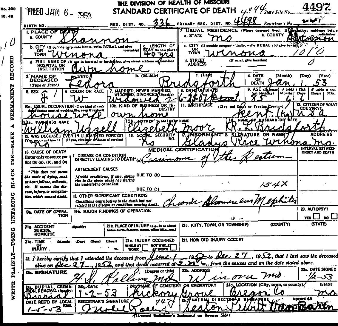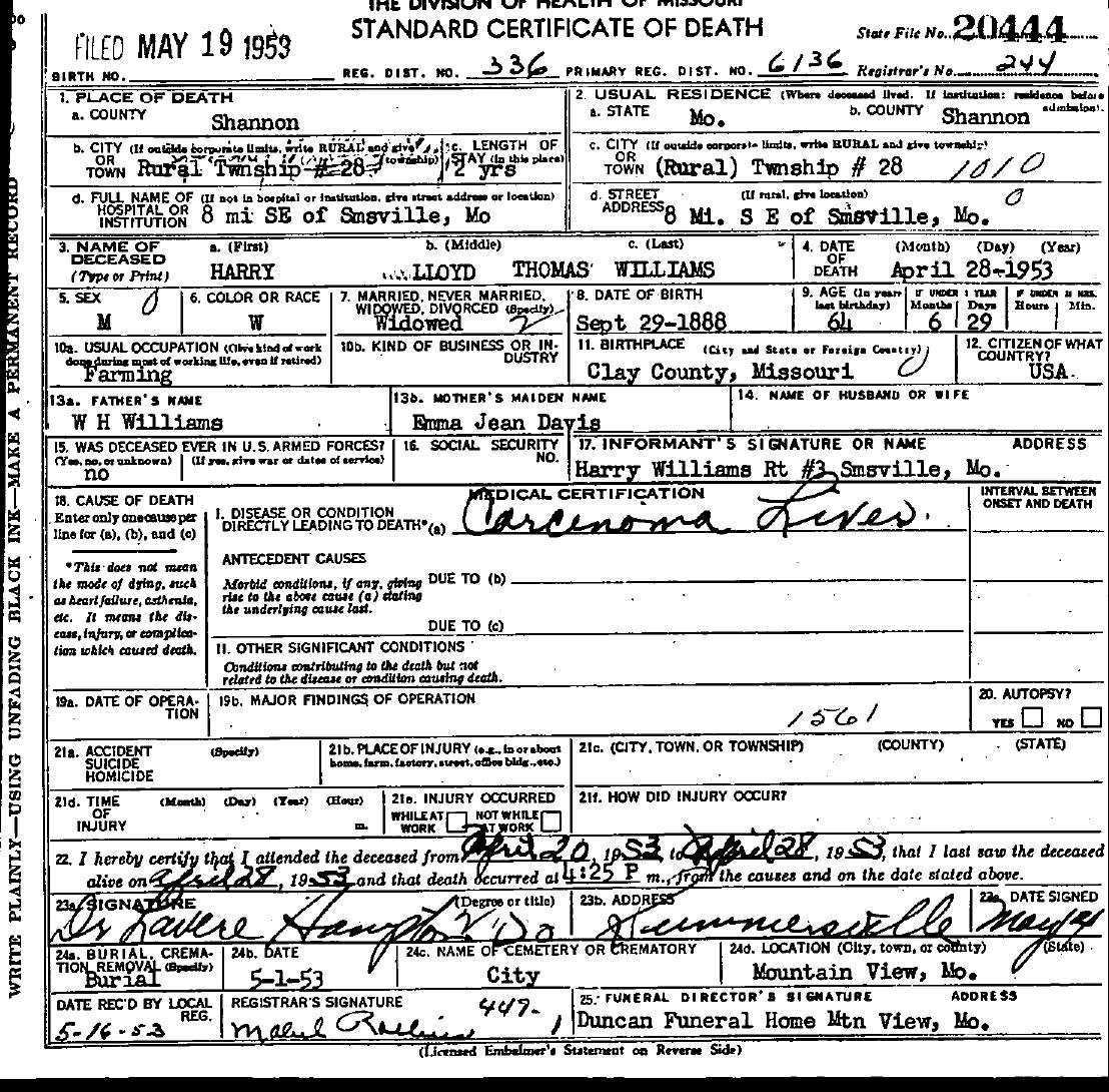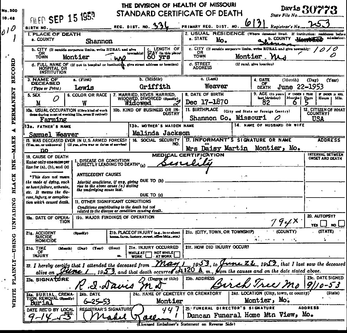 1953 Shannon County Death Certificates