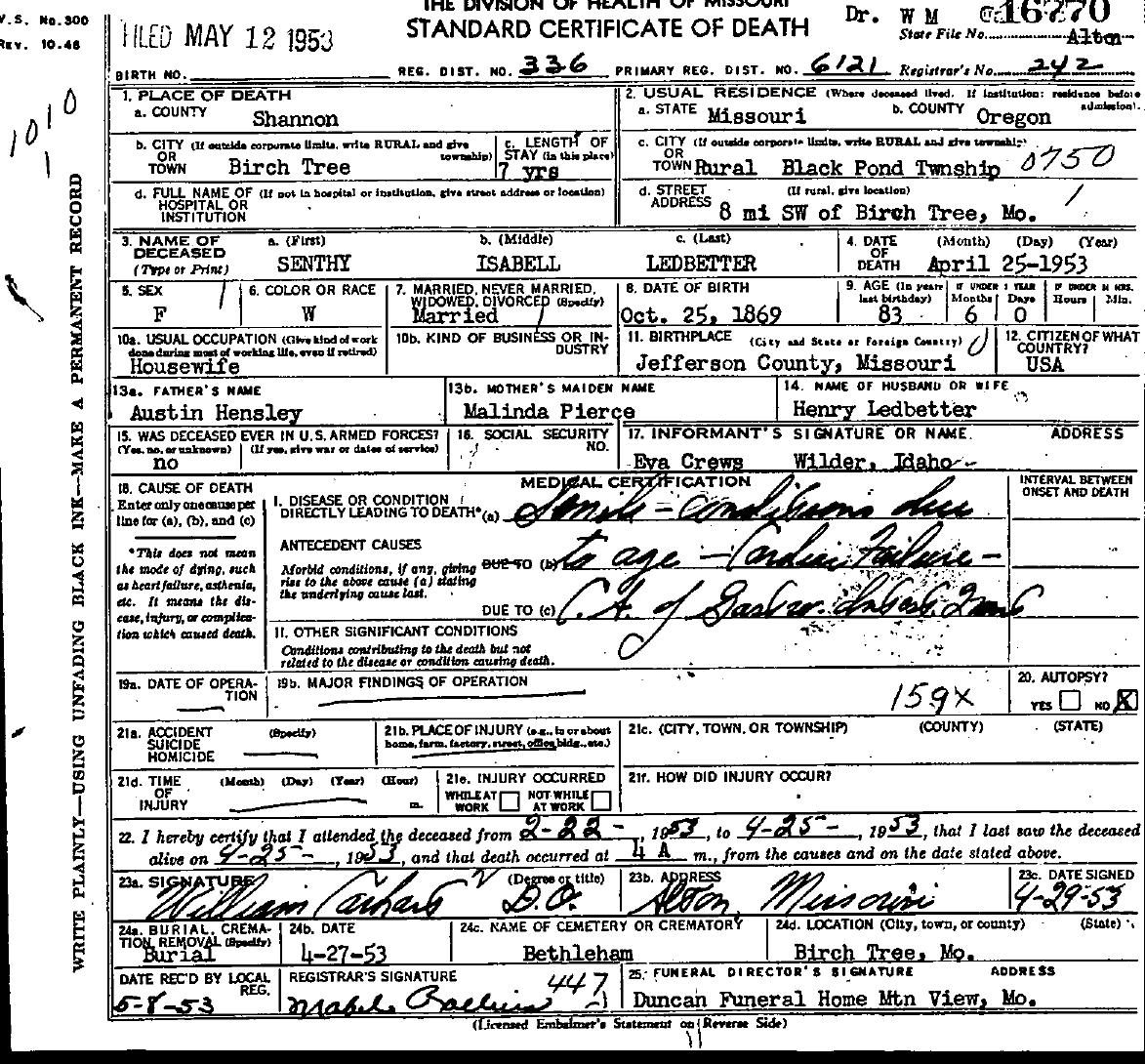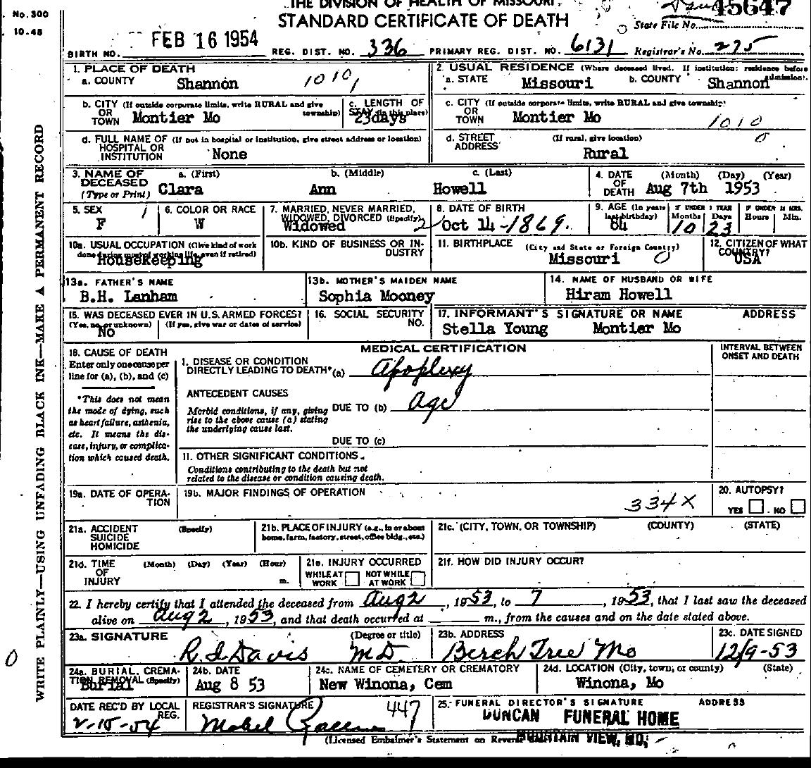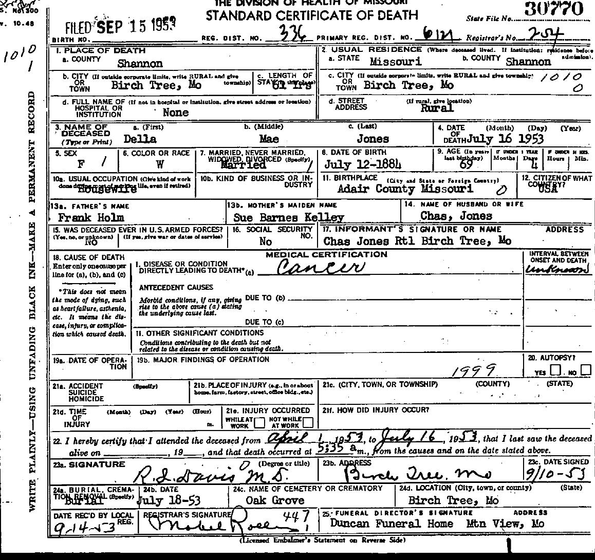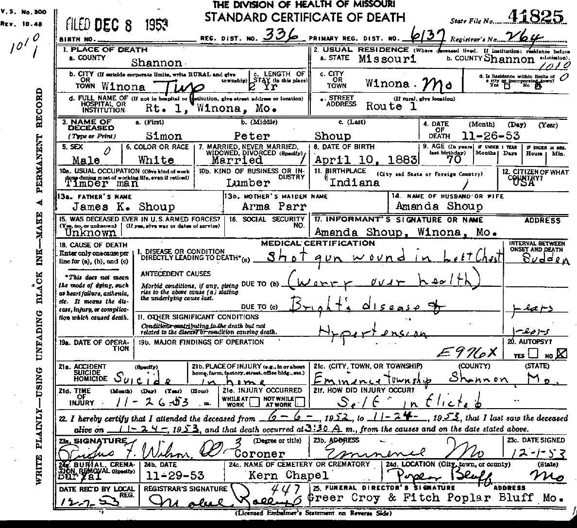 1953 Shannon County Death Certificates
