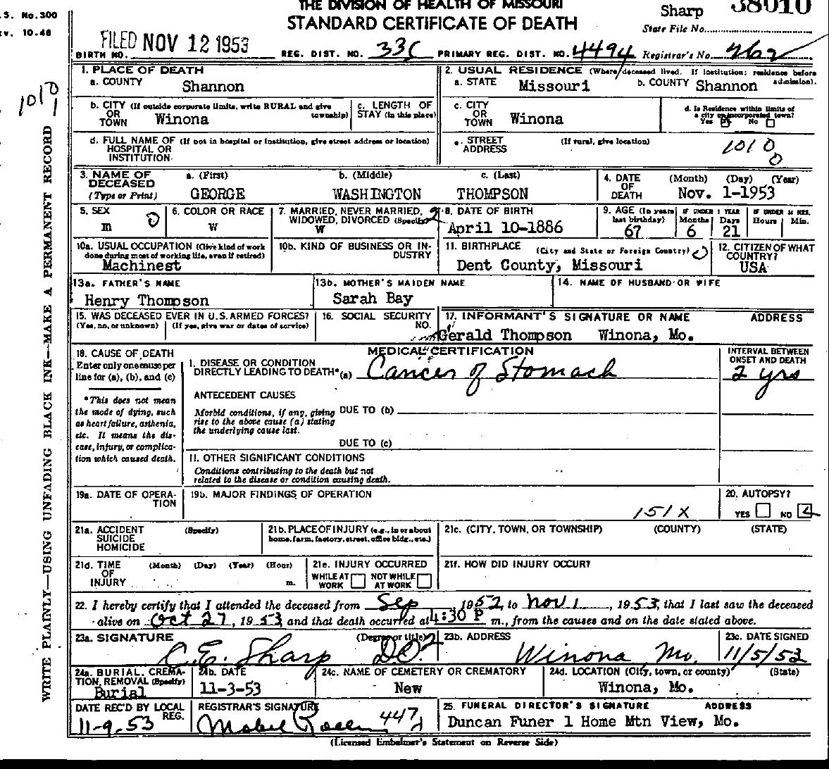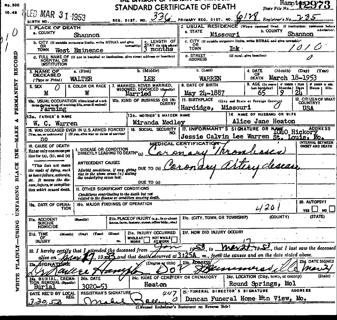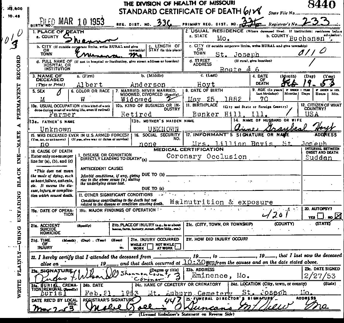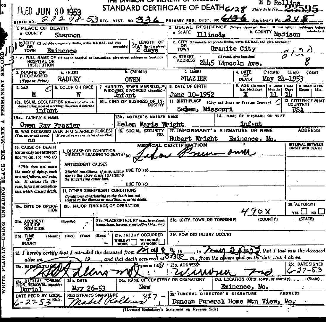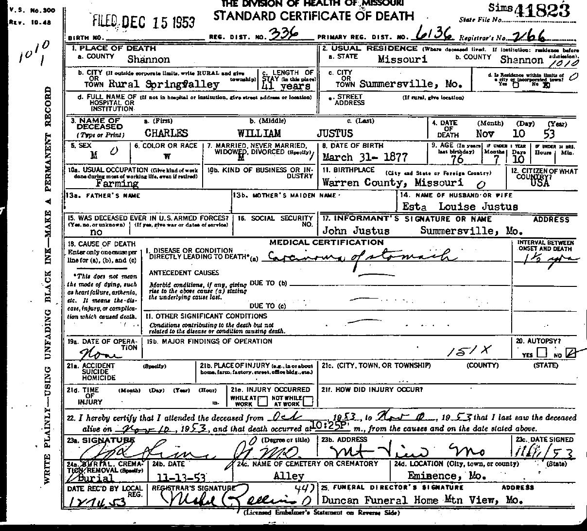 1953 Shannon County Death Certificates
