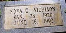 HUSBAND & WIFE: ATCHISON, Howard Jun. 17, 1917 Dec. 10, 2005. Son of Claude Atchison (1895 1966, Texas Co MO) & Nellie Unknown, (1893 Unknown). ATCHISON, Nova G. Jan. 23, 1920 Jun. 16, 1992. Daughter of William Abner Ab Richardson (1895-1968) & Bessie Lucinda Piatt (1897 1989). |