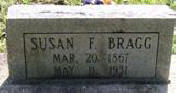 BRAGG, Susan F. Mar. 20, 1867 - May 11, 1931. Daughter of Robert Bragg (1836 Unknown) & Jane Morgan Banks (1834 1899, Southeast MO). Mother of Blanch Bragg. | ||