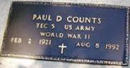 DOUBLE: Married Nov. 22, 1947 COUNTS, Betty Jane Piatt Apr. 28, 1931 18 Sept 2006. Daughter of Thomas Oliver Piatt (1888 1987) & Blanch B. Bragg (1887 1972). COUNTS, Paul D. Feb. 2, 1921 - Aug. 8, 1992. Son of James Carroll Counts (1878 1972) & Margaret Emaline Nash (1891 1961). |