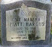 HARCUS, Osie Marsha Piatt Aug. 30, 1961 - Jan. 3, 1994. Child of William Henry Willie Piatt & Elsie E. Ellerman. Wife of Thomas Murray Harcus (1954 Living). | ||