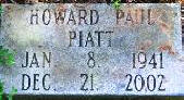 PIATT, Howard Paul Jan. 8, 1941 Dec. 21, 2002. Son of William Henry Willie Piatt & Elsie E. Ellerman. Husband of Carolyn Joyce Comely. | ||