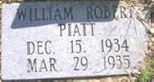 PIATT, William Robert Dec. 5, 1934 Dec. 29, 1935. Son of Samuel Hugh Piatt (1909 - 1945) & Opal Pauline Ellerman (1915 - Unknown). | ||
