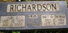 HUSBAND & WIFE: RICHARDSON, Earl D. 15 Oct 1915 - 11 Jan 2000. Son of William Albert Richardson (1895 1968) & Bessie Lucinda Piatt (1897 1989). RICHARDSON, Inez Opal Thompson 17 July 1924 - 09 Oct 1993. Daughter of Elijah L. Thompson (1887 1975) & Pearl Myrtle Pankey (1893 1950). |