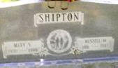 DOUBLE: SHIPTON, Mary Velma Counts Jun. 30, 1930 Jun. 18, 1999. Bird. Daughter of Noble Wesley Counts (1907 1987) & Martha Rebecca Counts (1909 1973). SHIPTON, Russell M. Aug. 22, 1916 Oct. 2, 1983. Son of Benjamin Harrison Shipton (1889 1983) & Nora Iva Keele (1887 1919). |