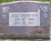 THOMPSON, Jesse 20 Mar 1886 - 22 Sept 1950. Son of Hiram Wade Thompson (1858 1916) & Nancy Emaline Medley (1858 1945). NOTE: He married 1st Ethel Dooley. He married 2nd Minnie Hassel. Data from death certificate. | ||