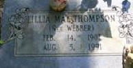 THOMPSON, Lillia Mae Webber Piatt Feb. 14, 1907 Aug. 5, 1991. Daughter of Thomas J. Webber (1863 1932) & Della Augusta Enloe (1875 1961). Wife of John D. Thompson. Married 1st Chester Eli Piatt (his 2nd wife; he married 1st Laurie Bell). | ||