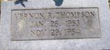 THOMPSON: THOMPSON, Vernon R. Jan. 27, 1953 Nov. 29, 1954. Son of Opal Earnistine Piatt Thompson (1932 - 1953). His mother died when he was born. |