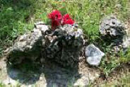 ![]() Four graves marked with fieldstones. |