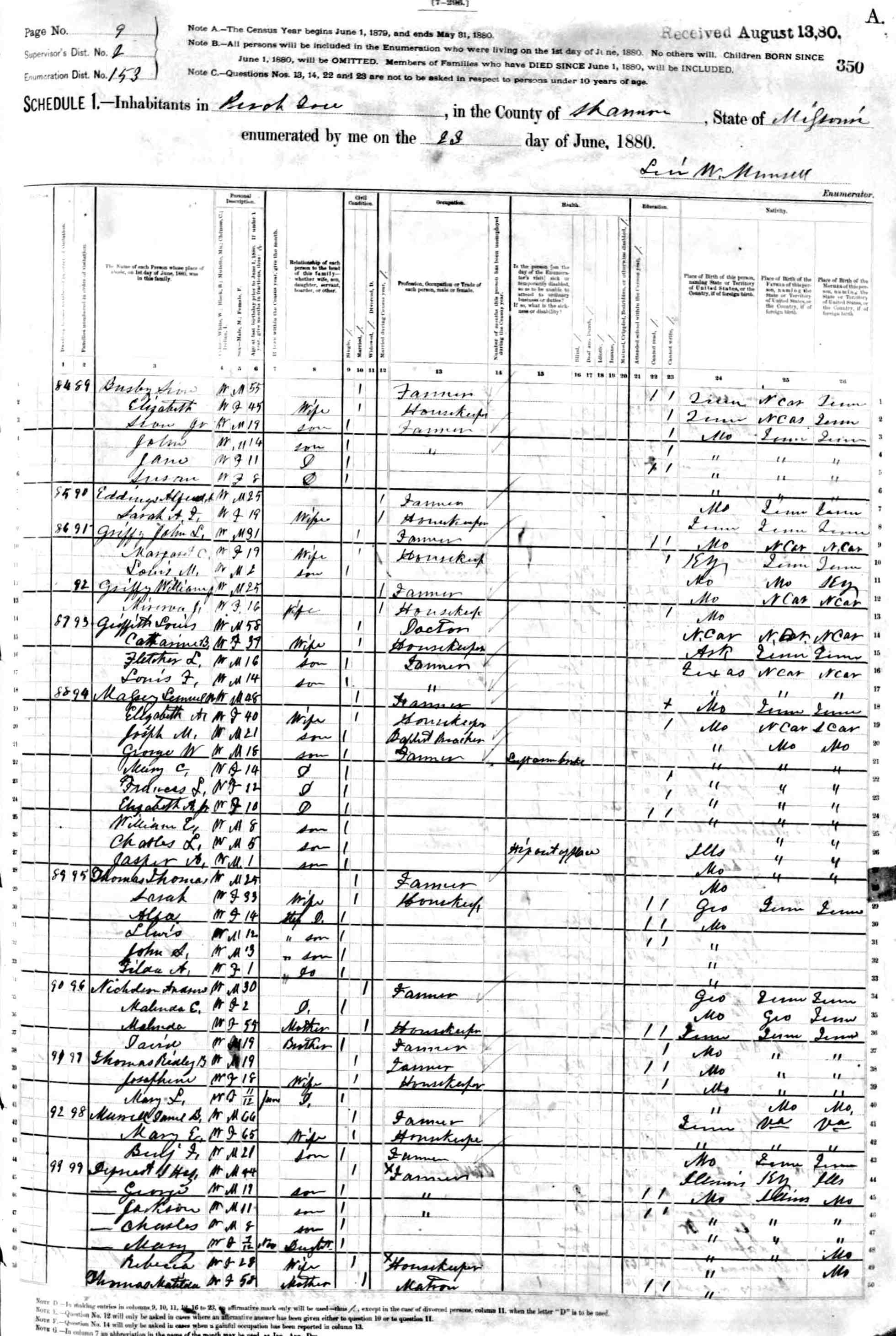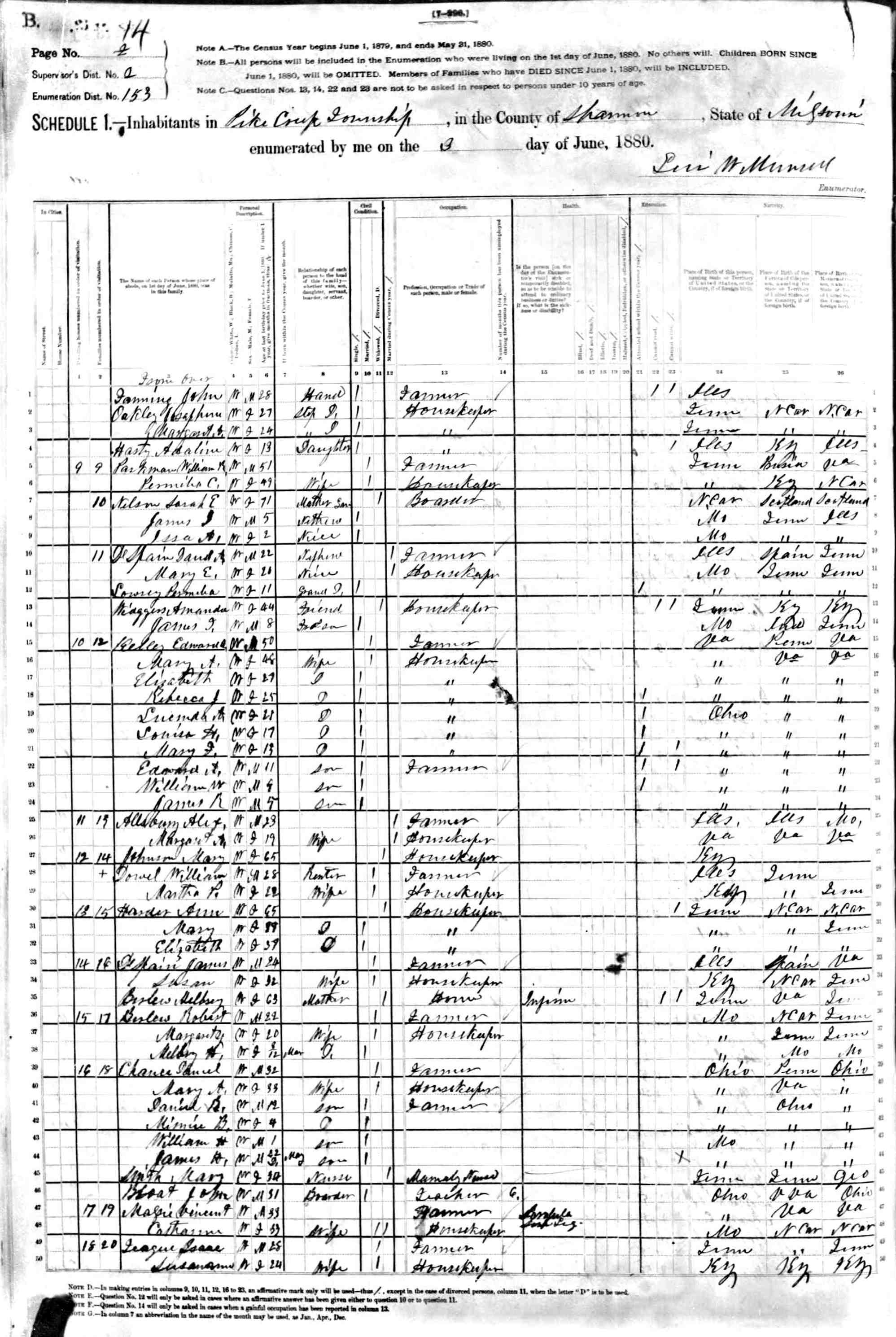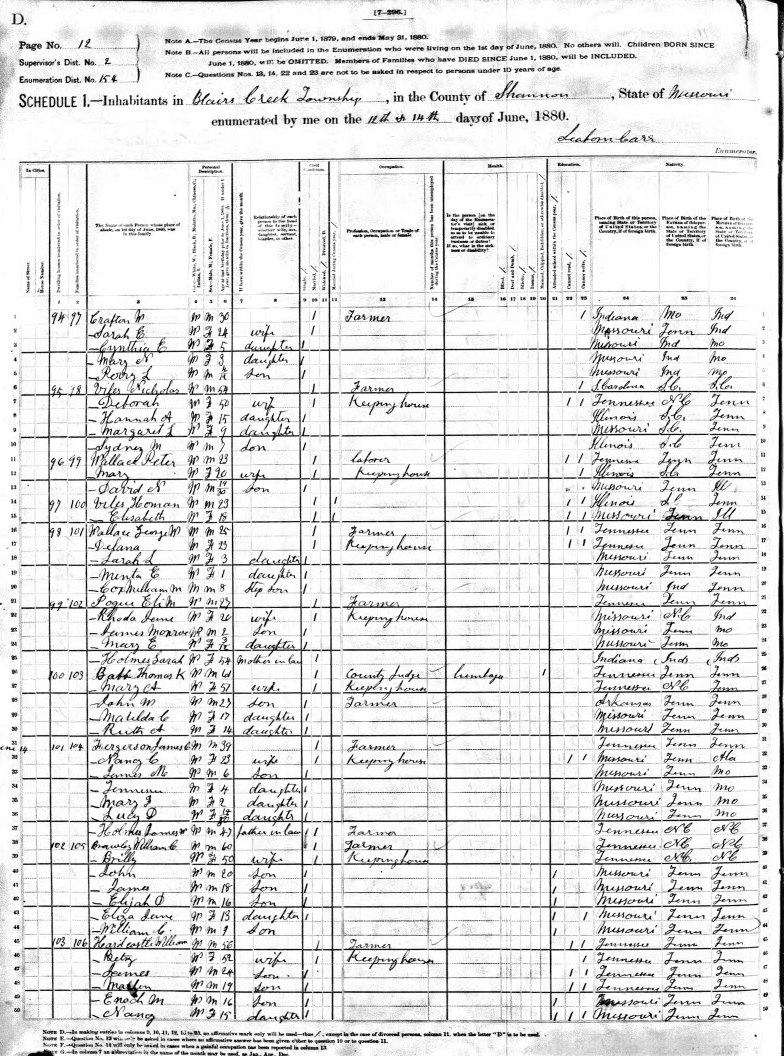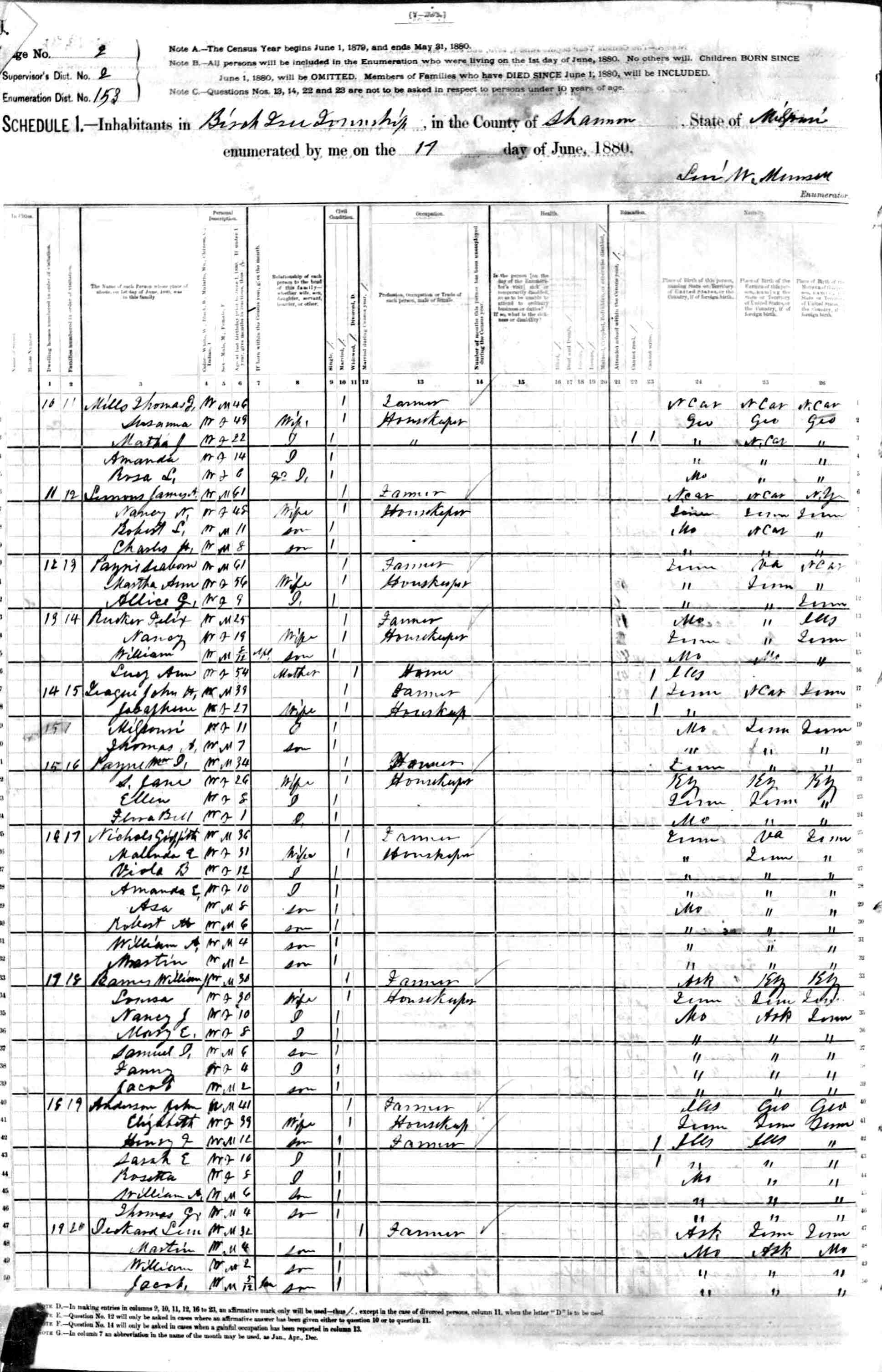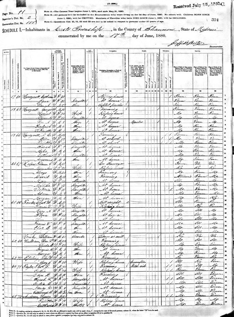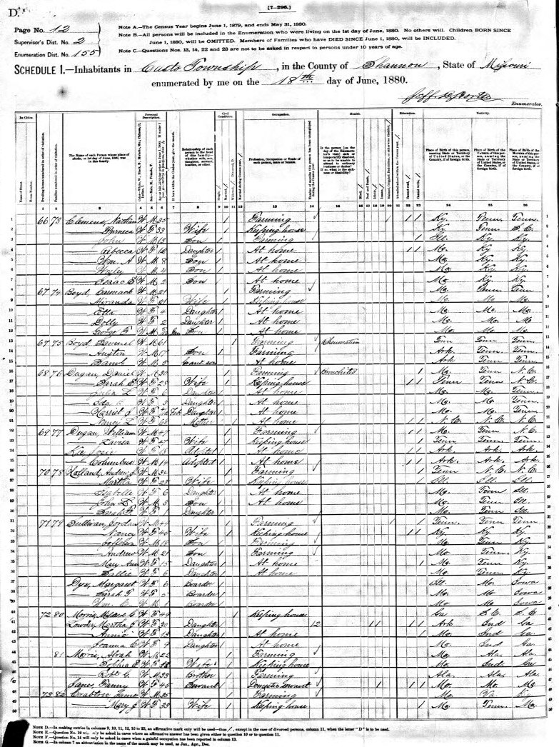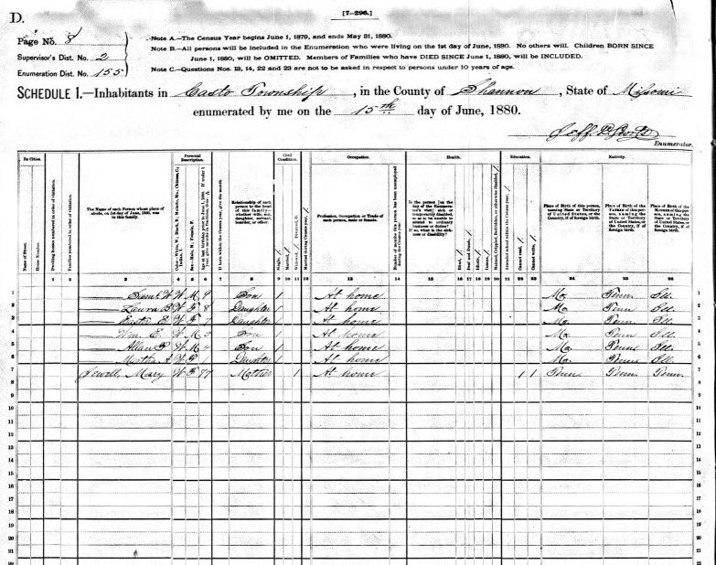 1880 Shannon County Census