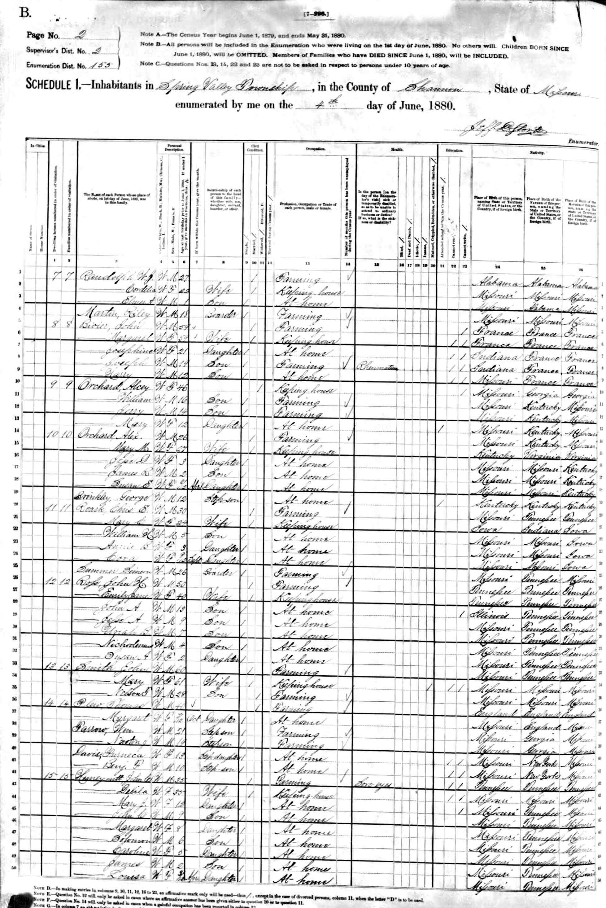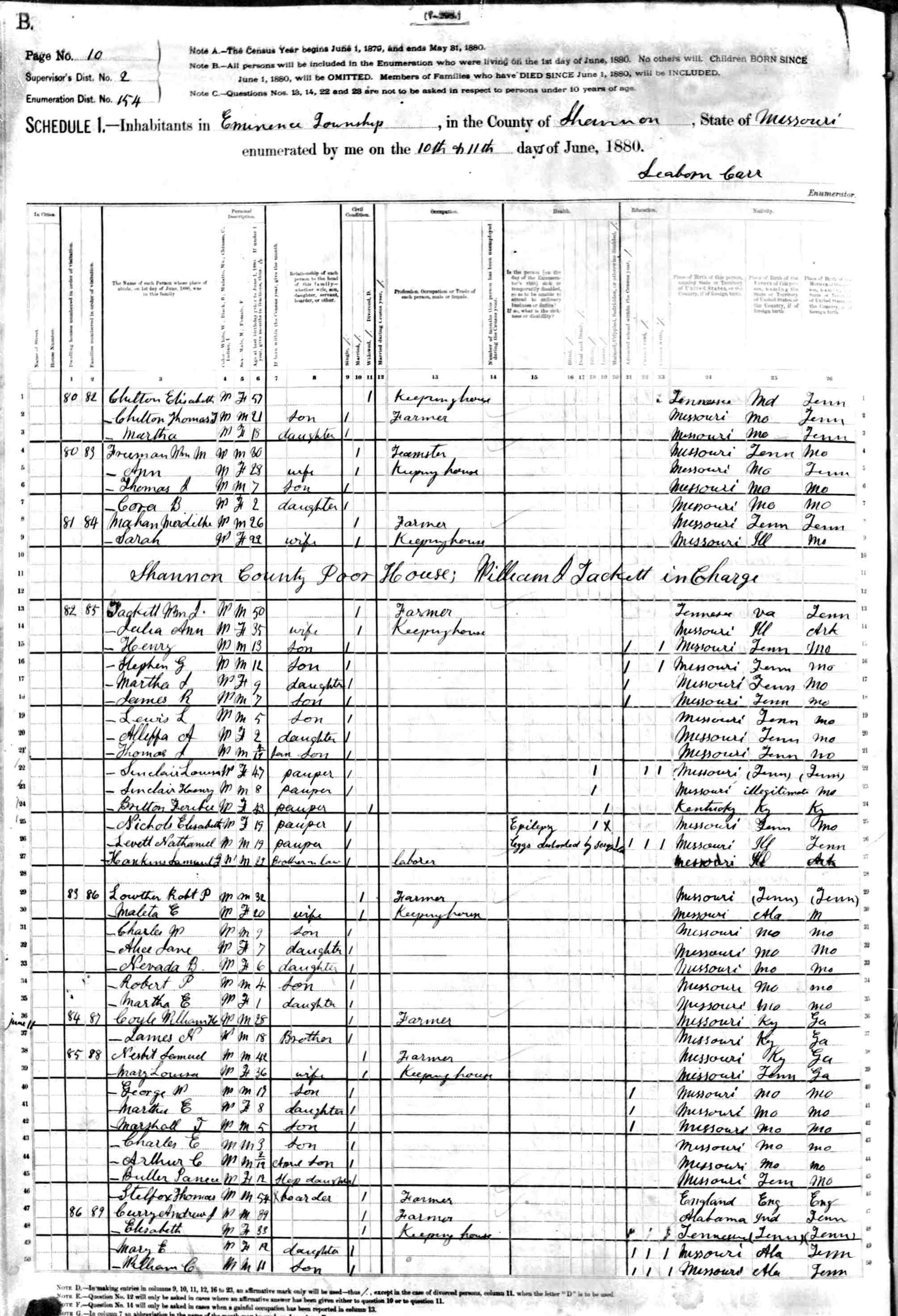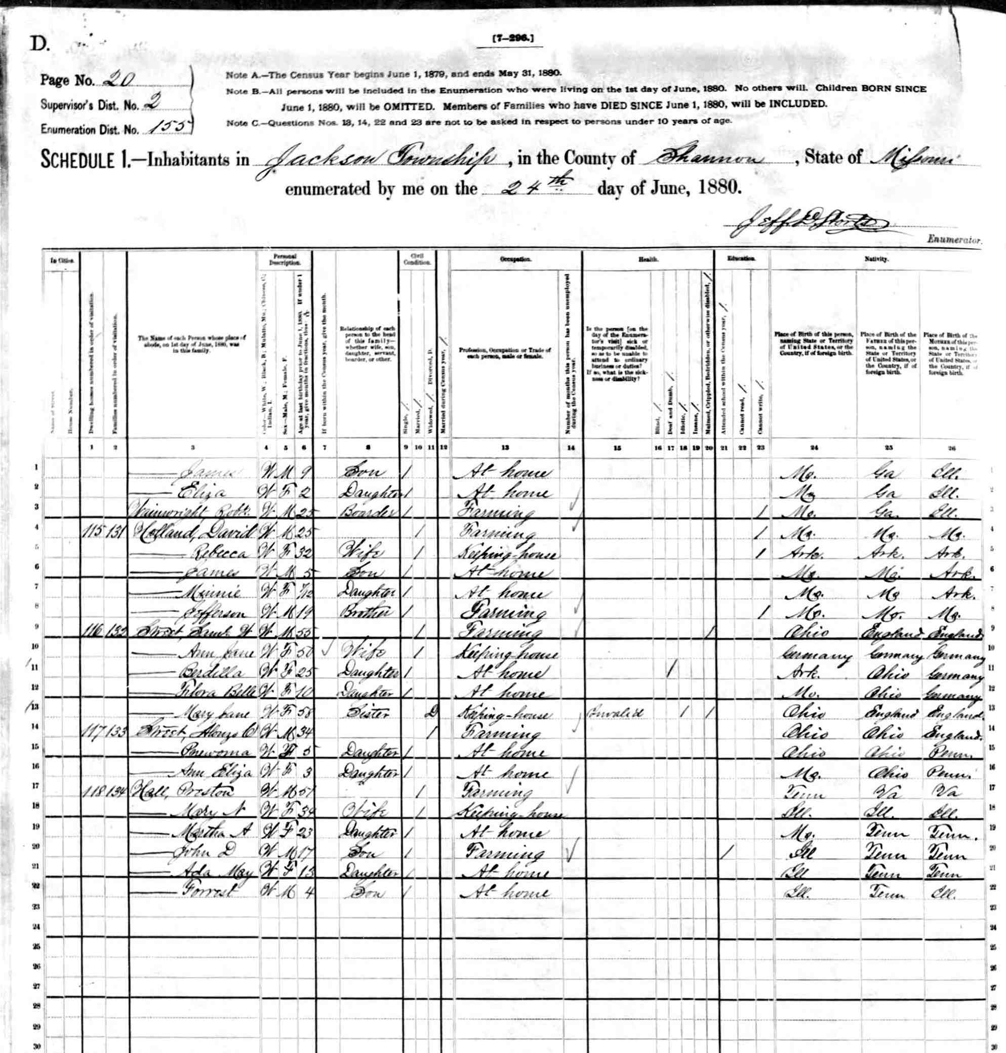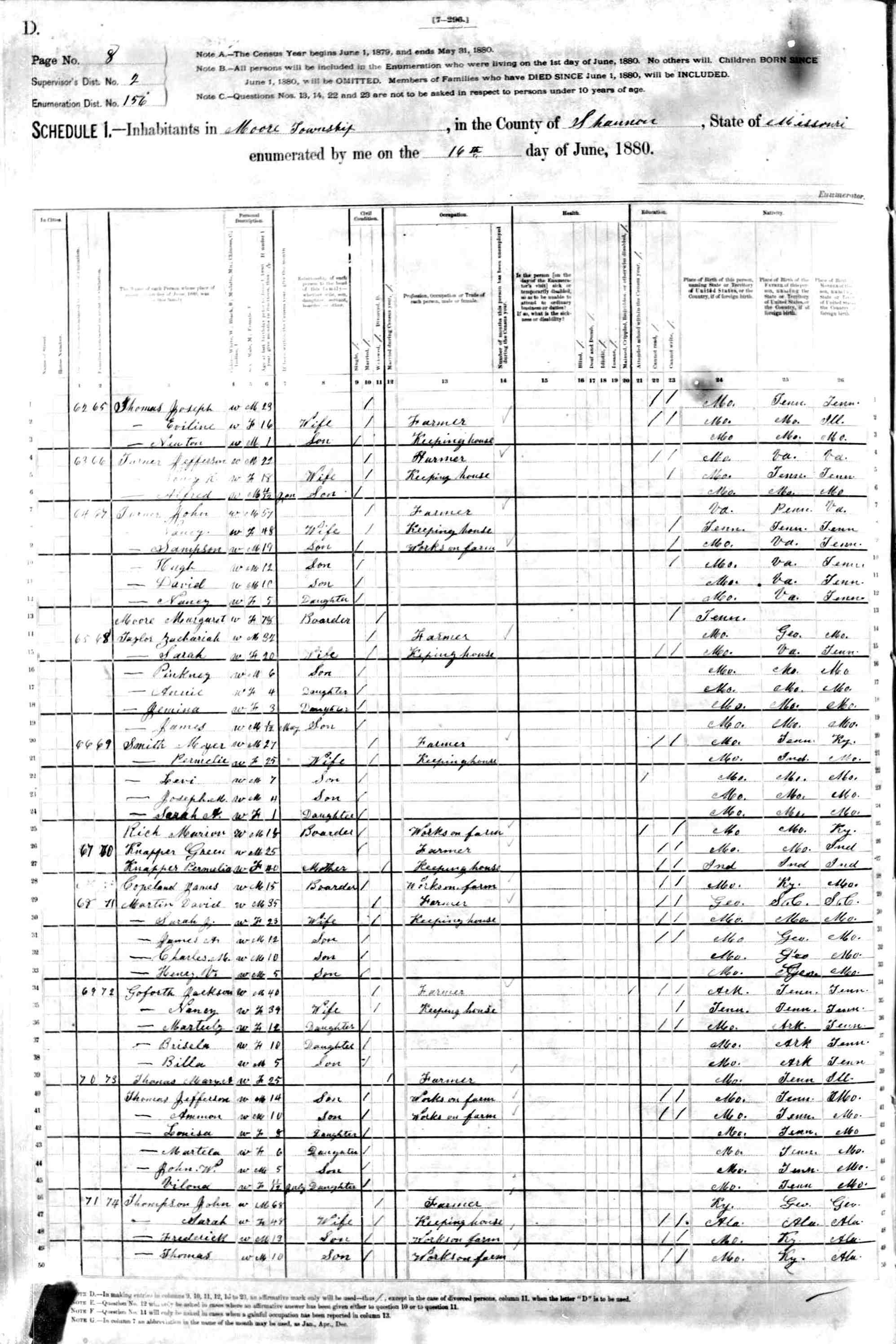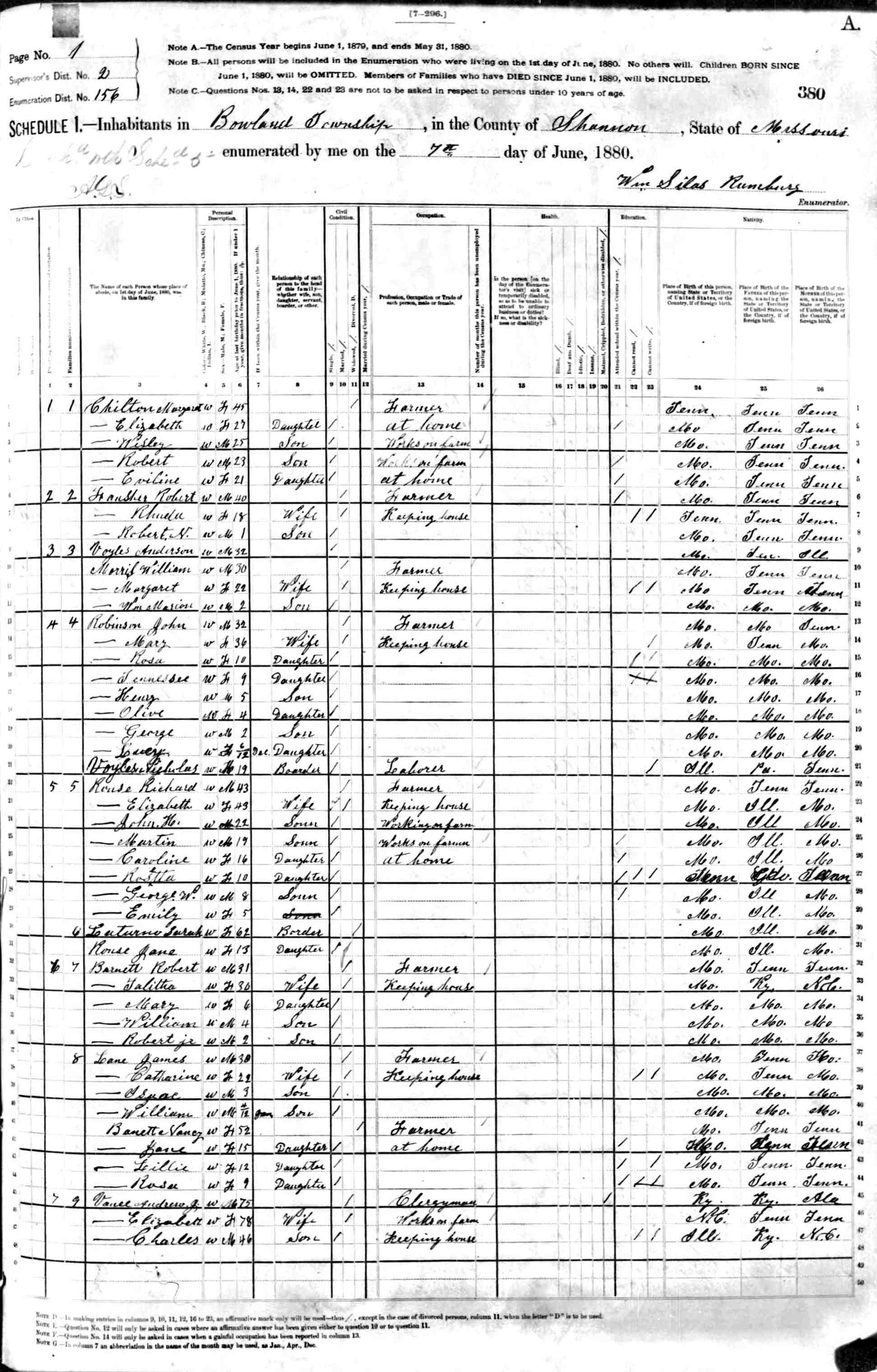 1880 Shannon County Census