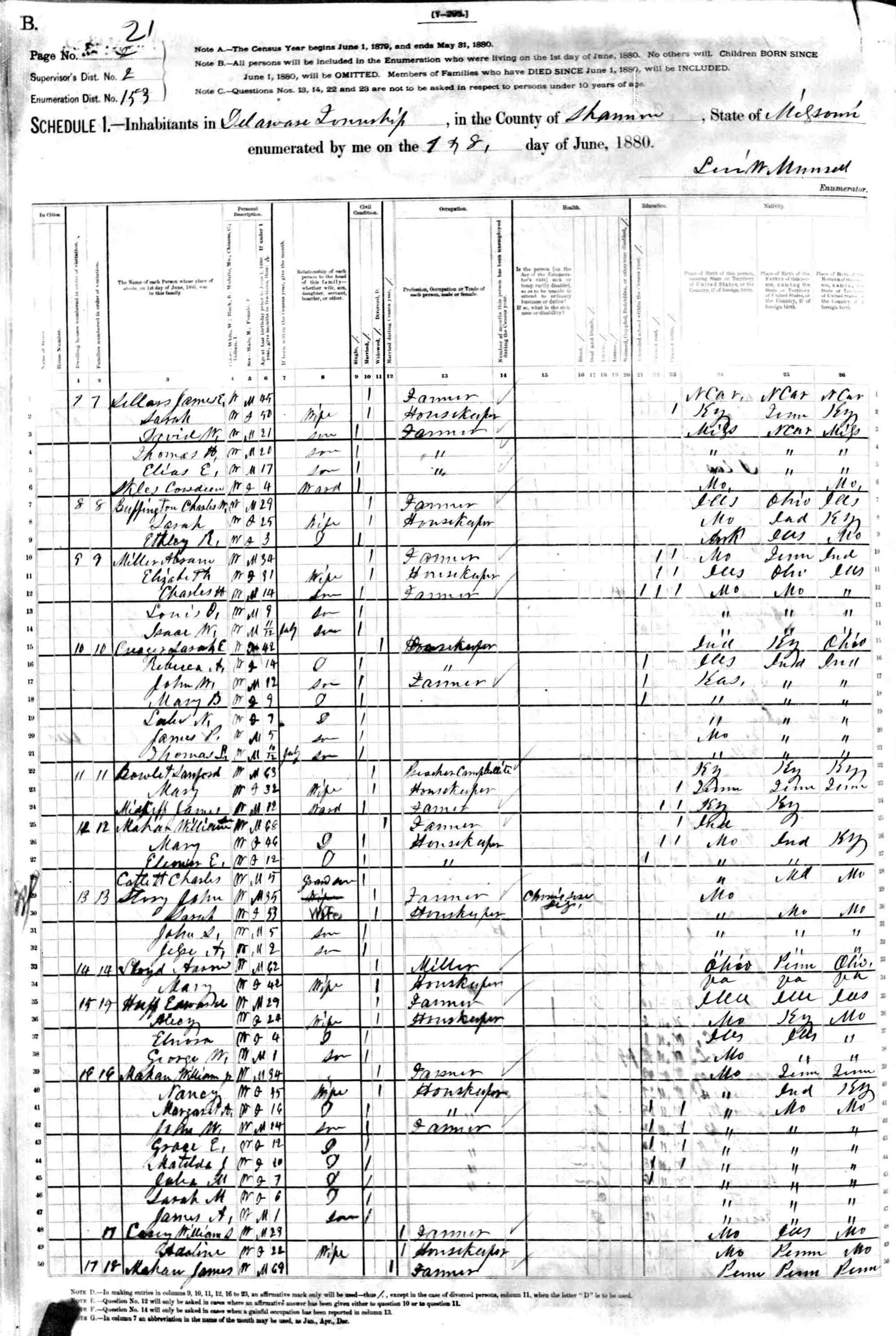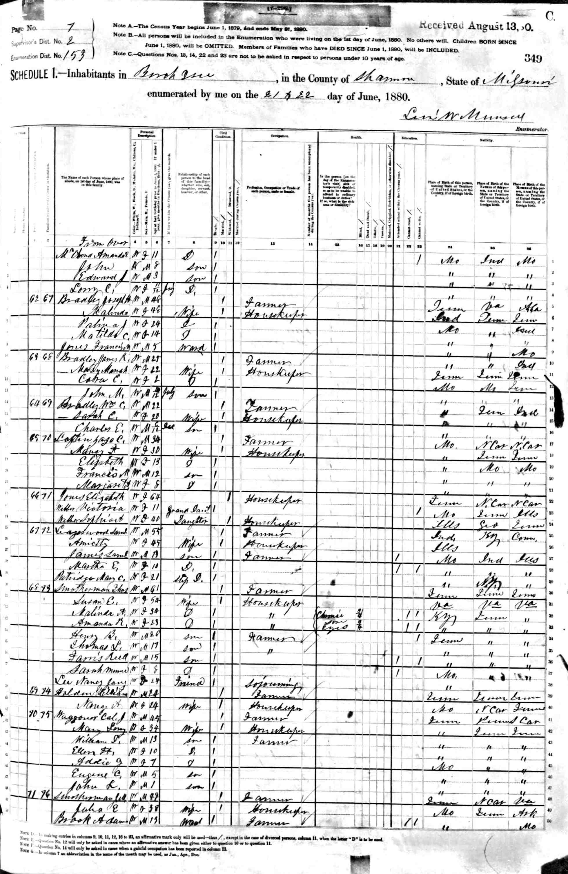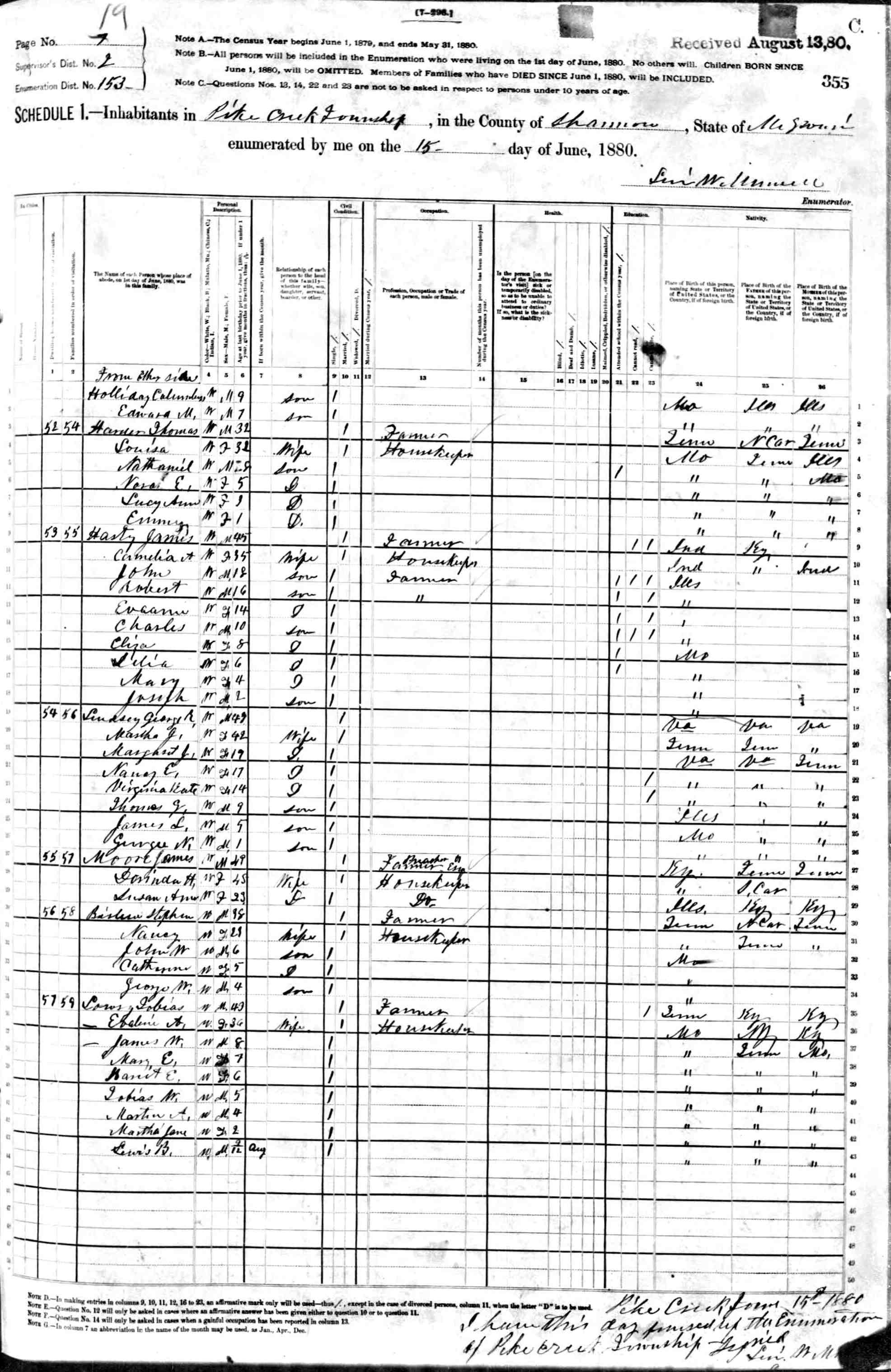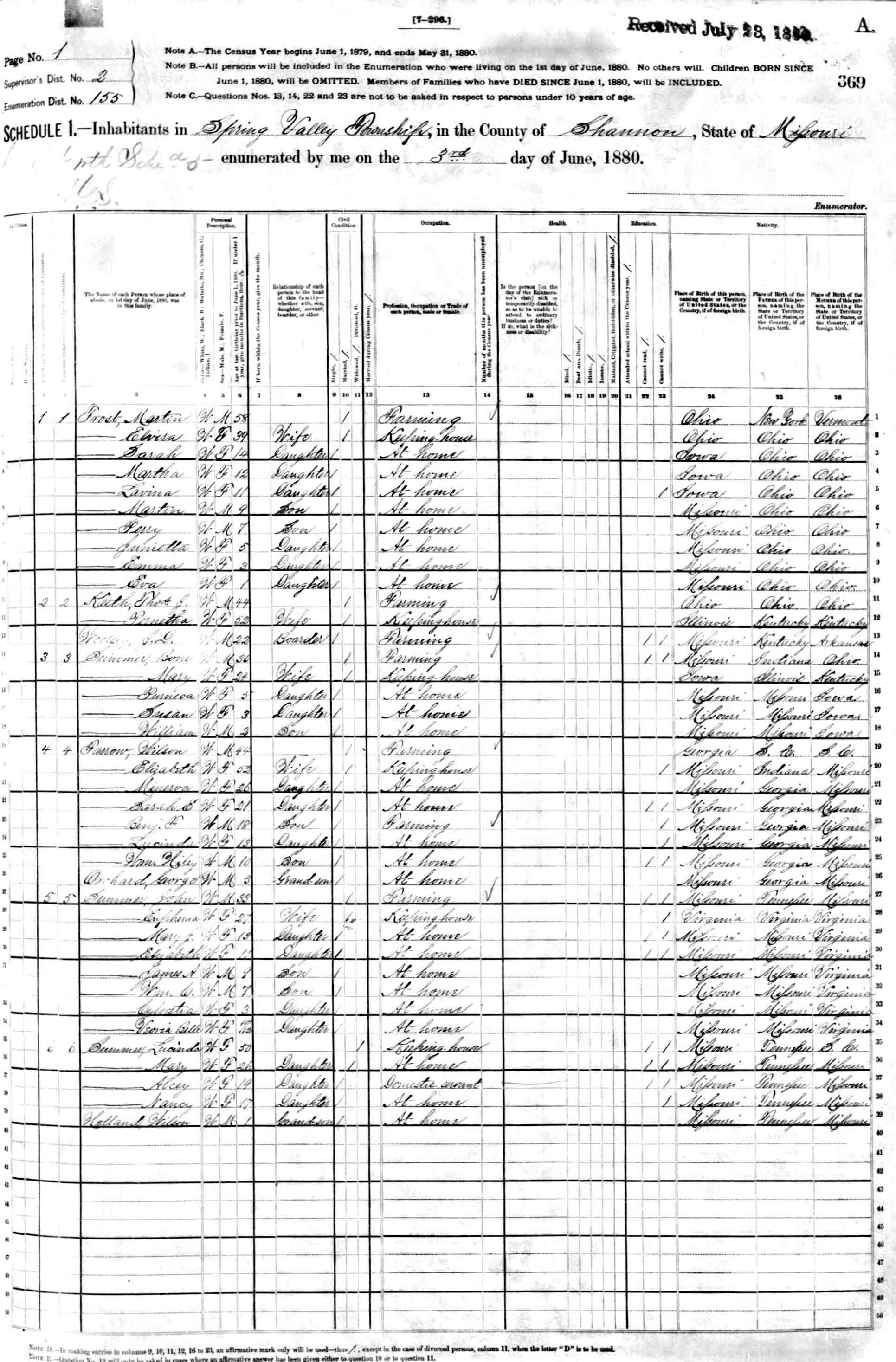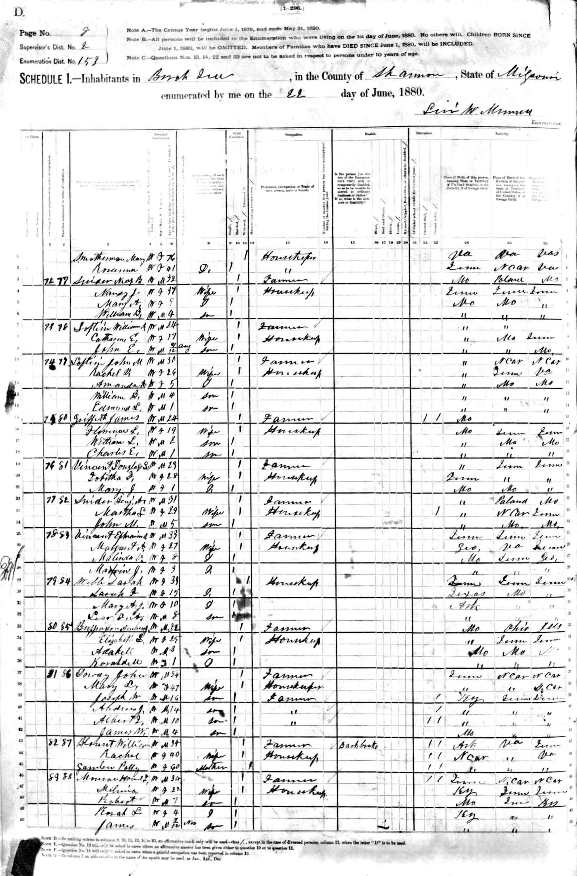 1880 Shannon County Census