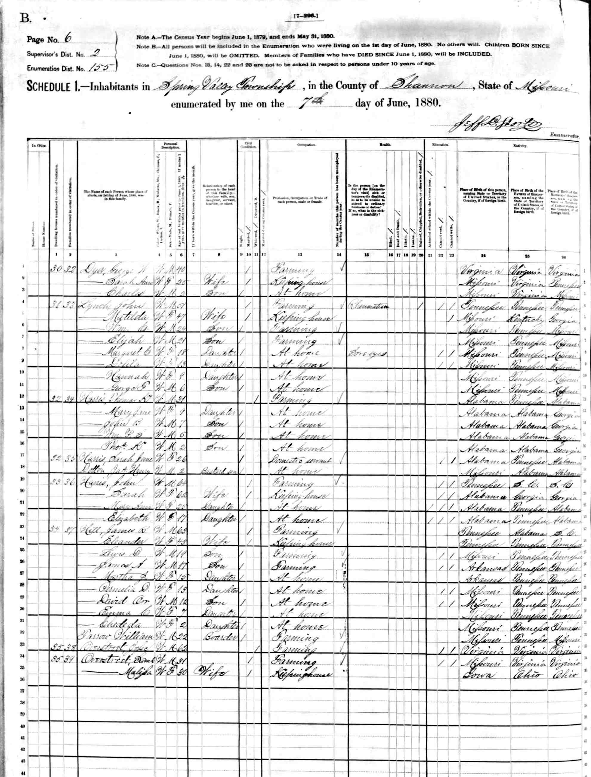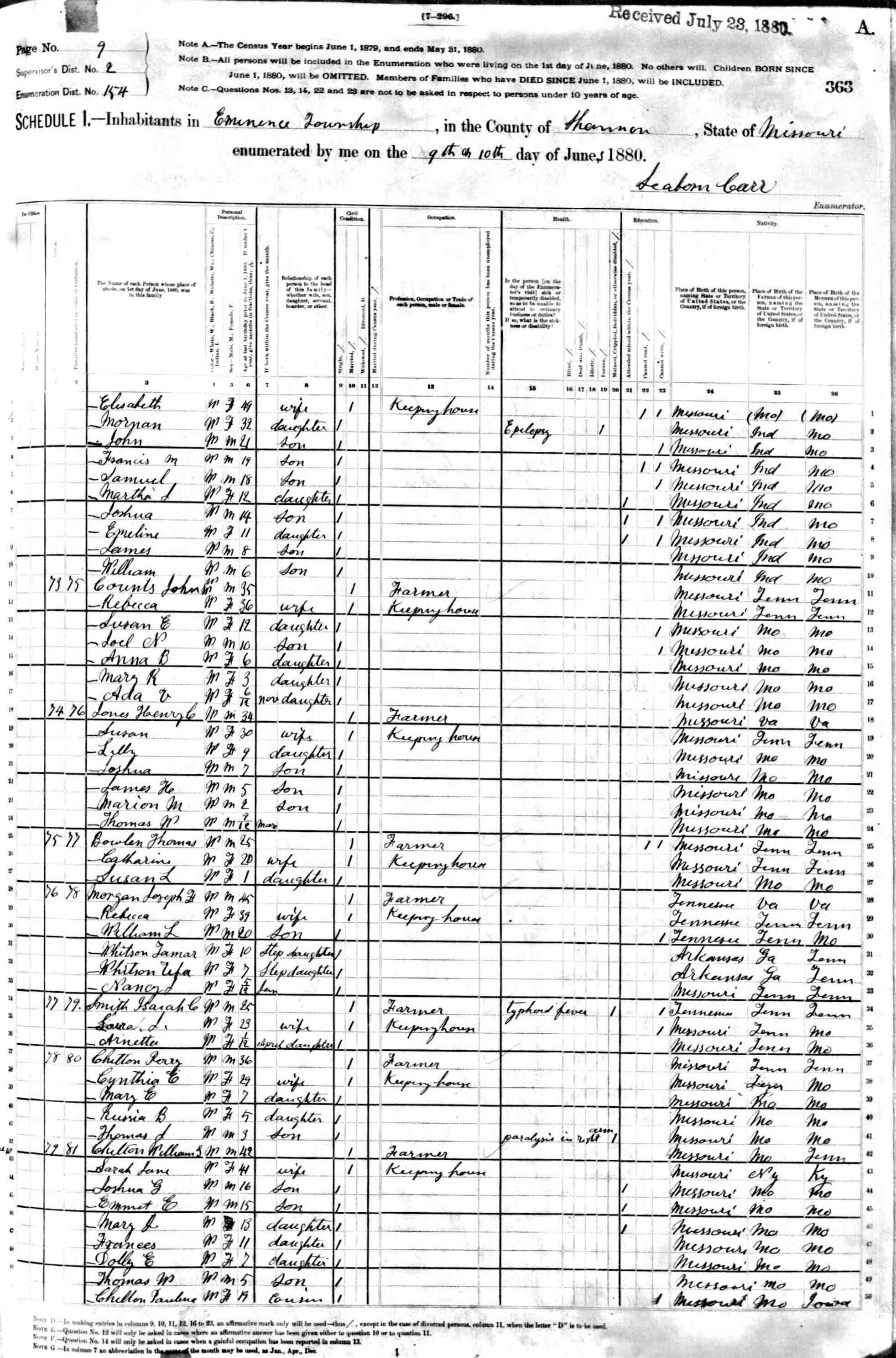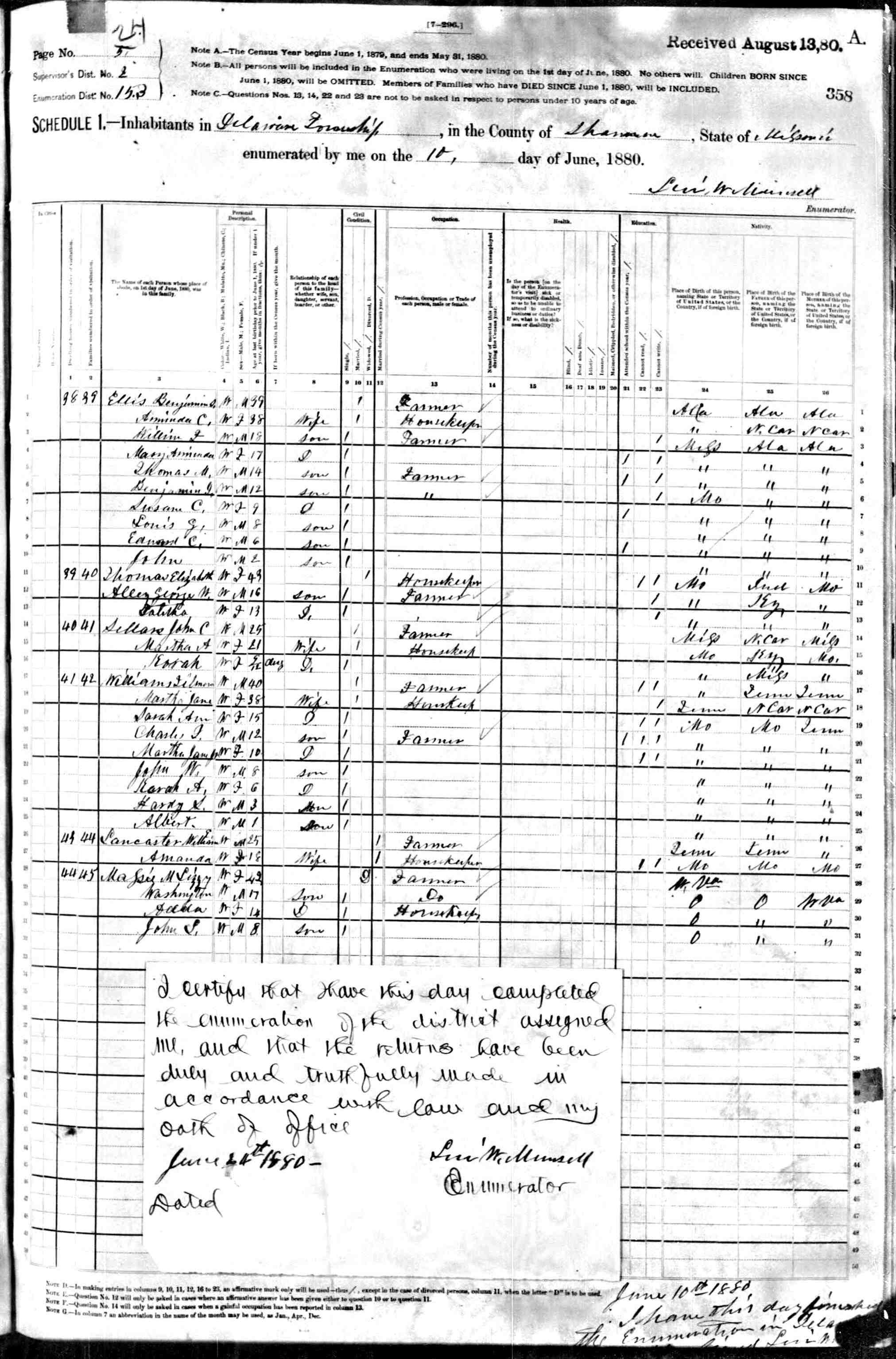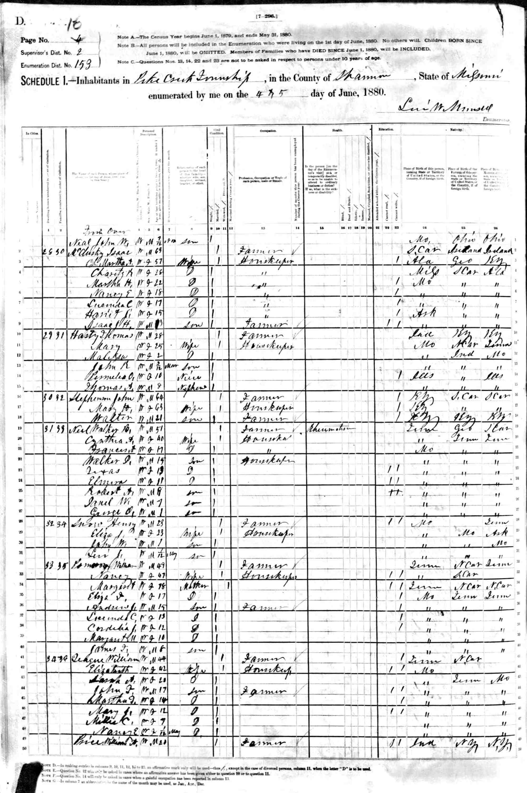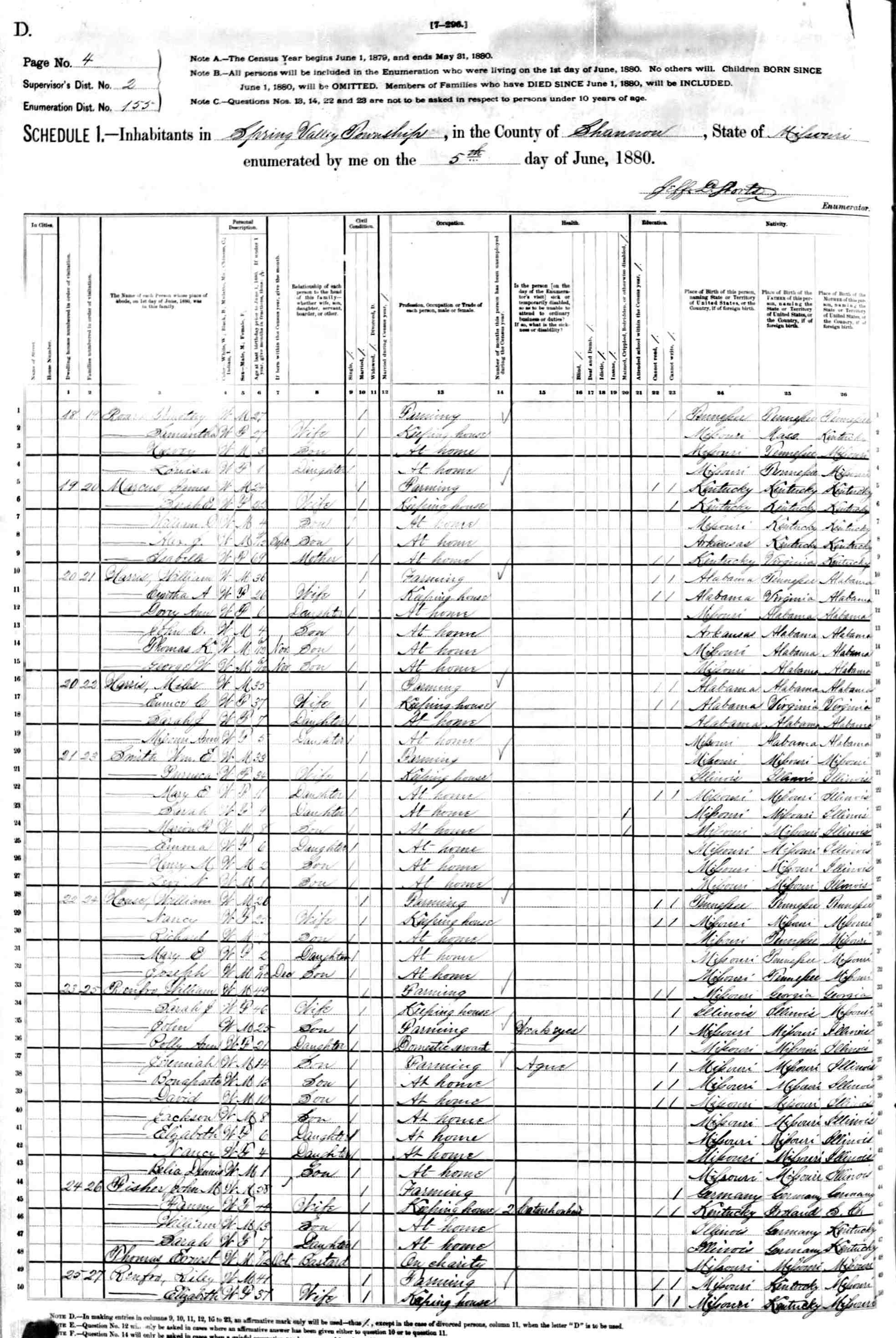 1880 Shannon County Census