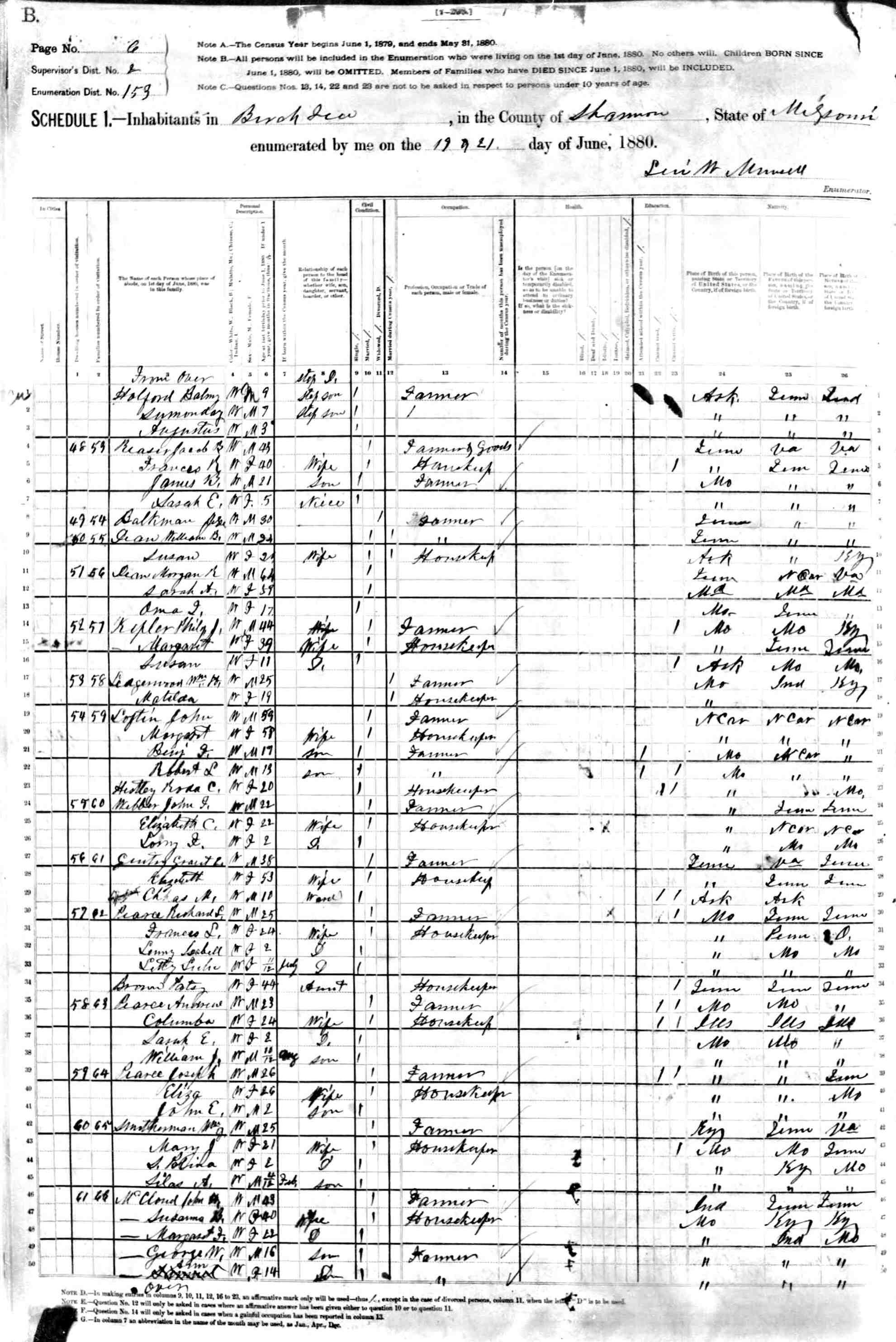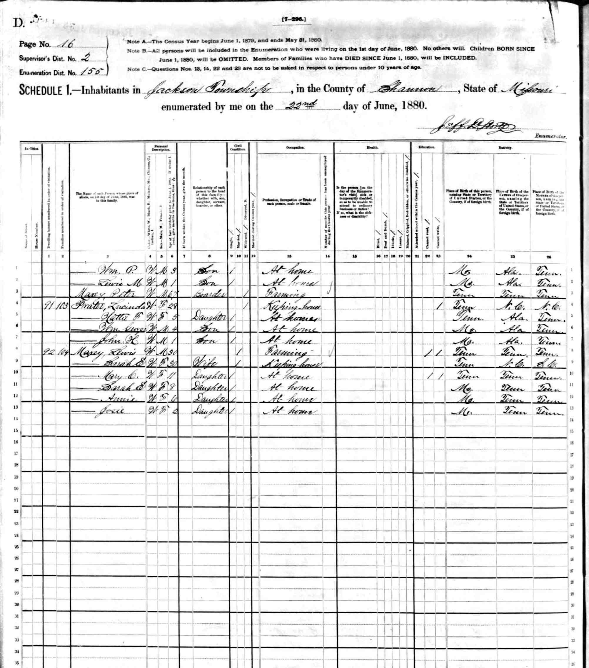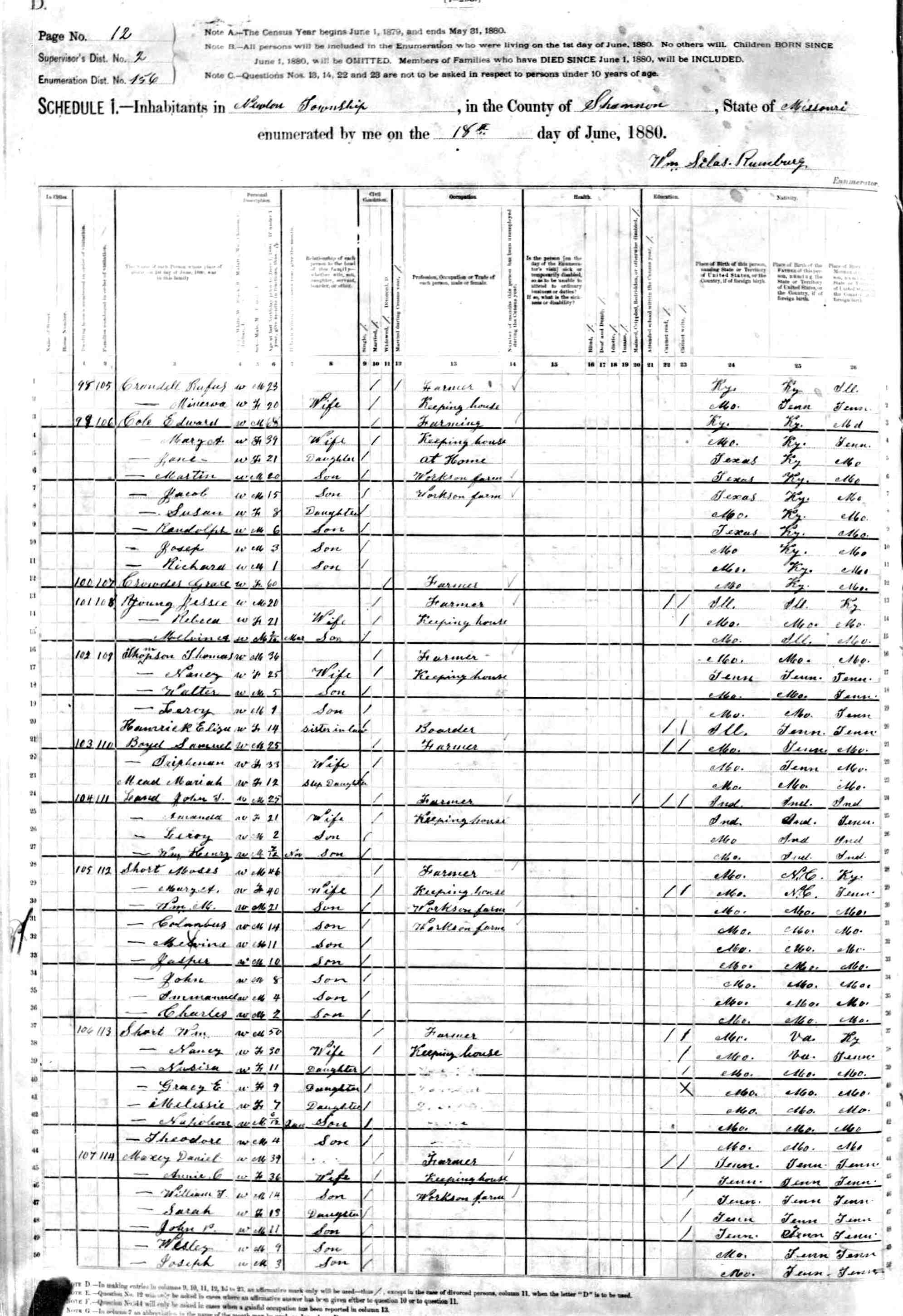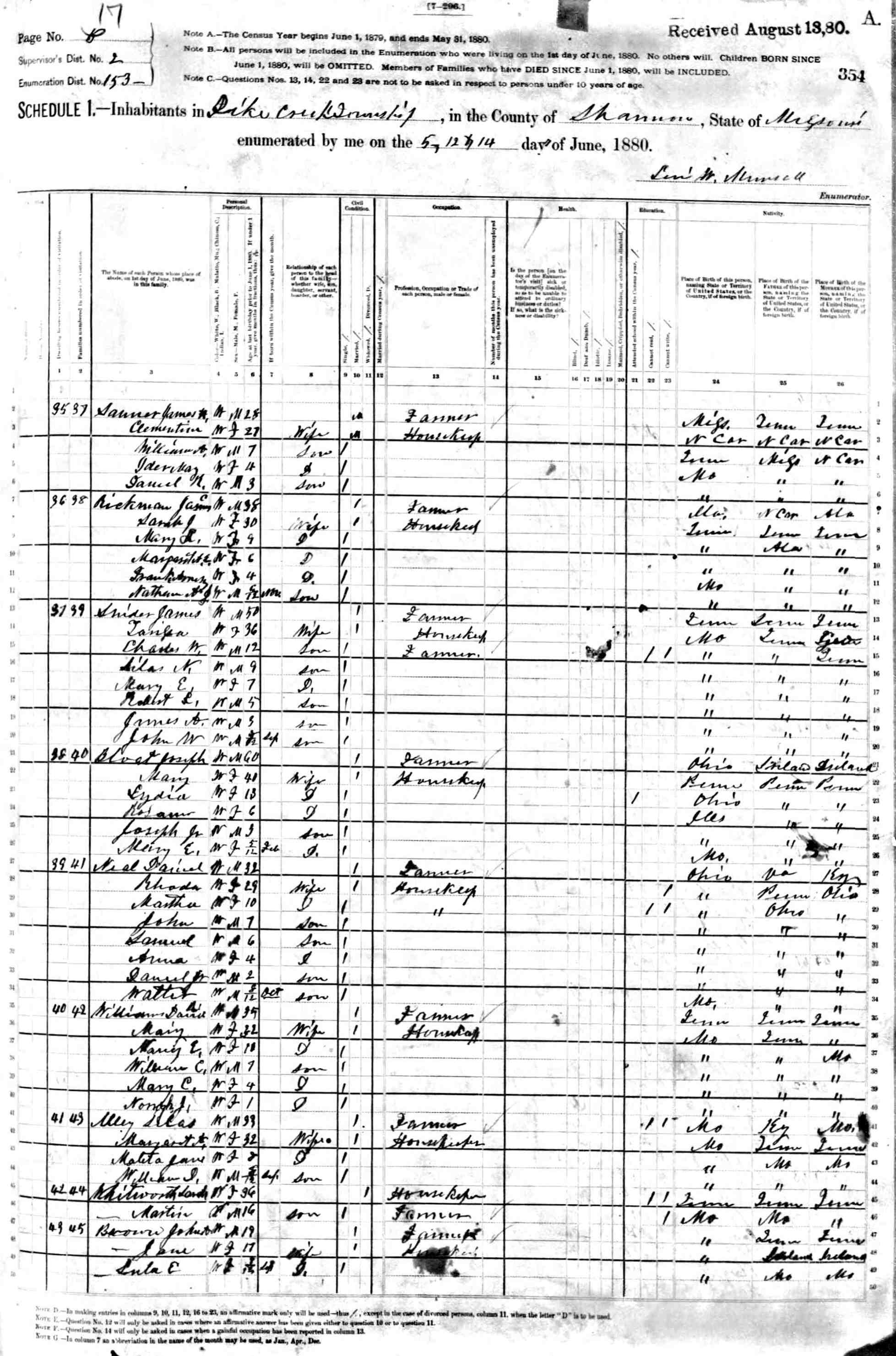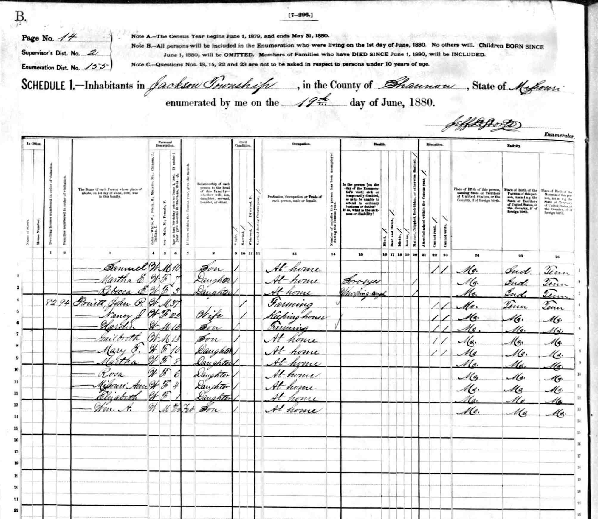 1880 Shannon County Census