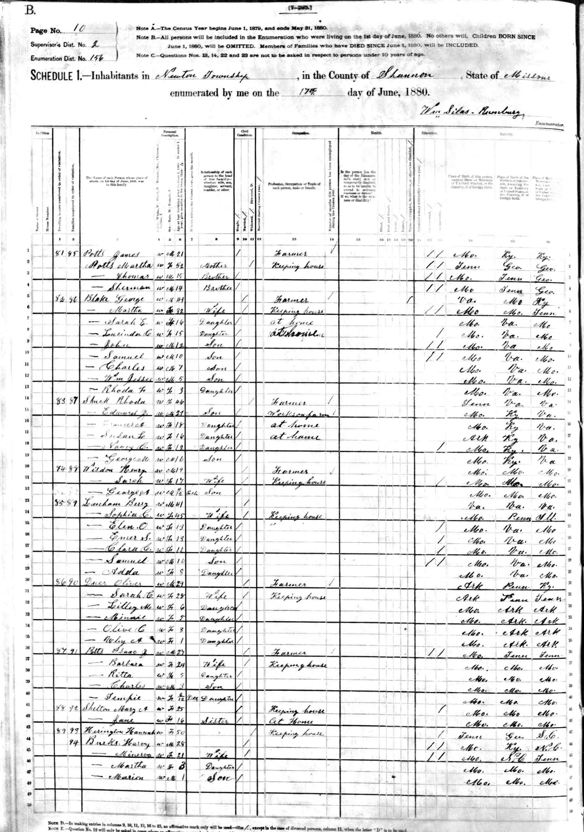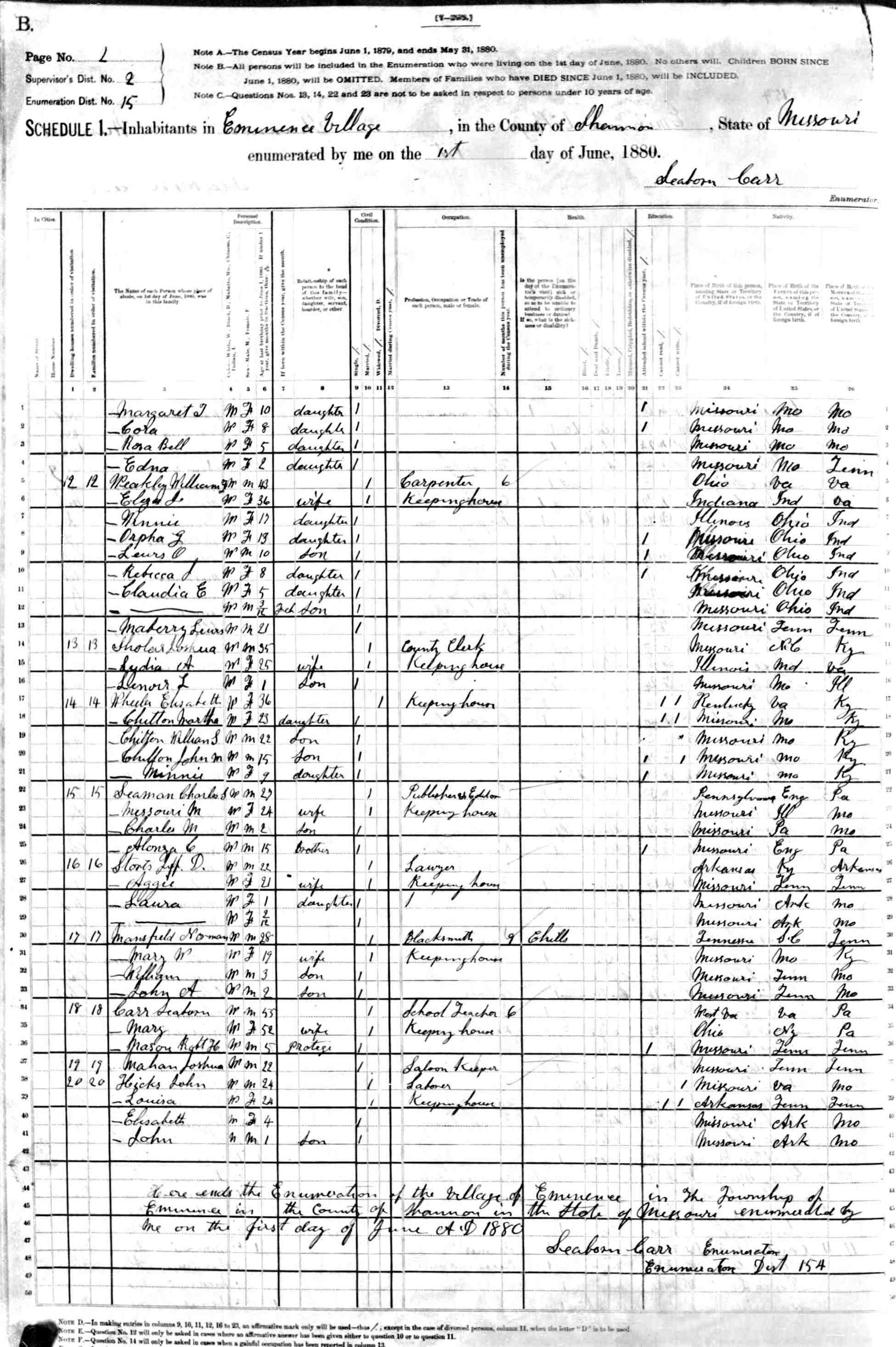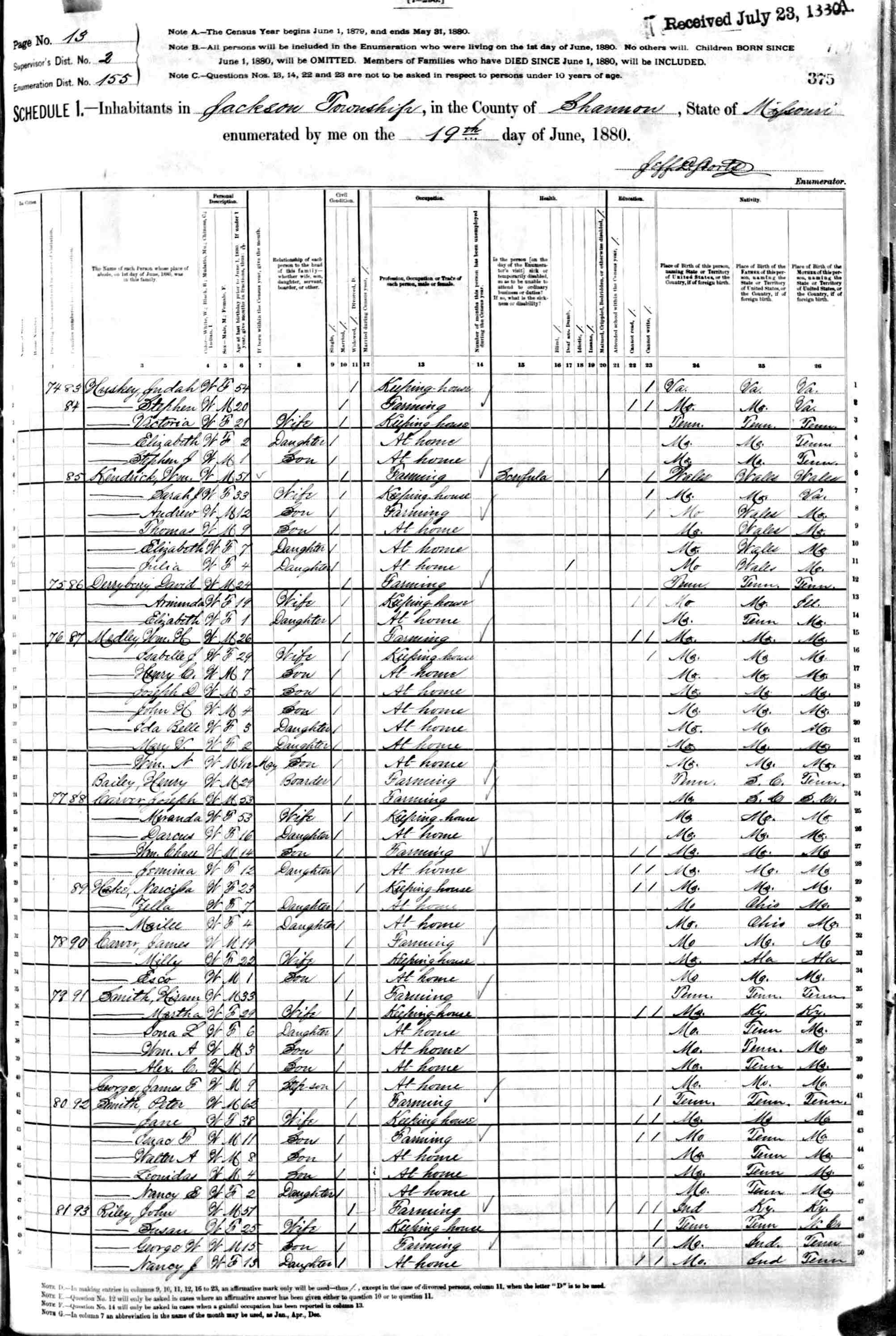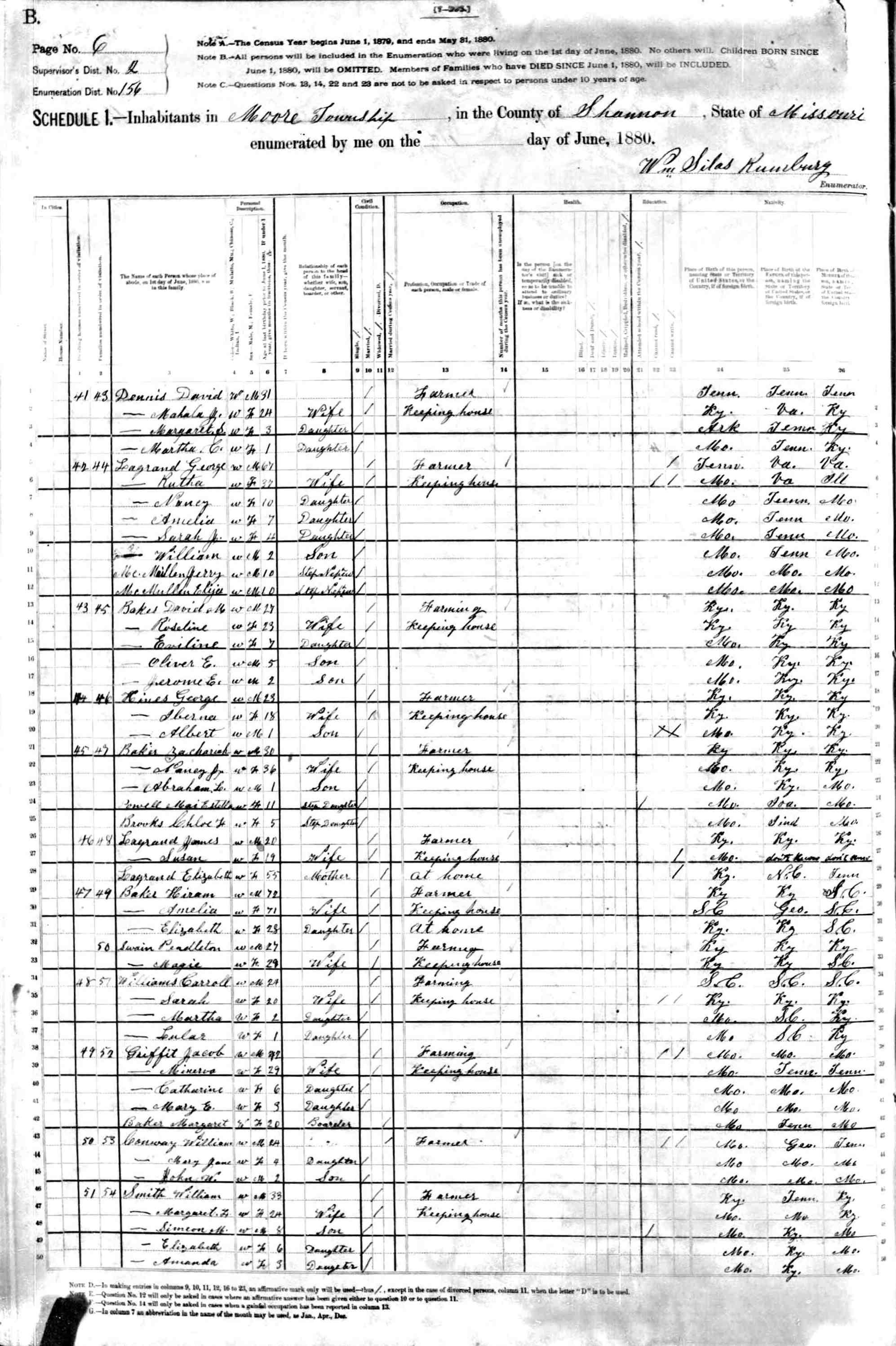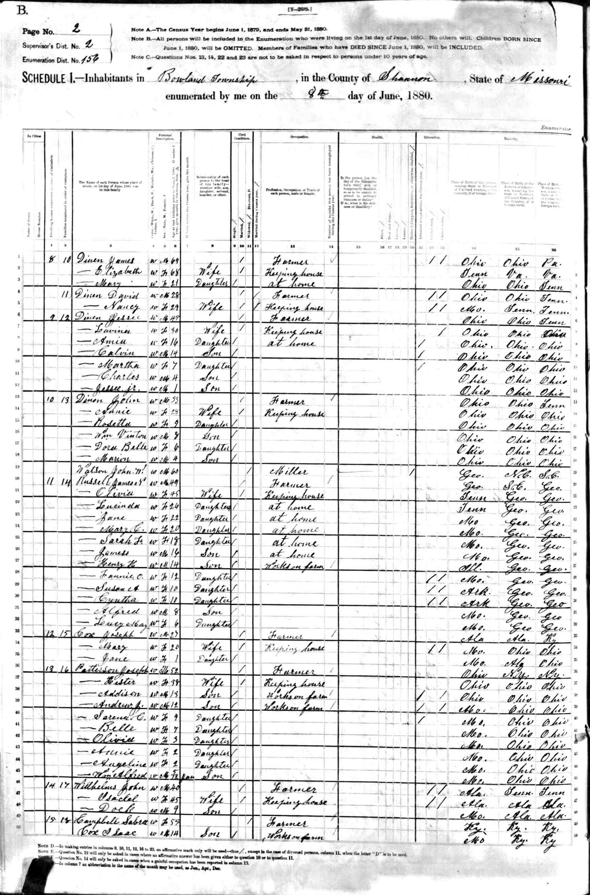 1880 Shannon County Census