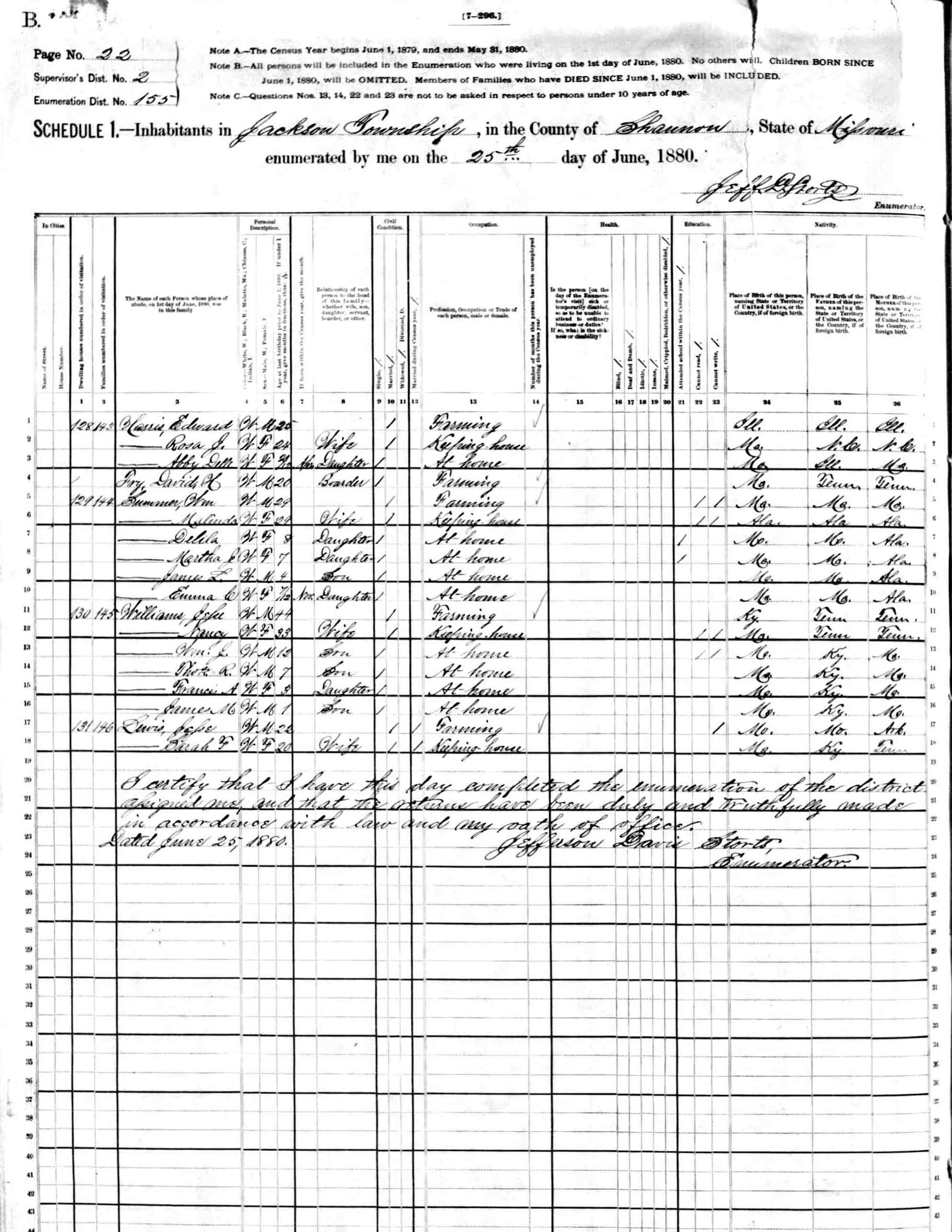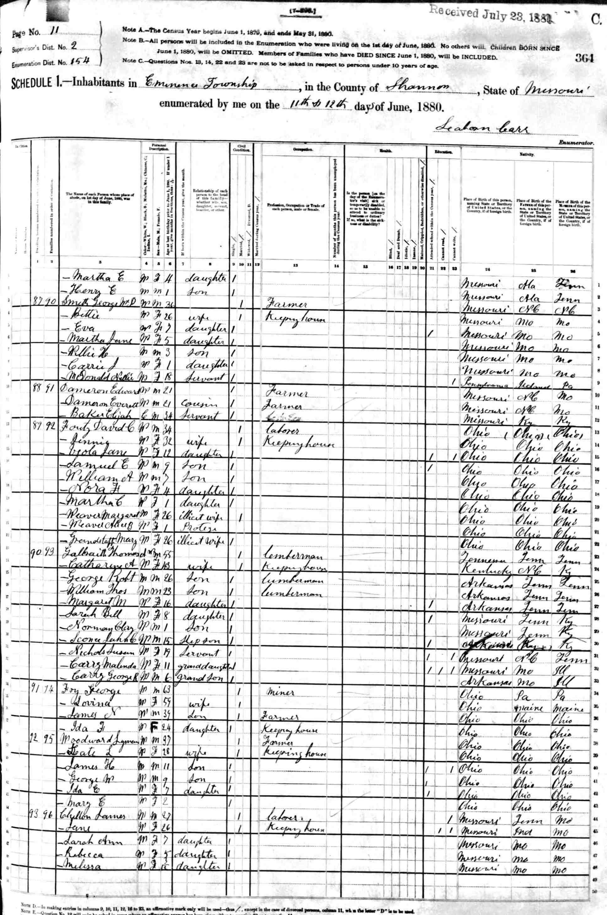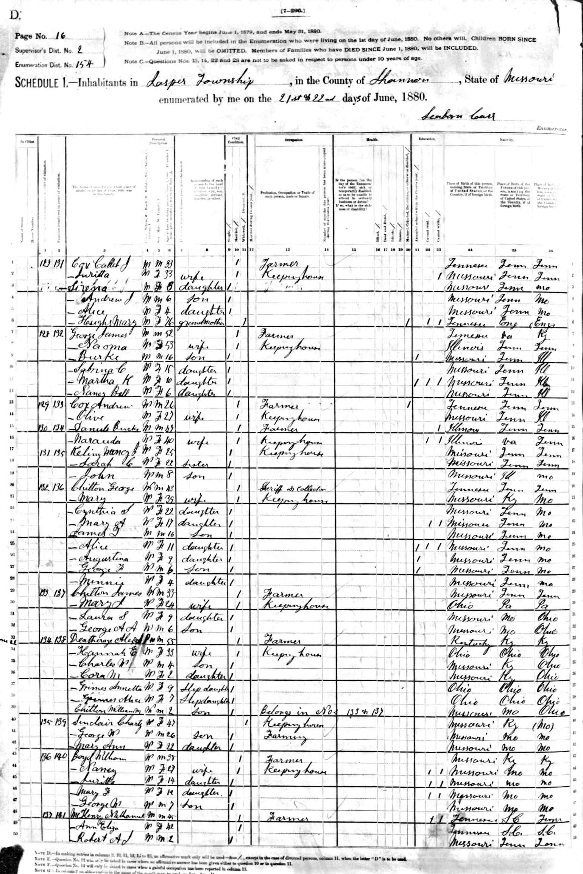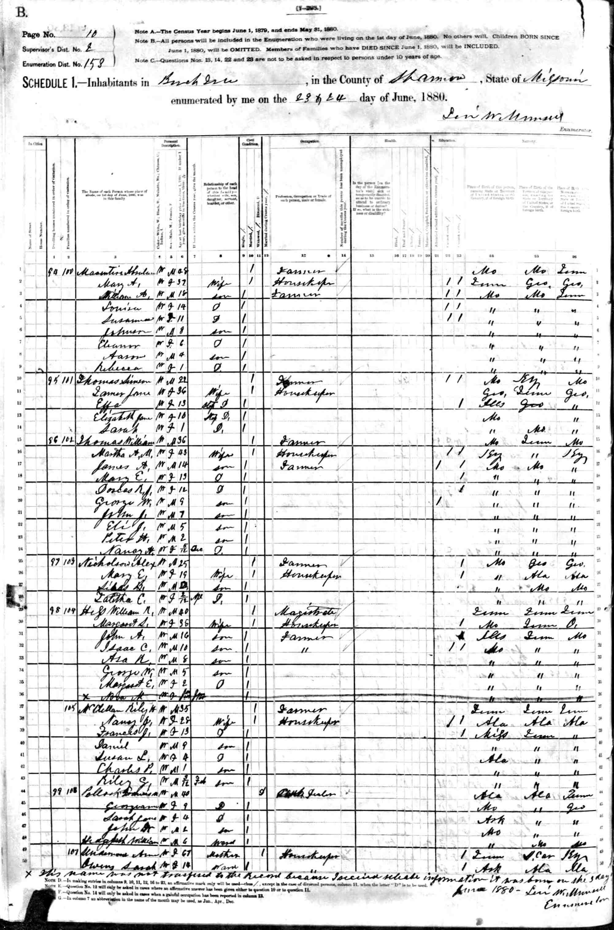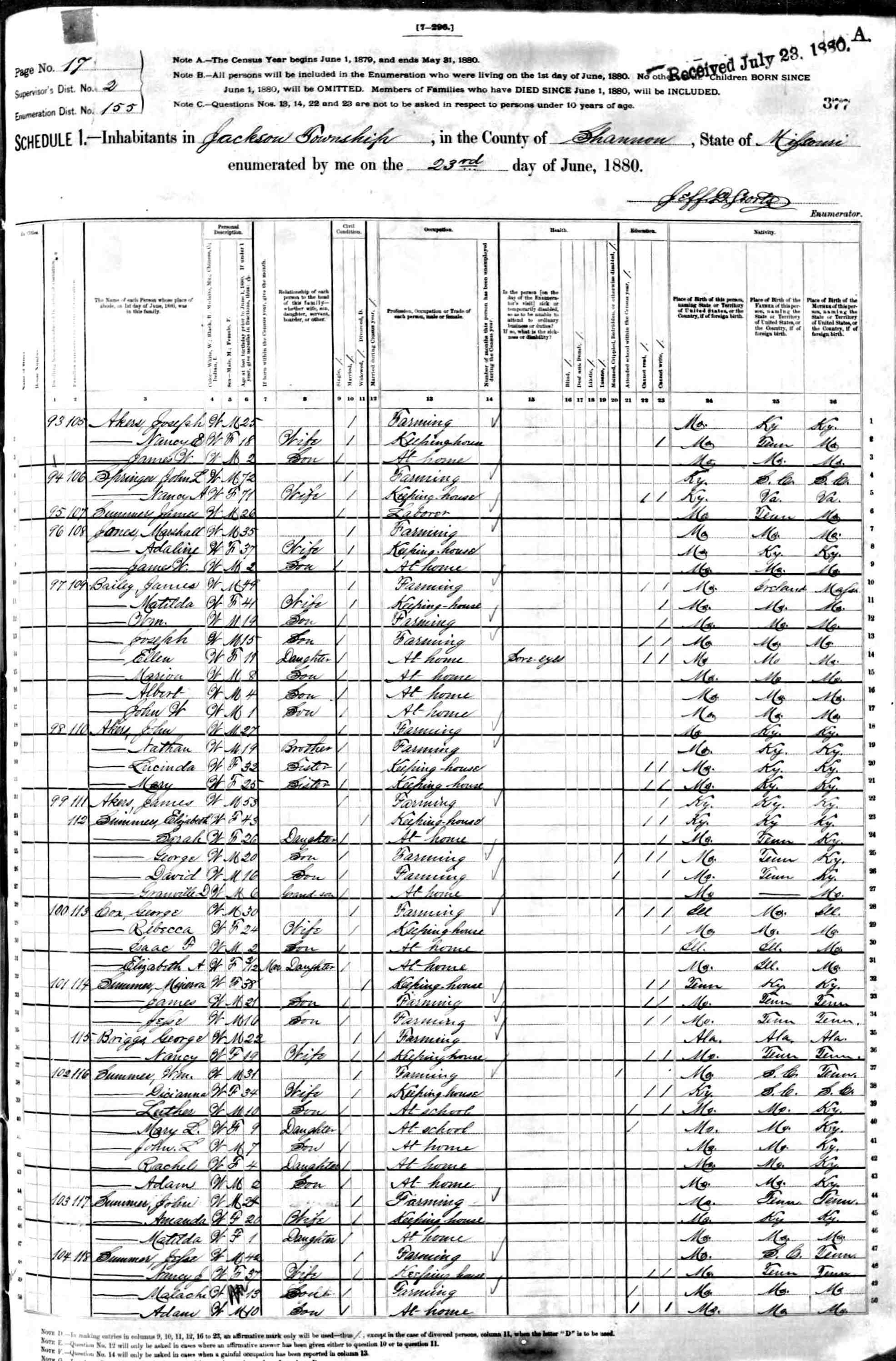 1880 Shannon County Census