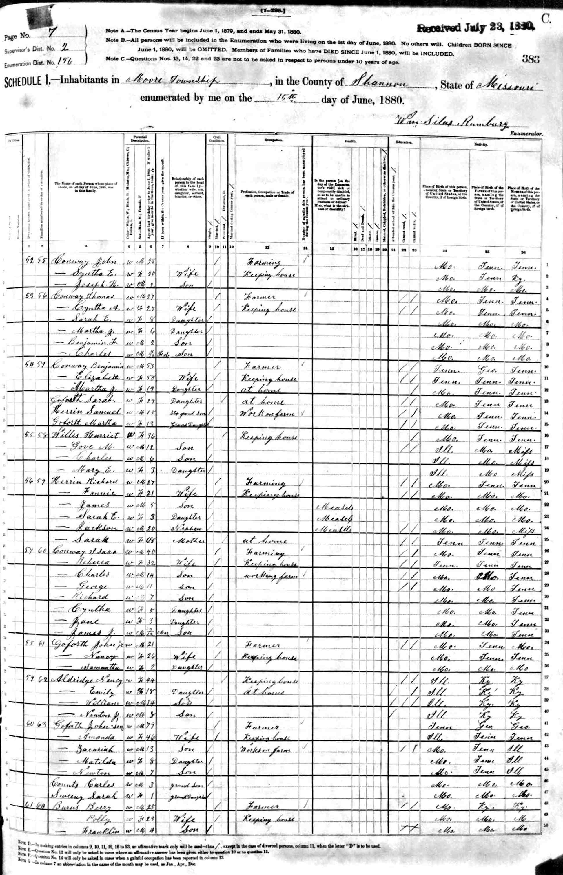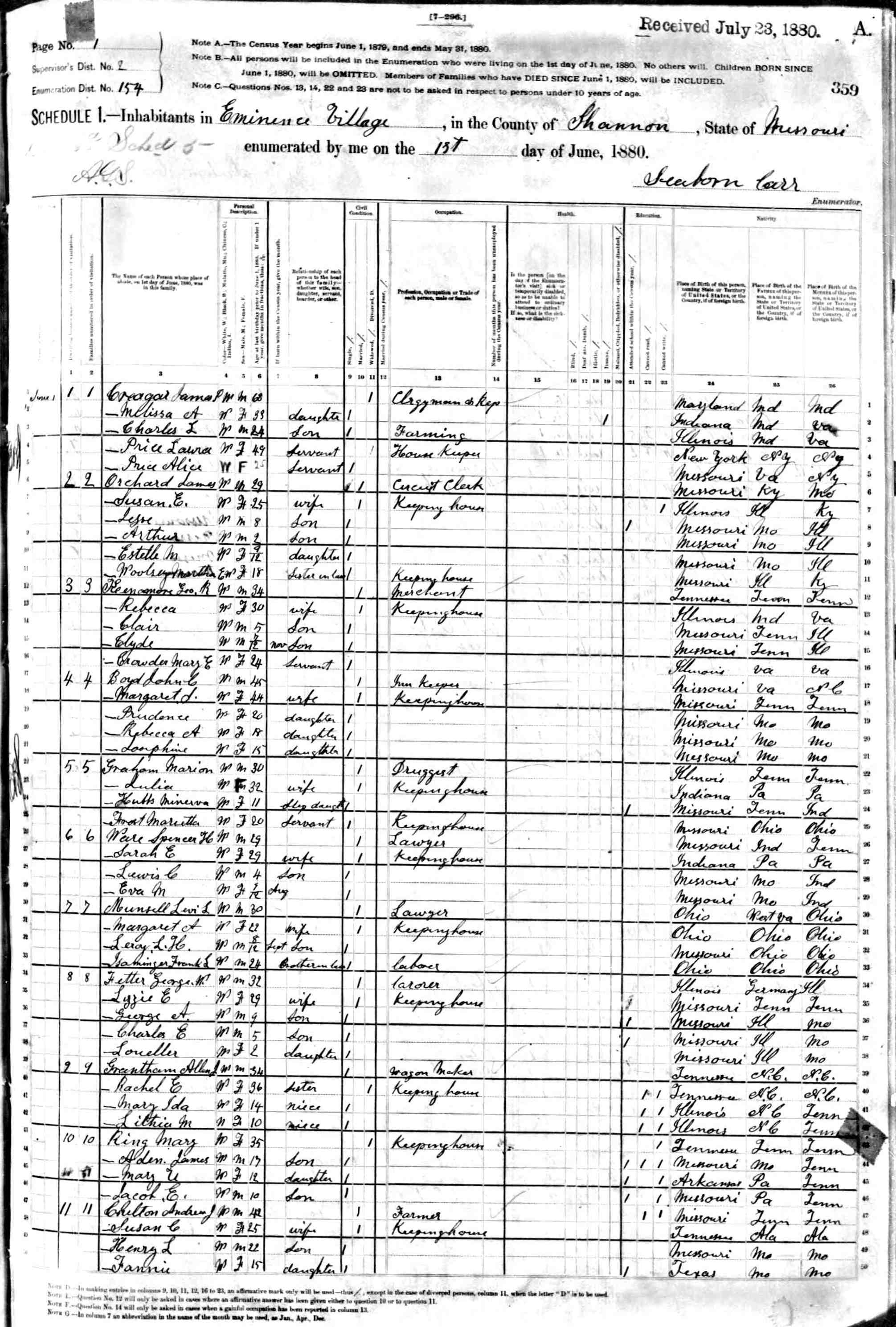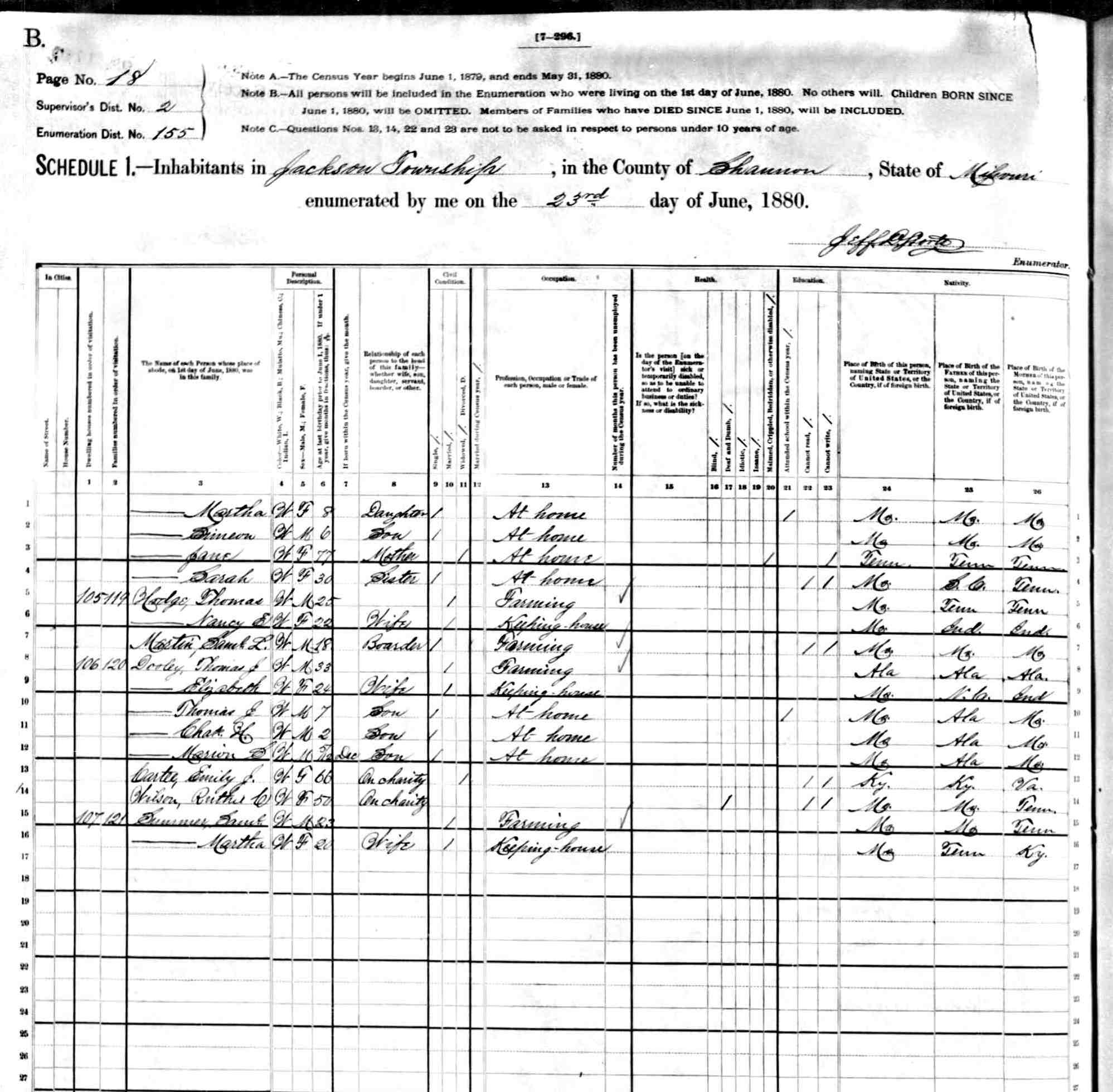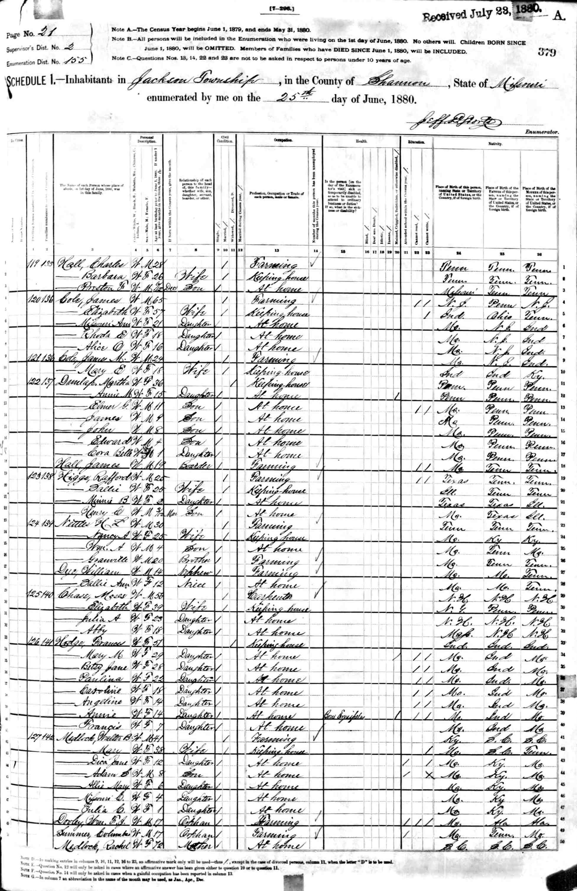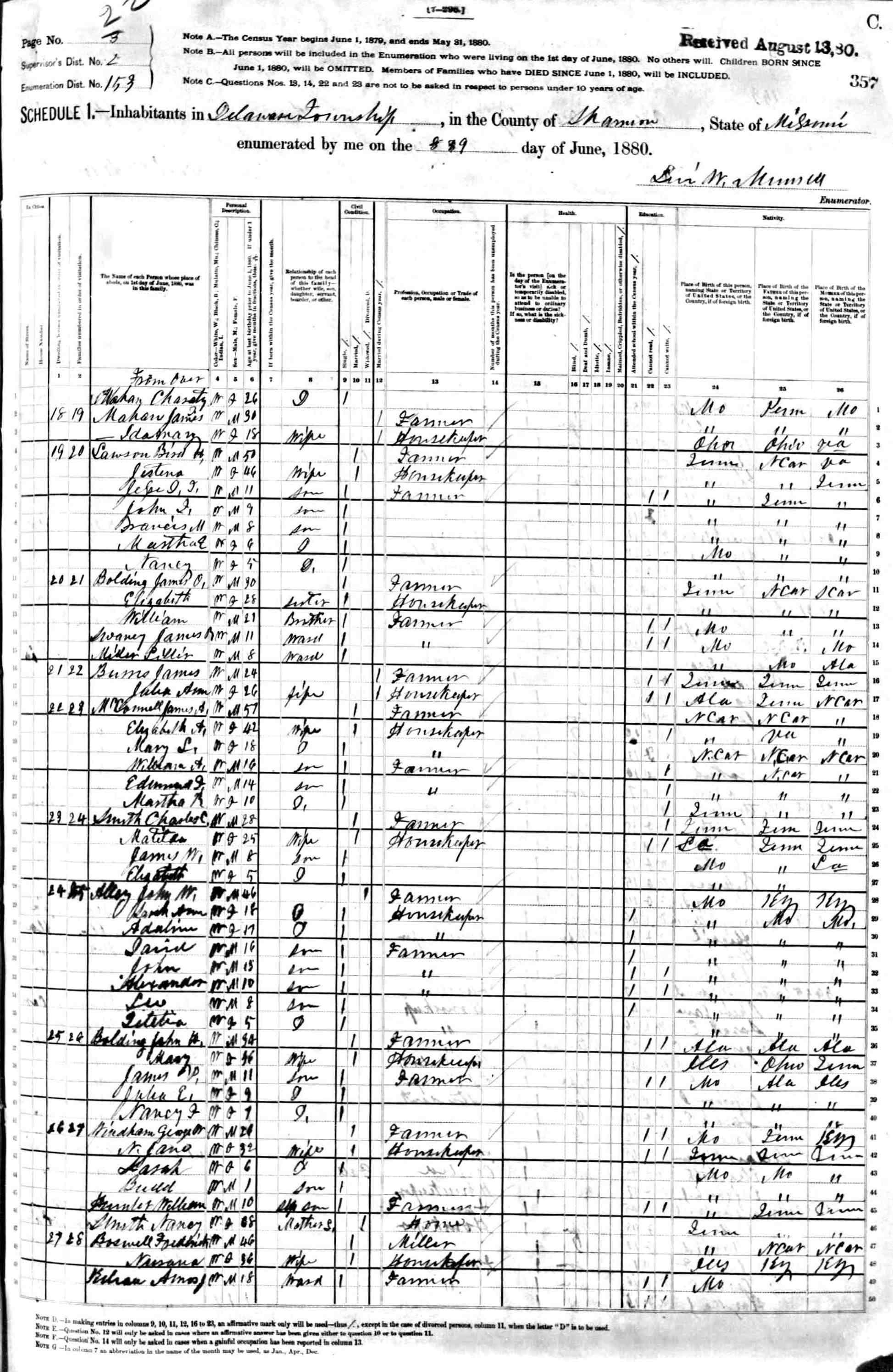 1880 Shannon County Census