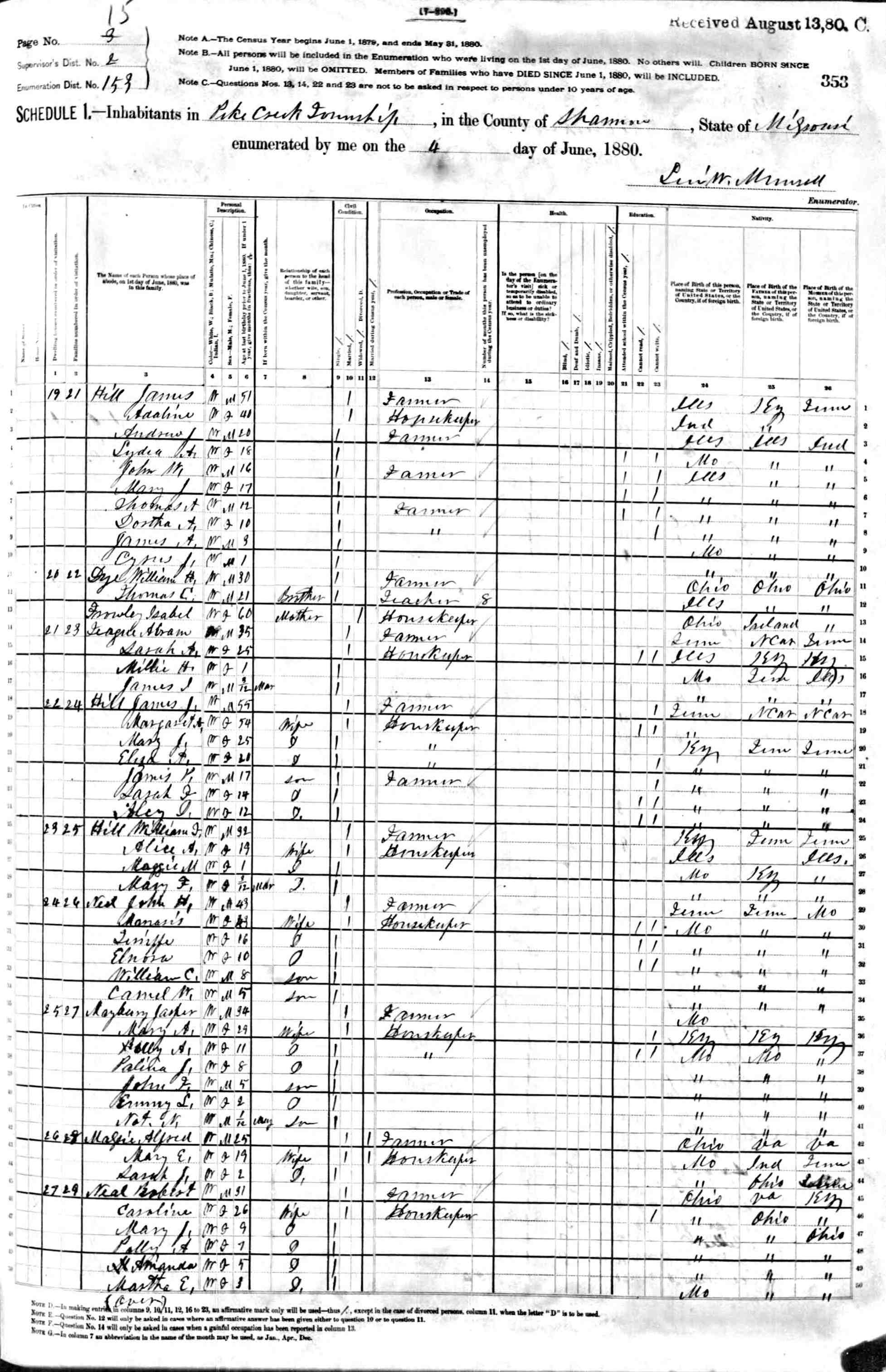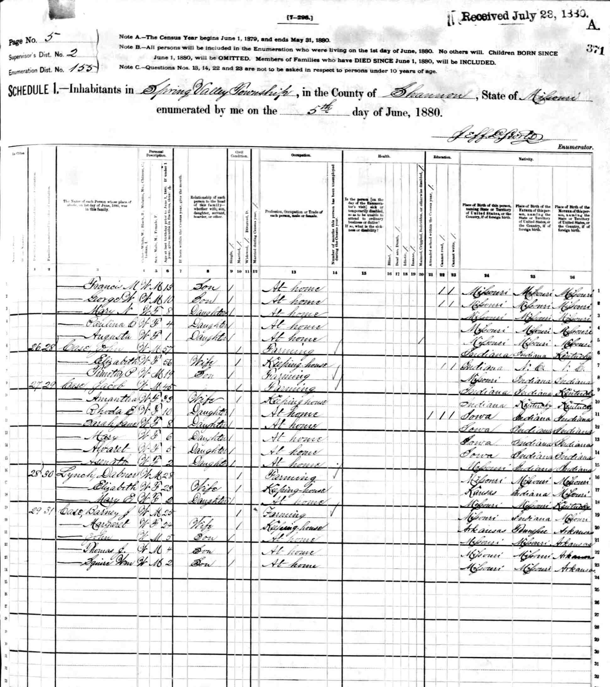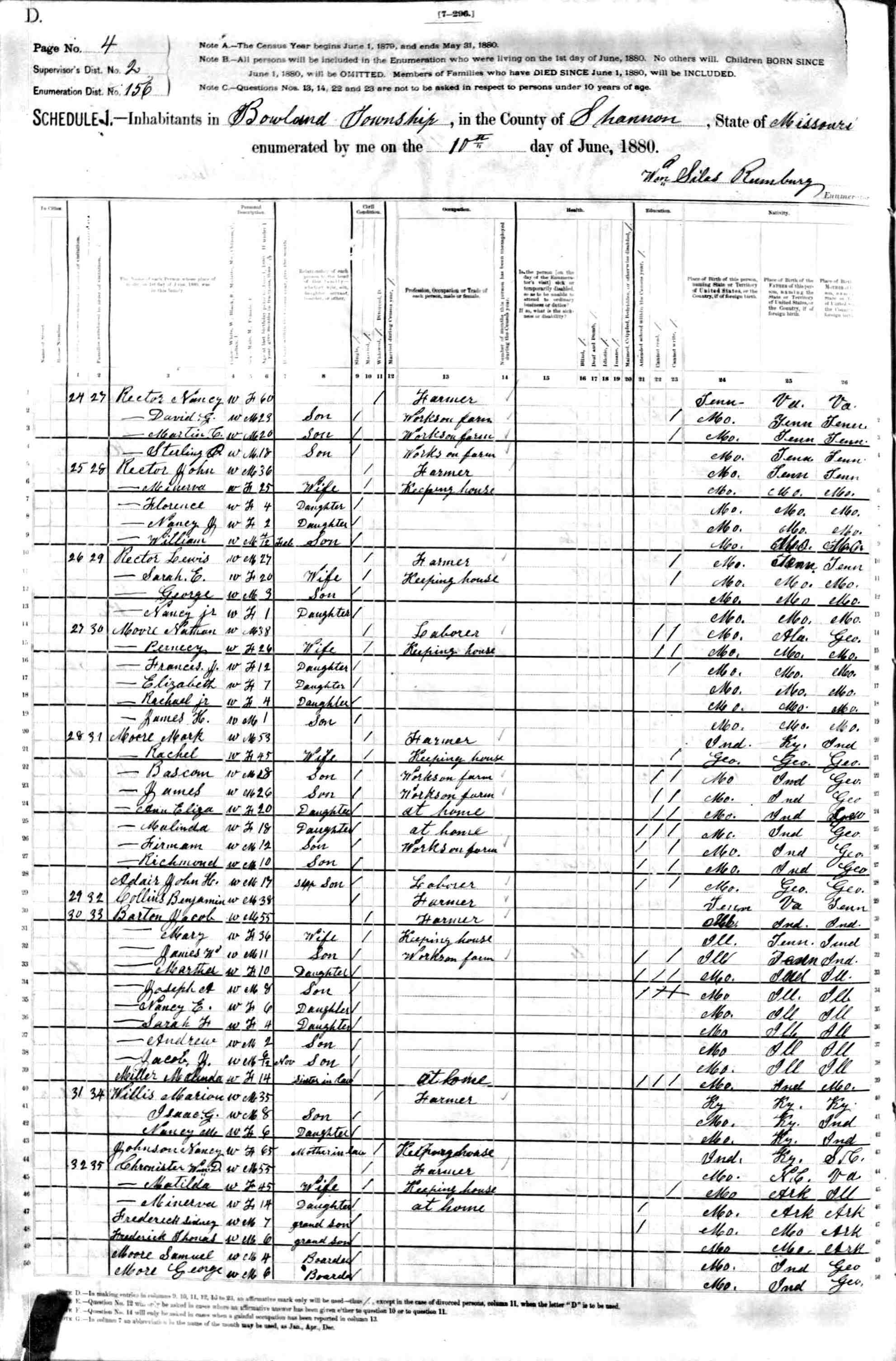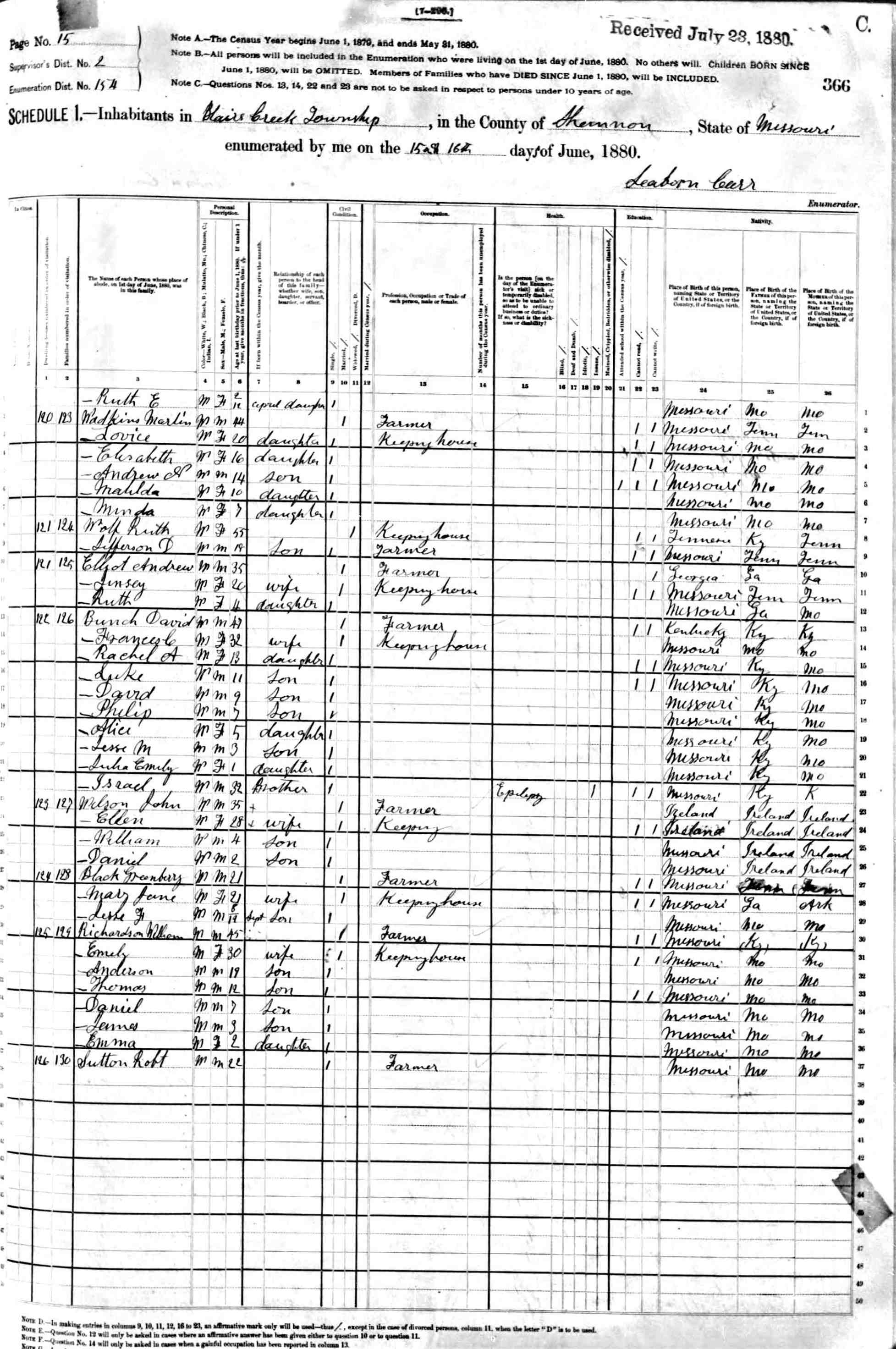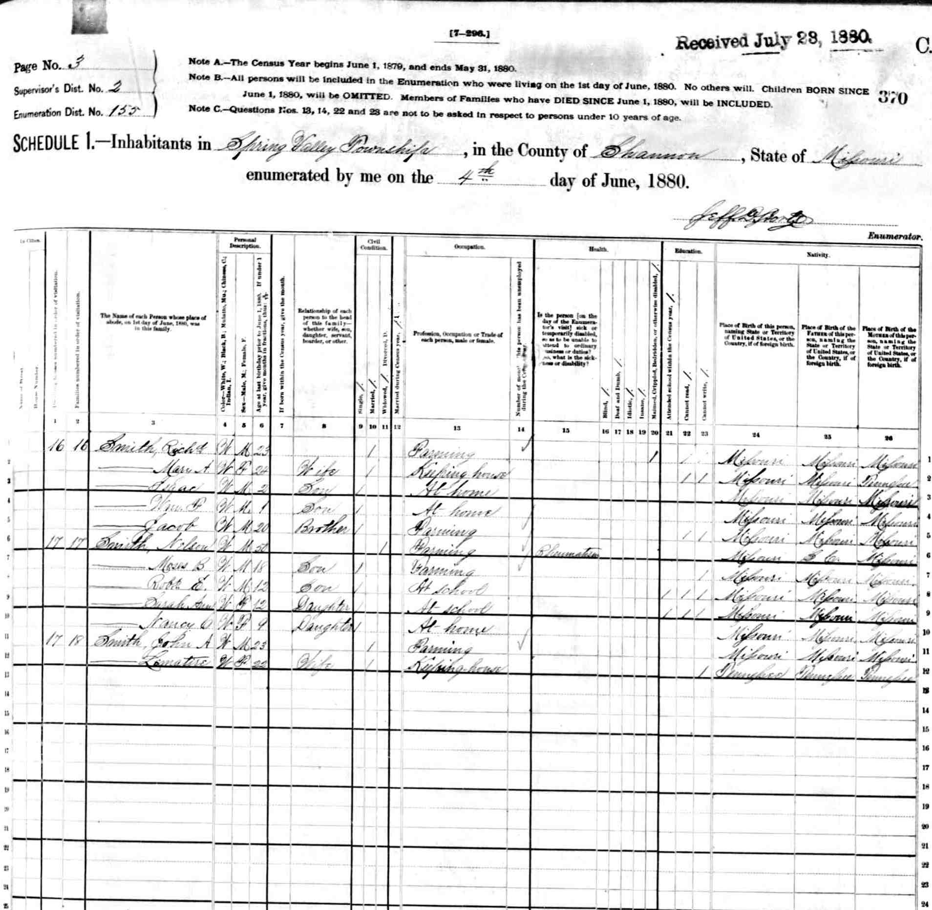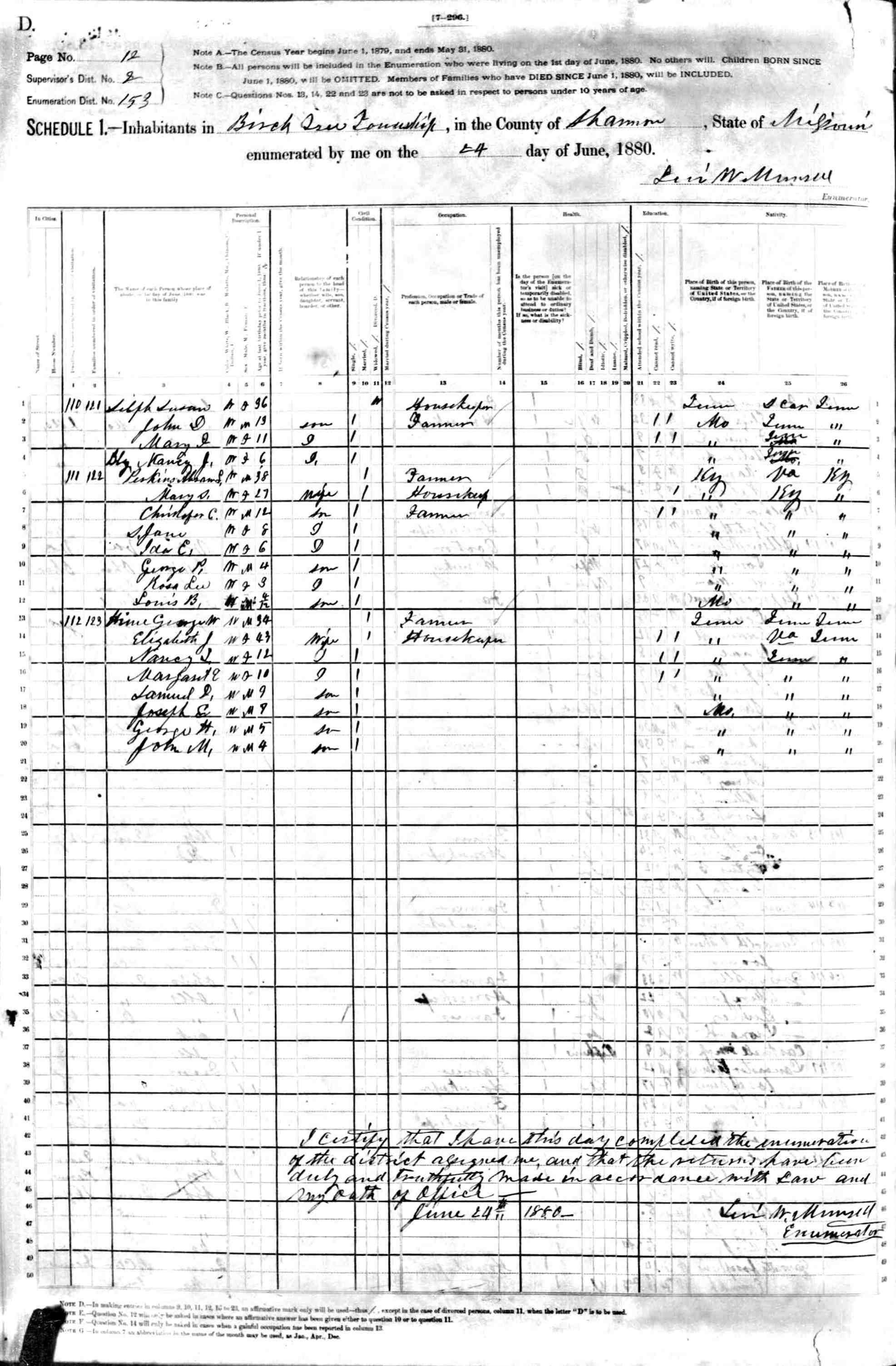 1880 Shannon County Census