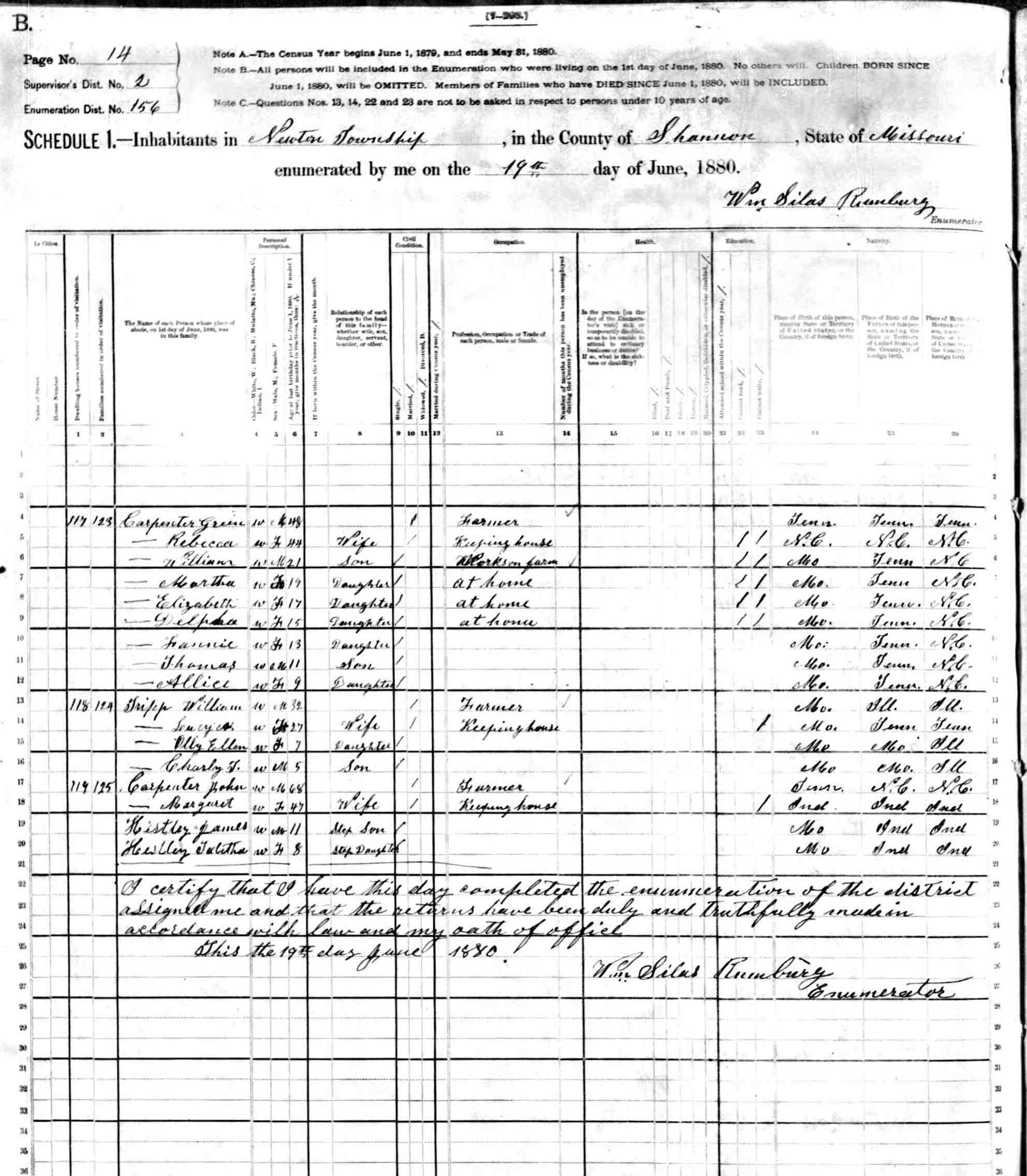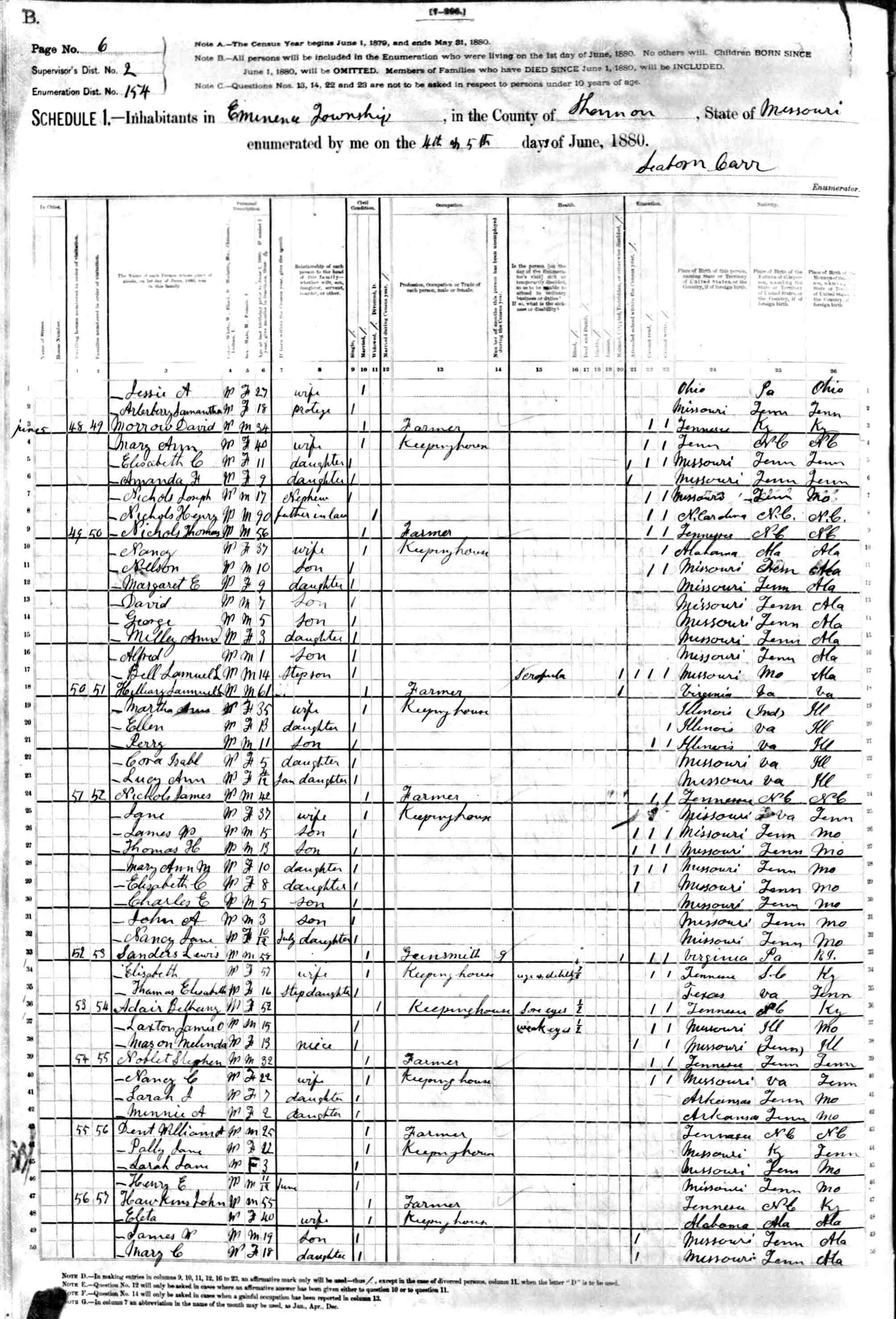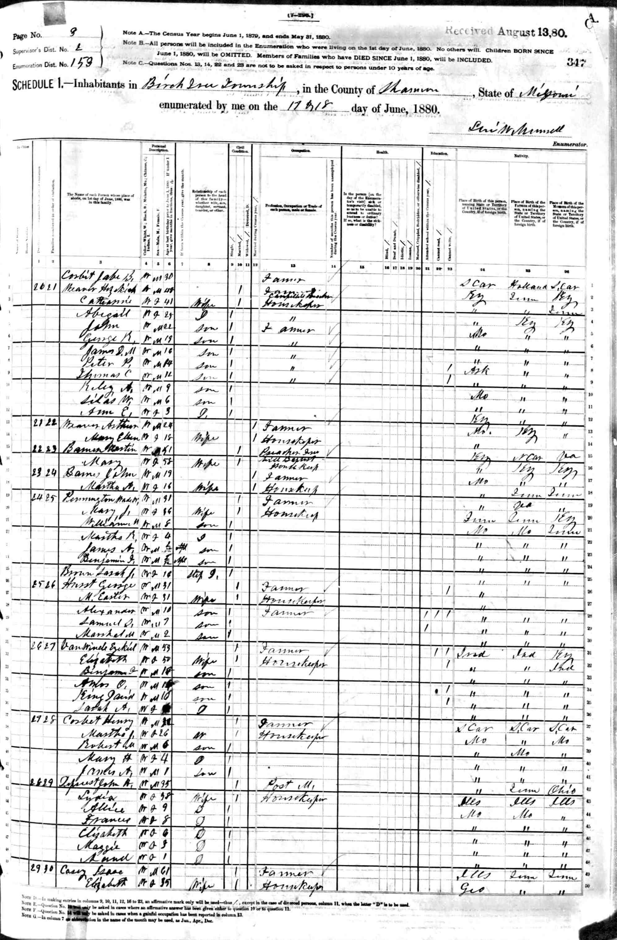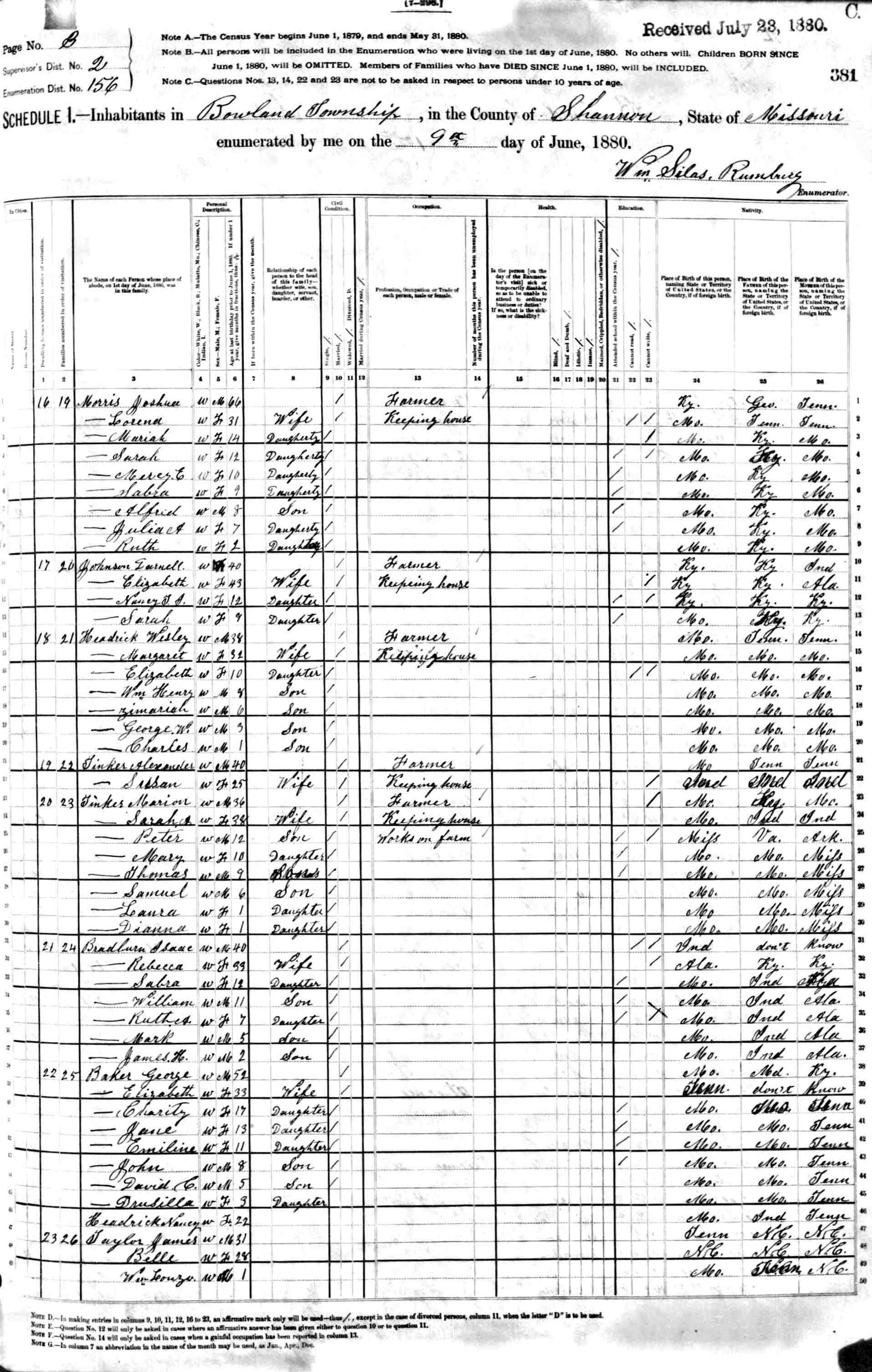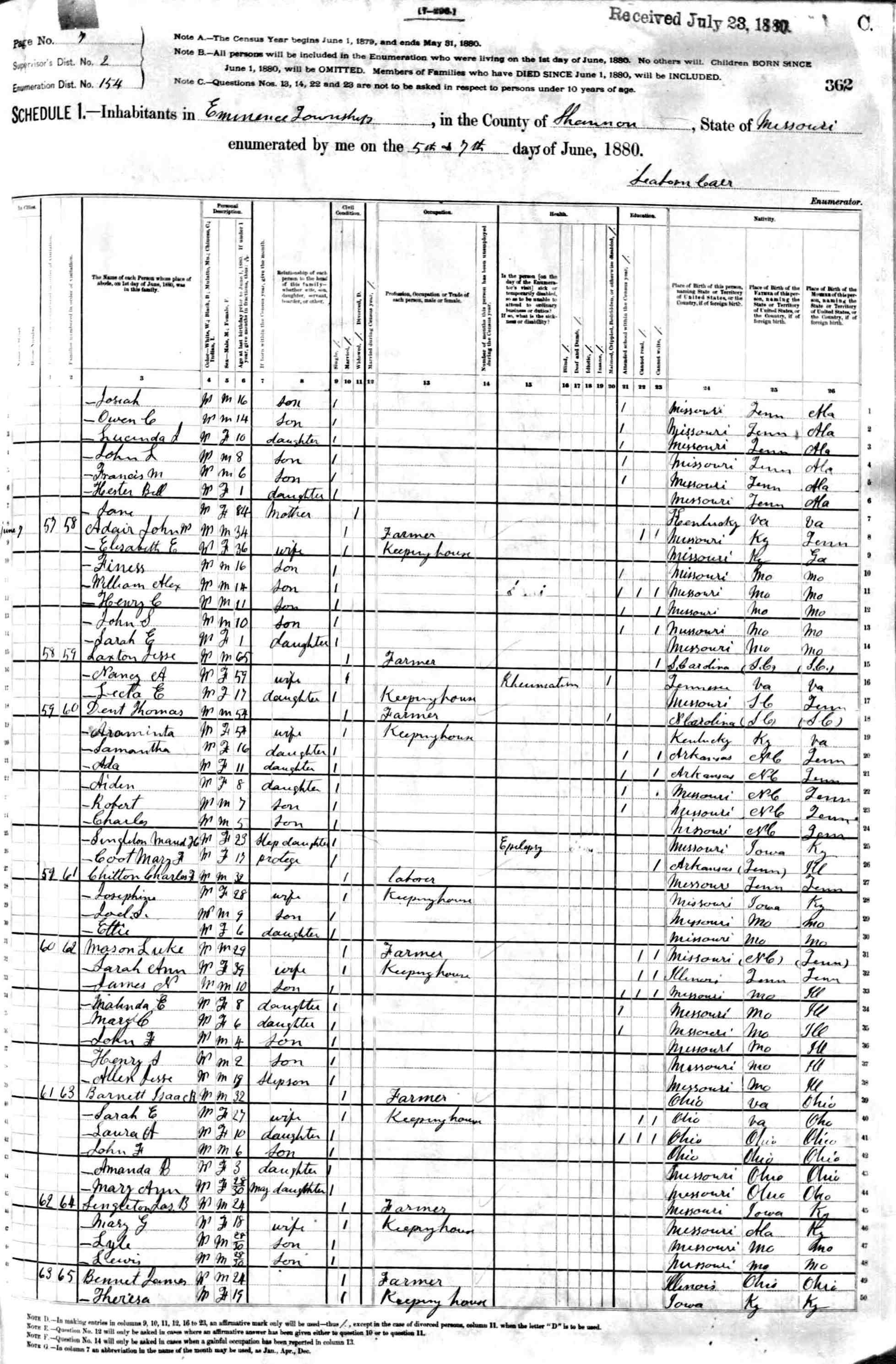 1880 Shannon County Census