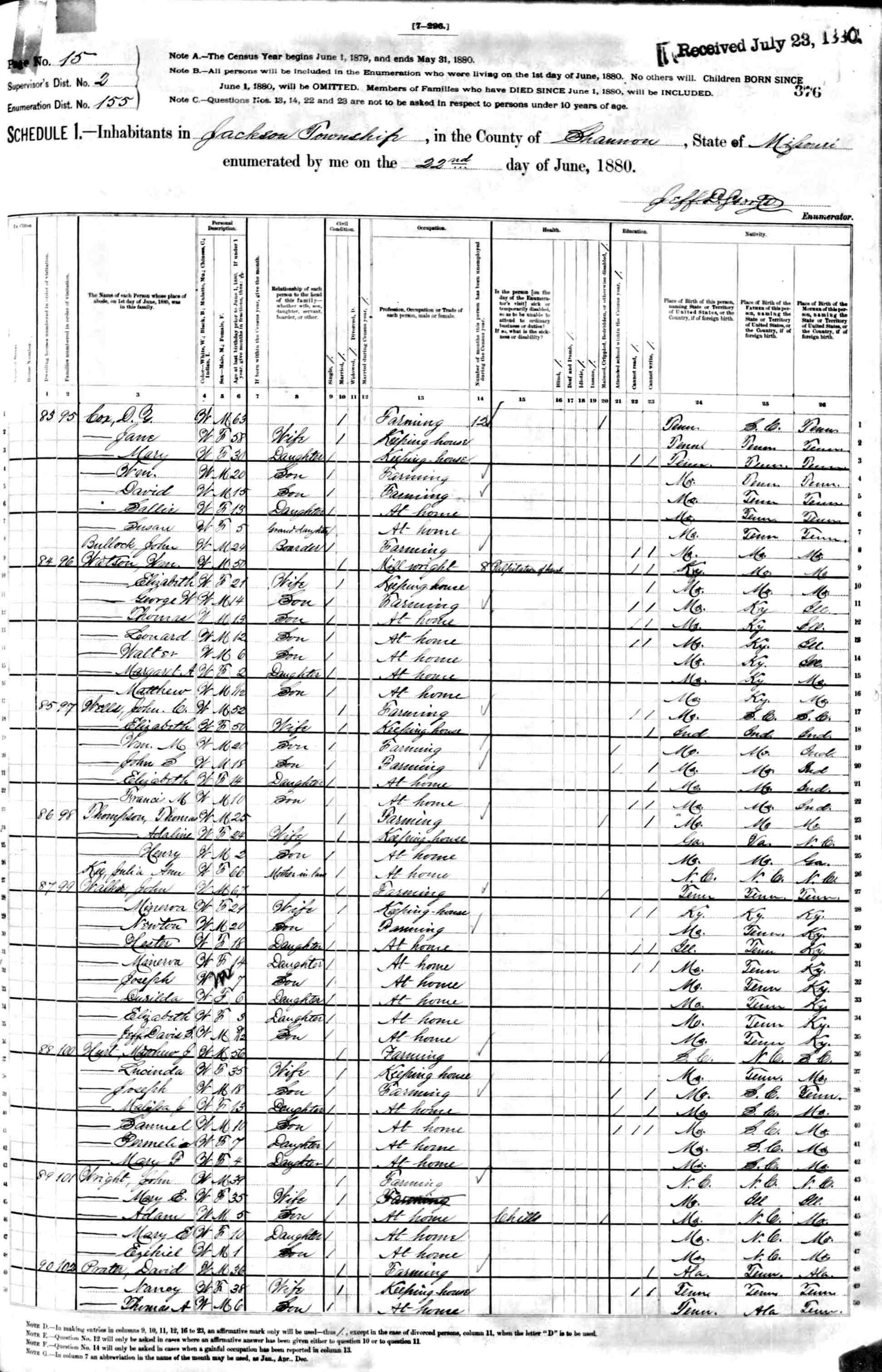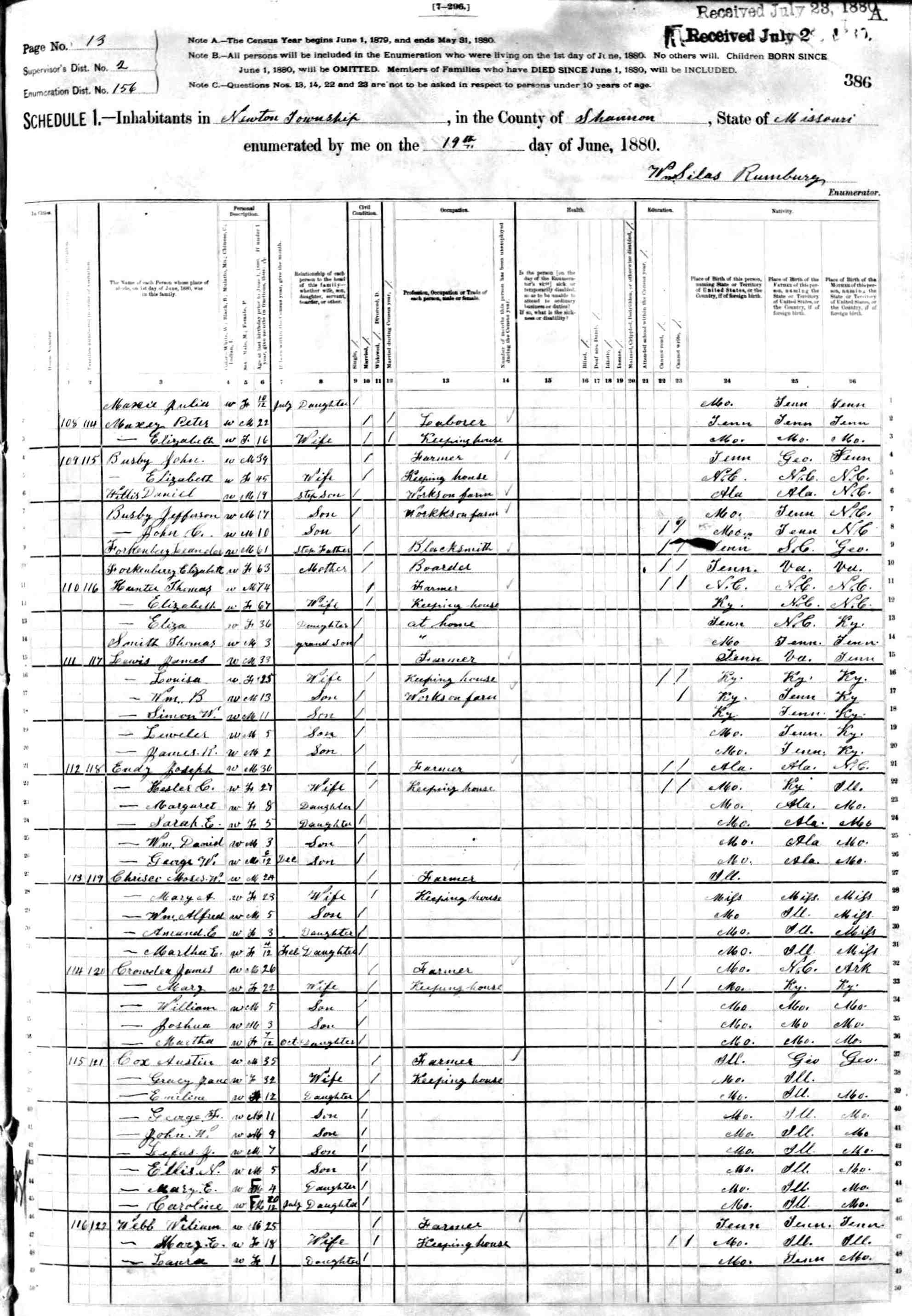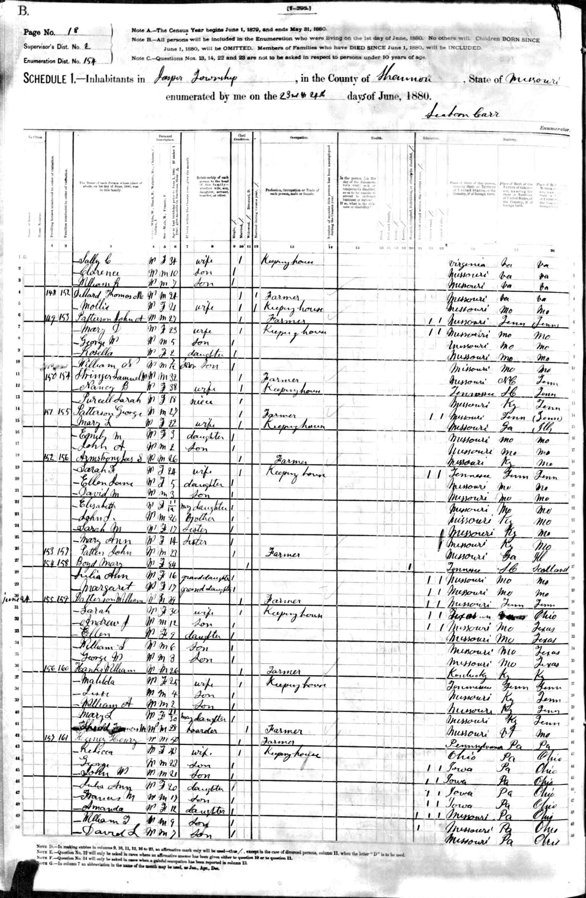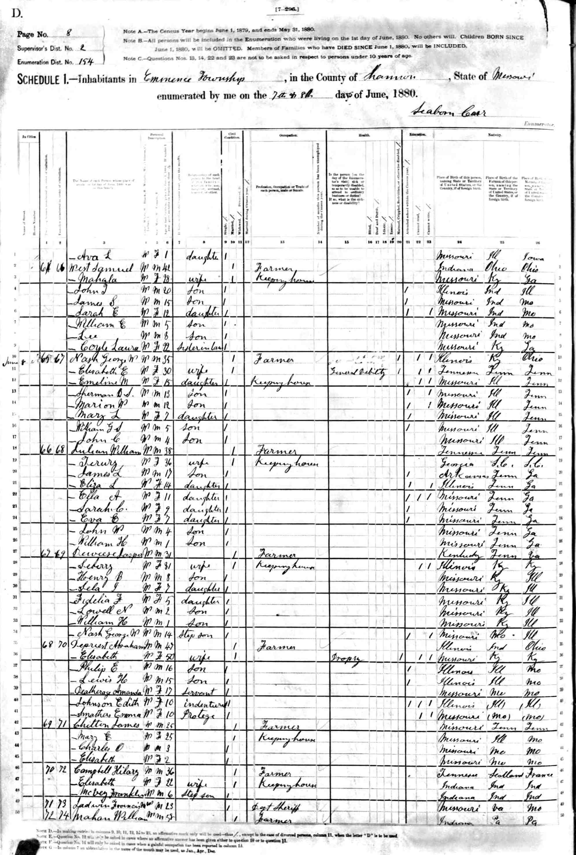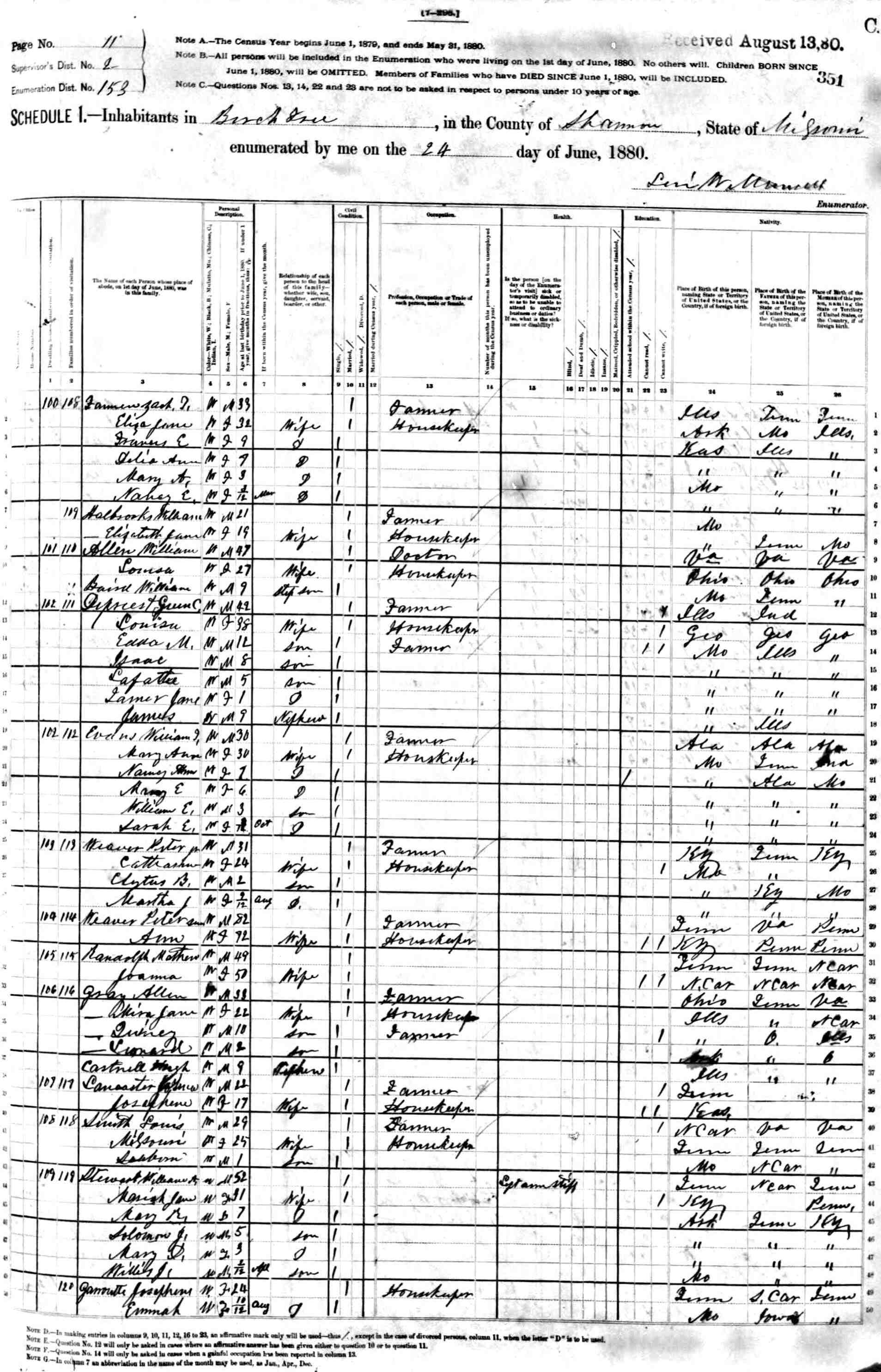1880 Shannon County Census