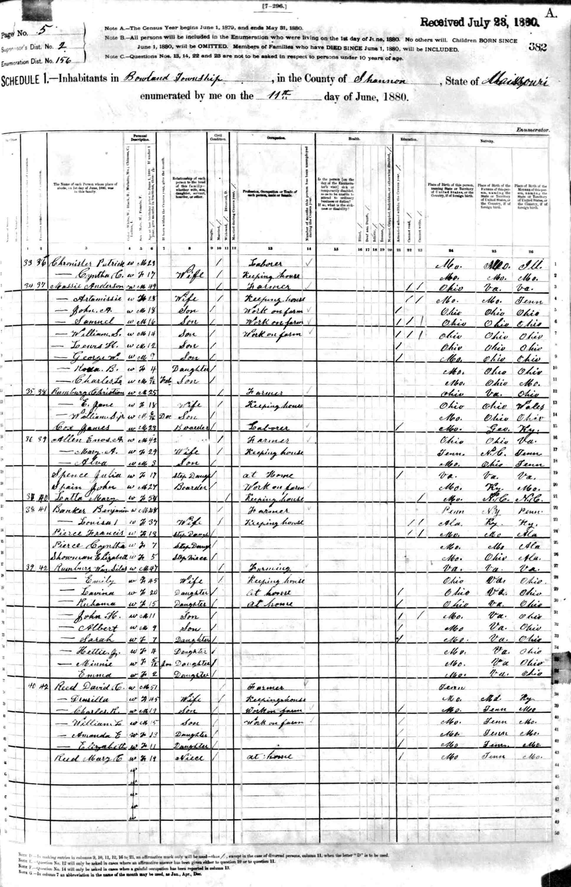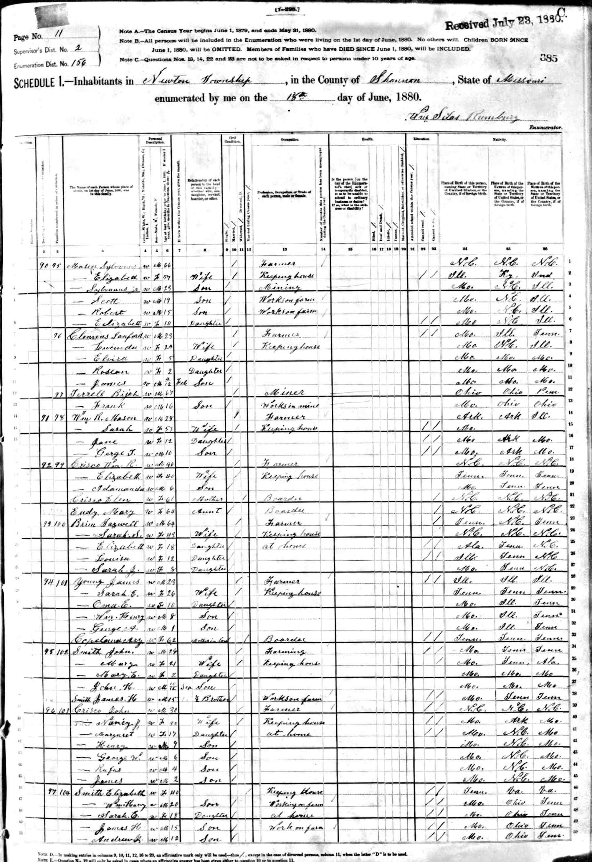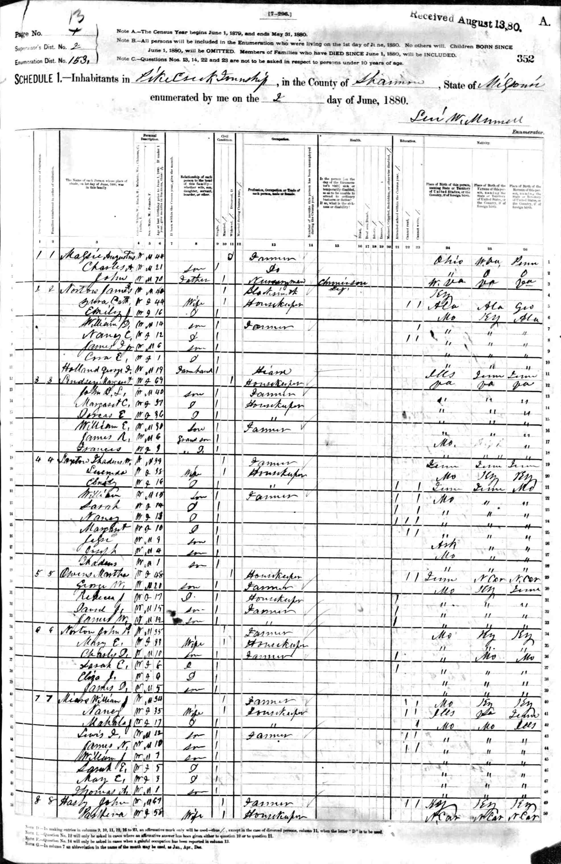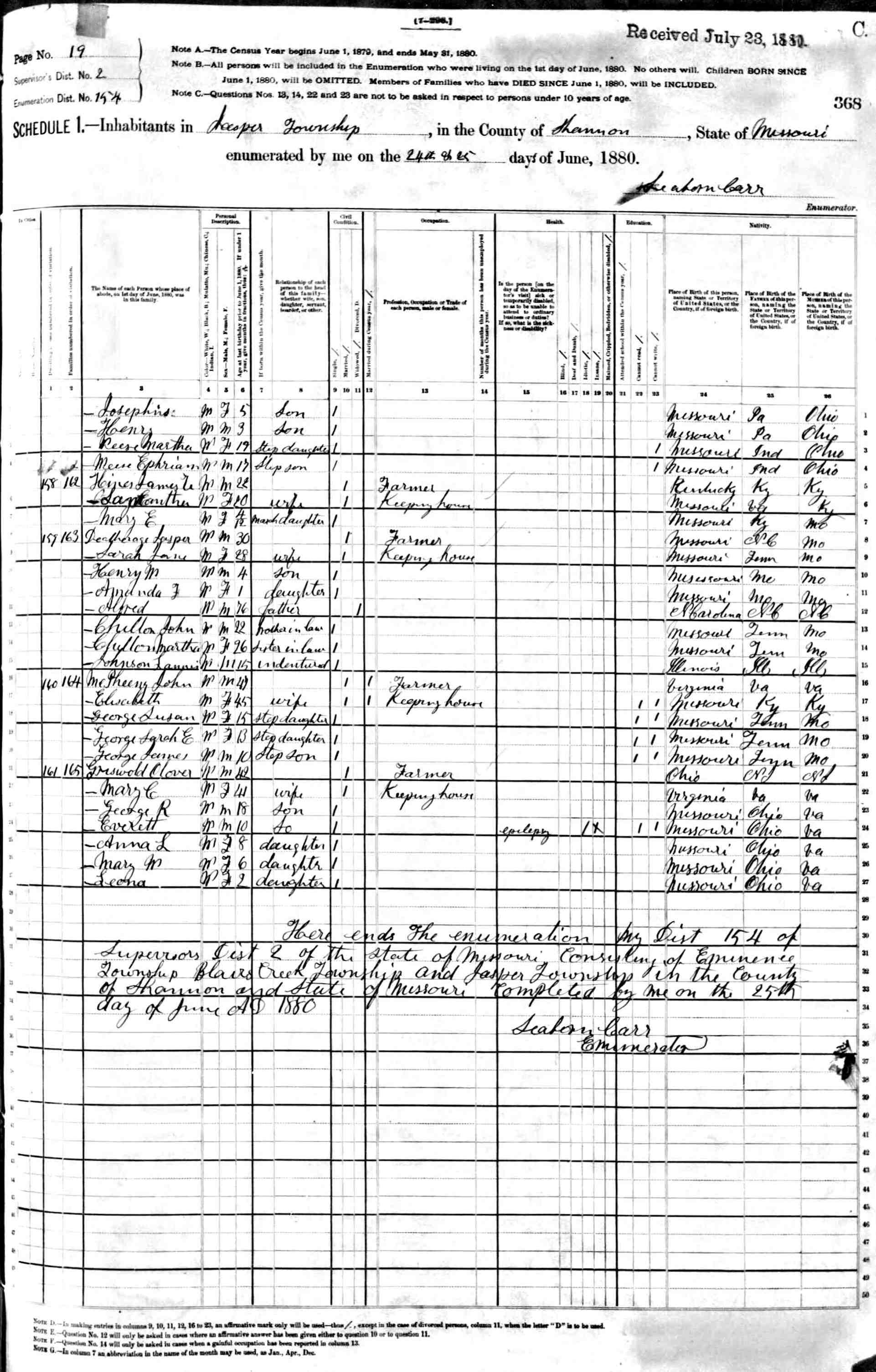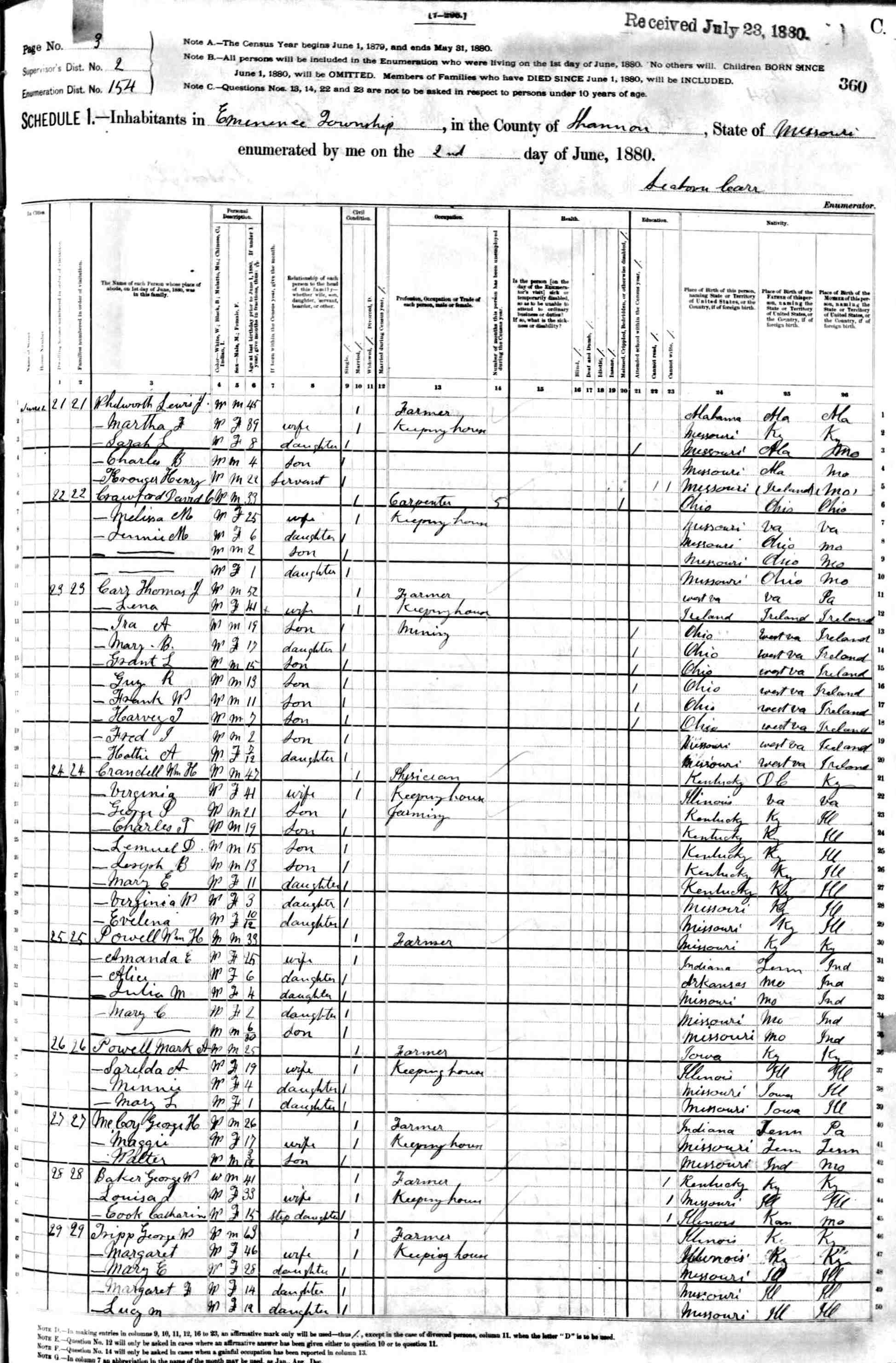 1880 Shannon County Census