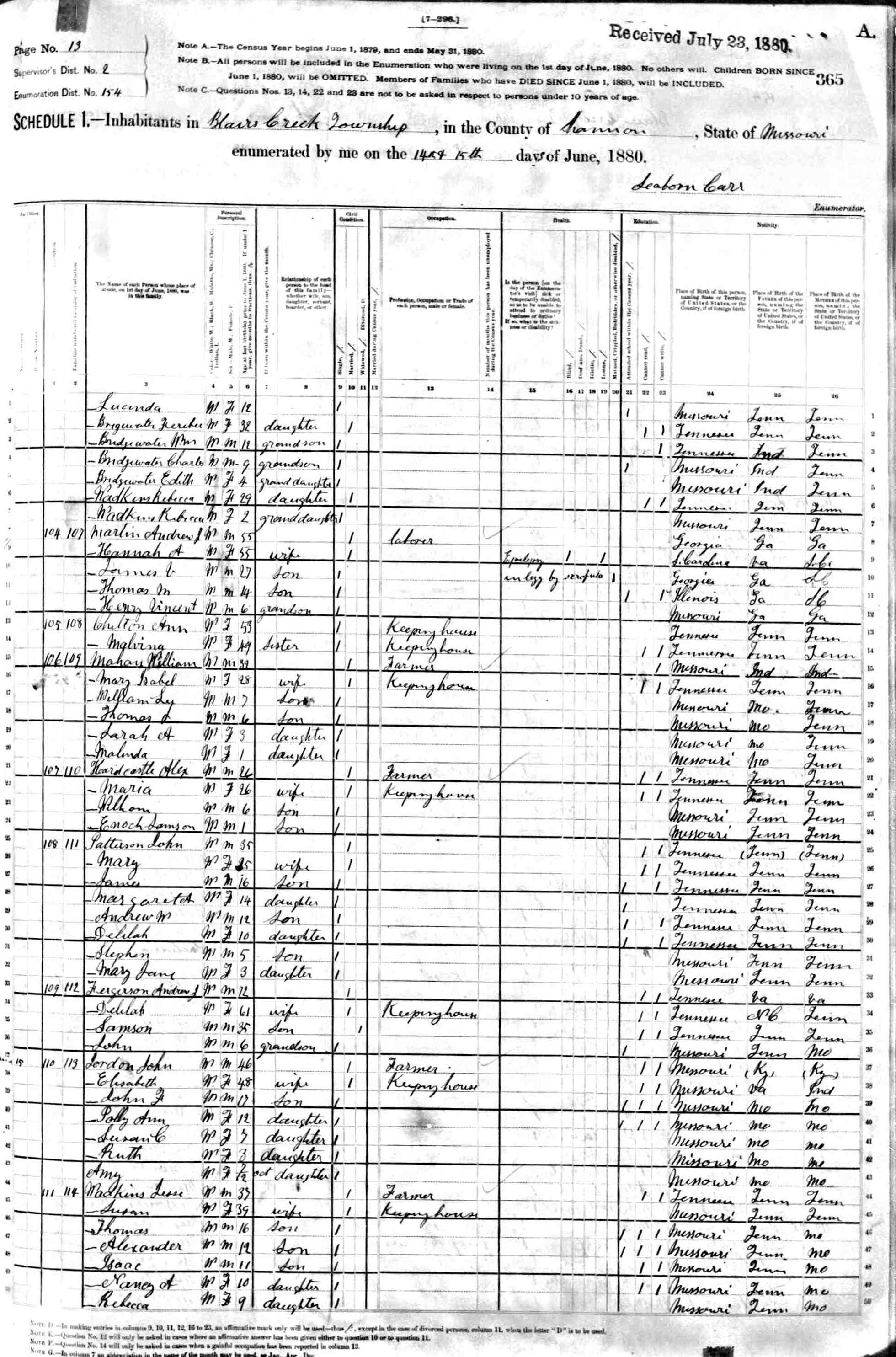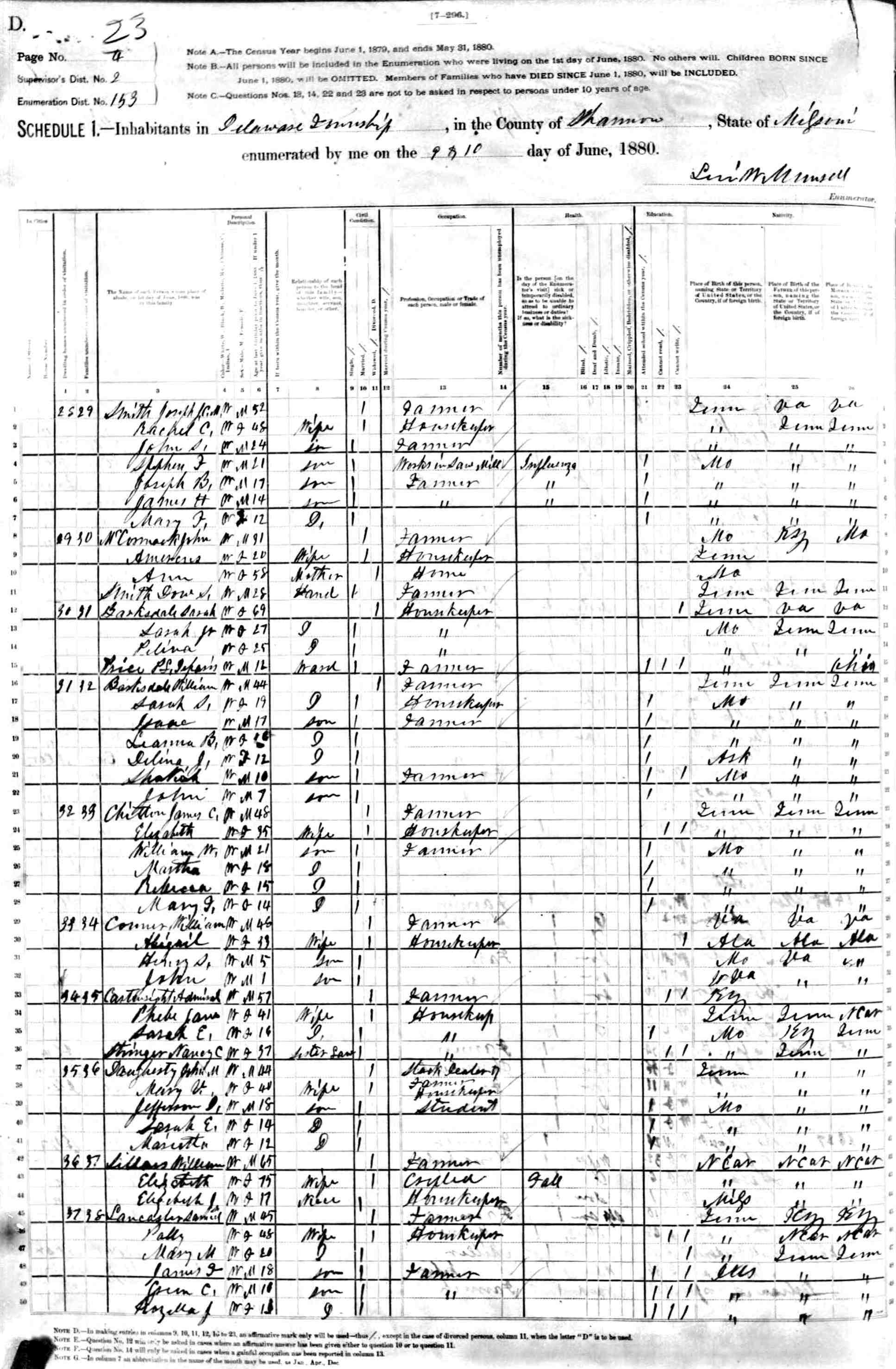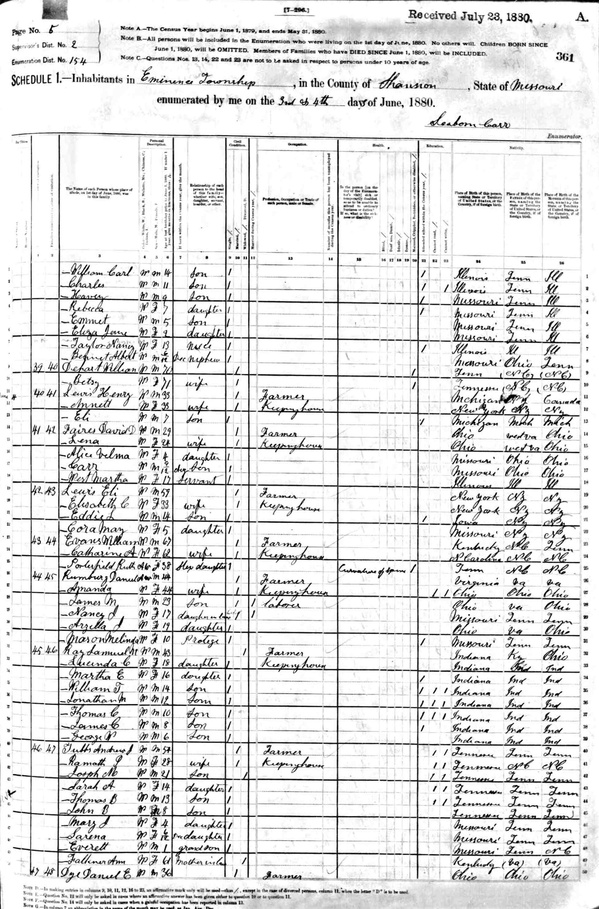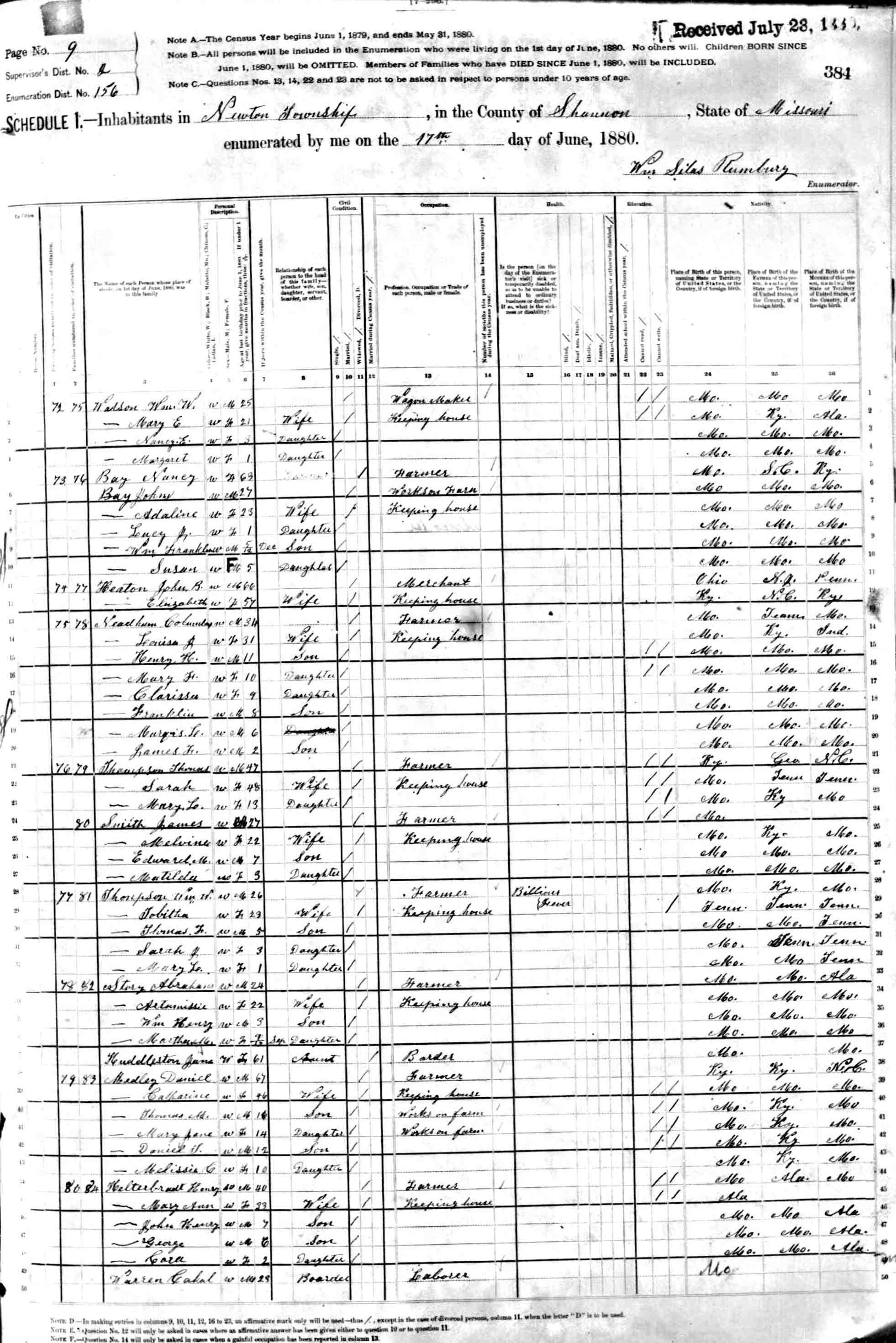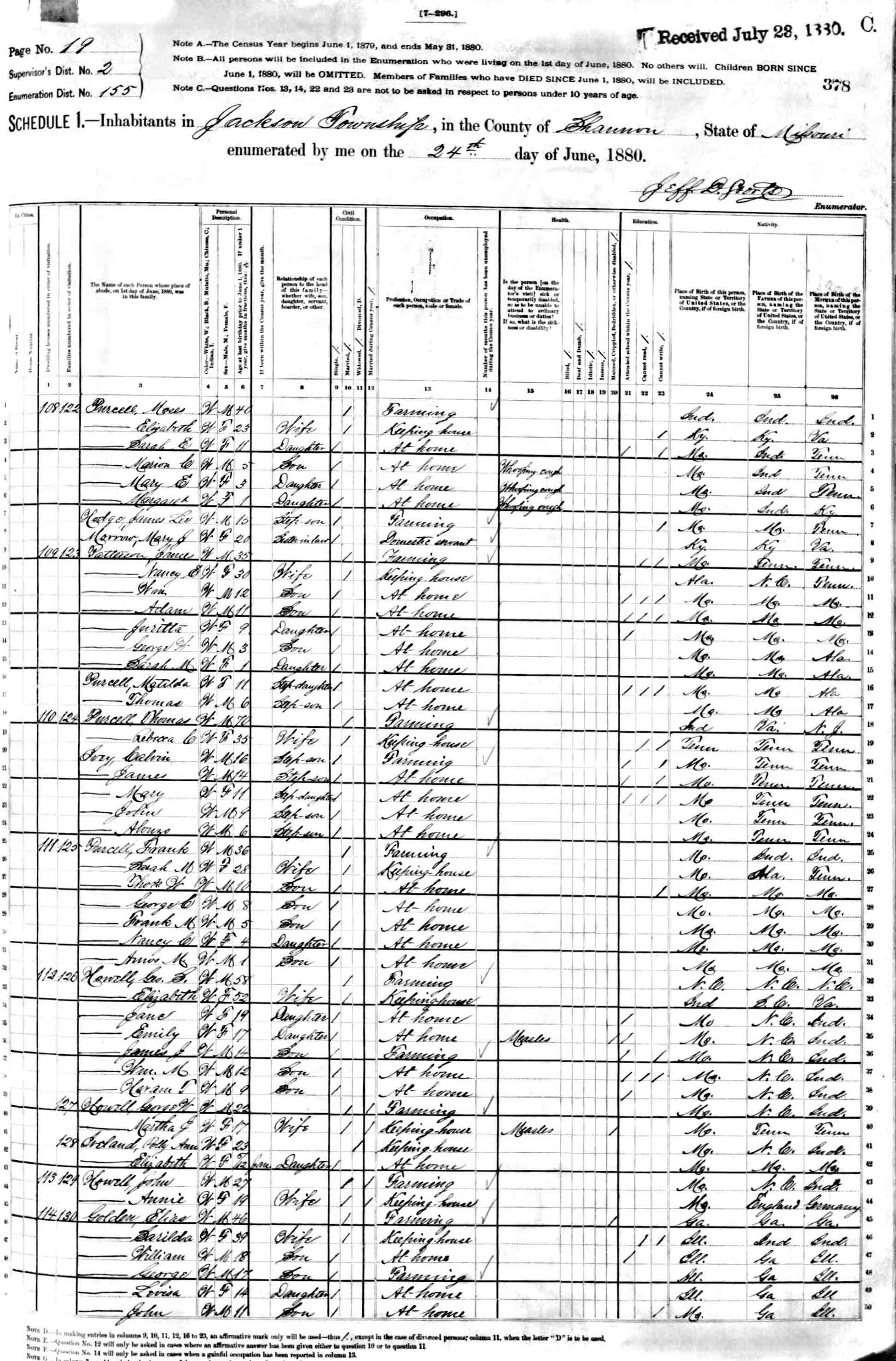 1880 Shannon County Census