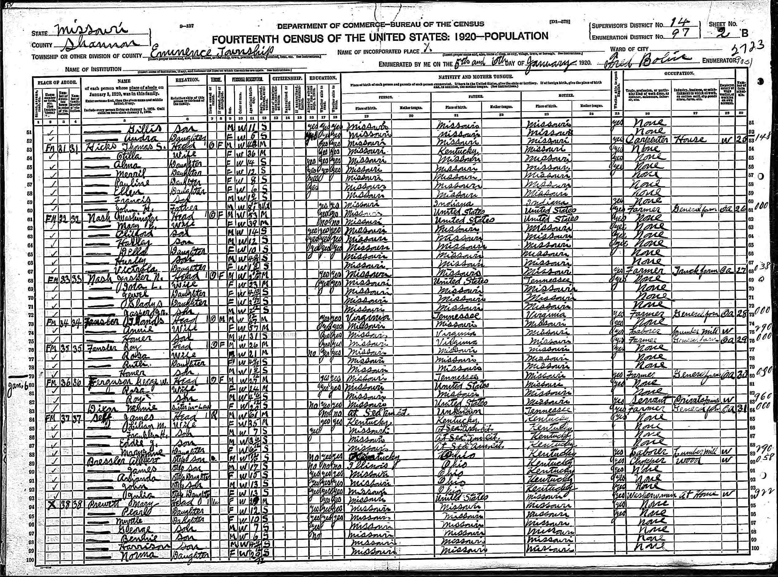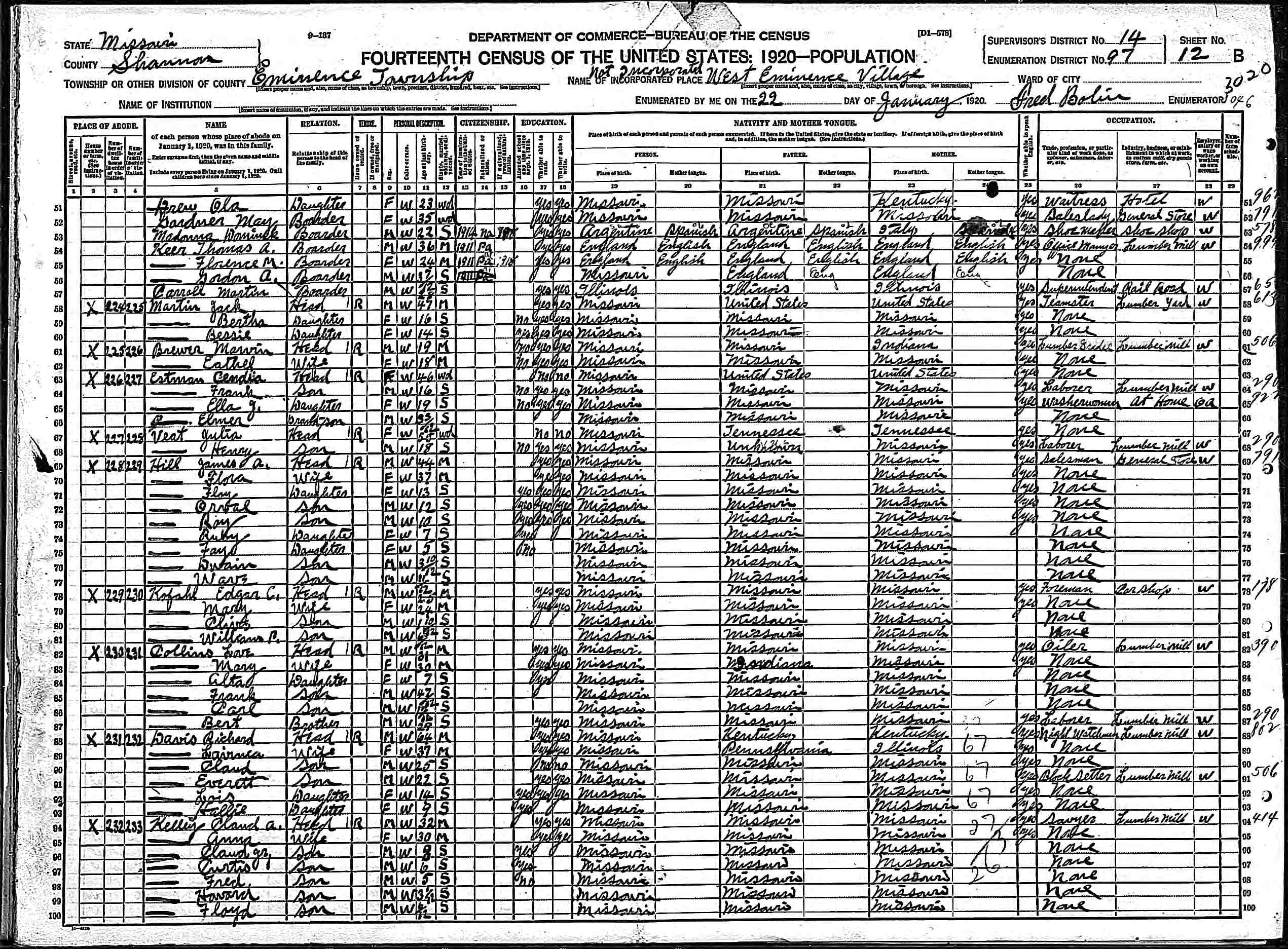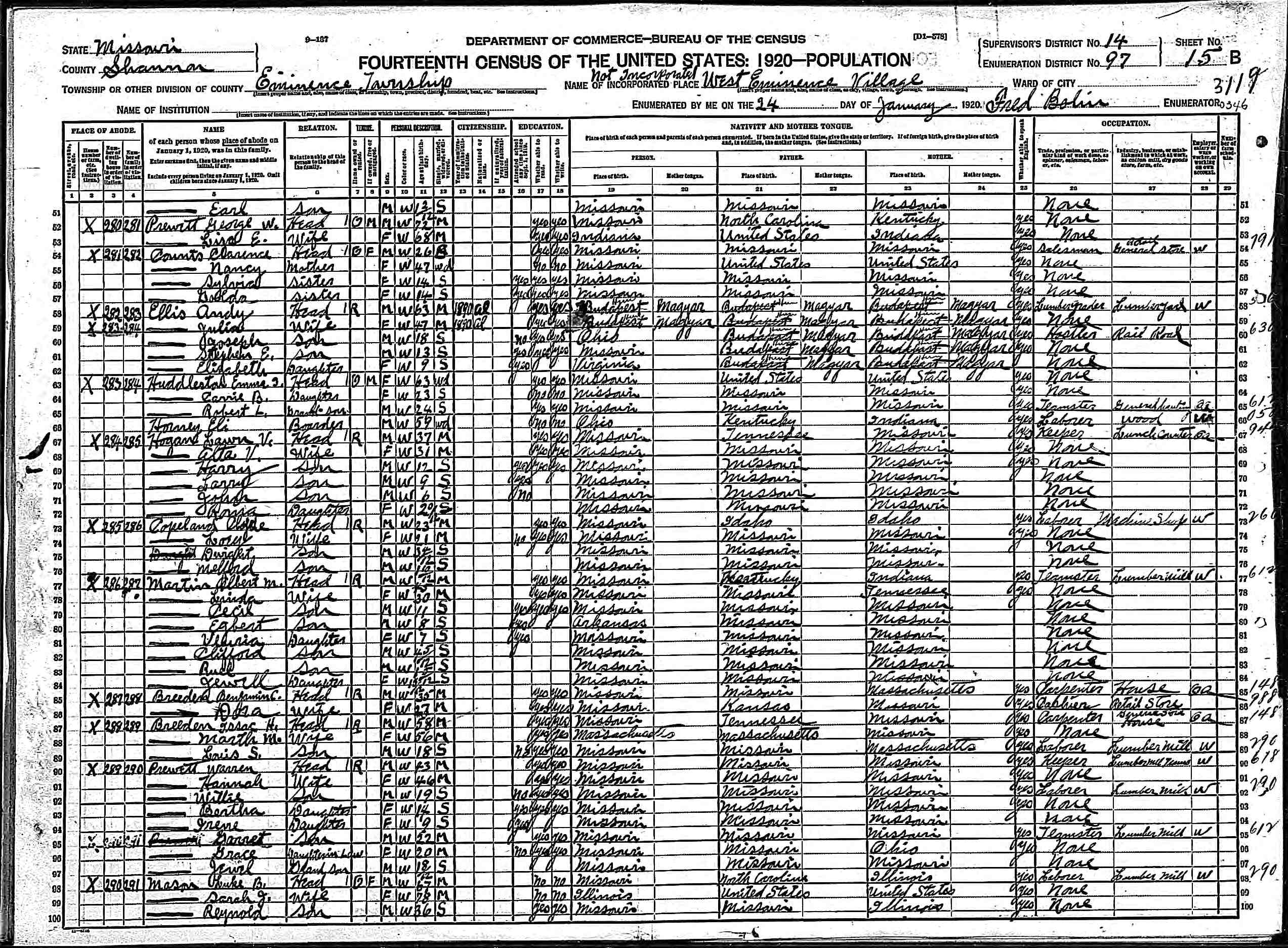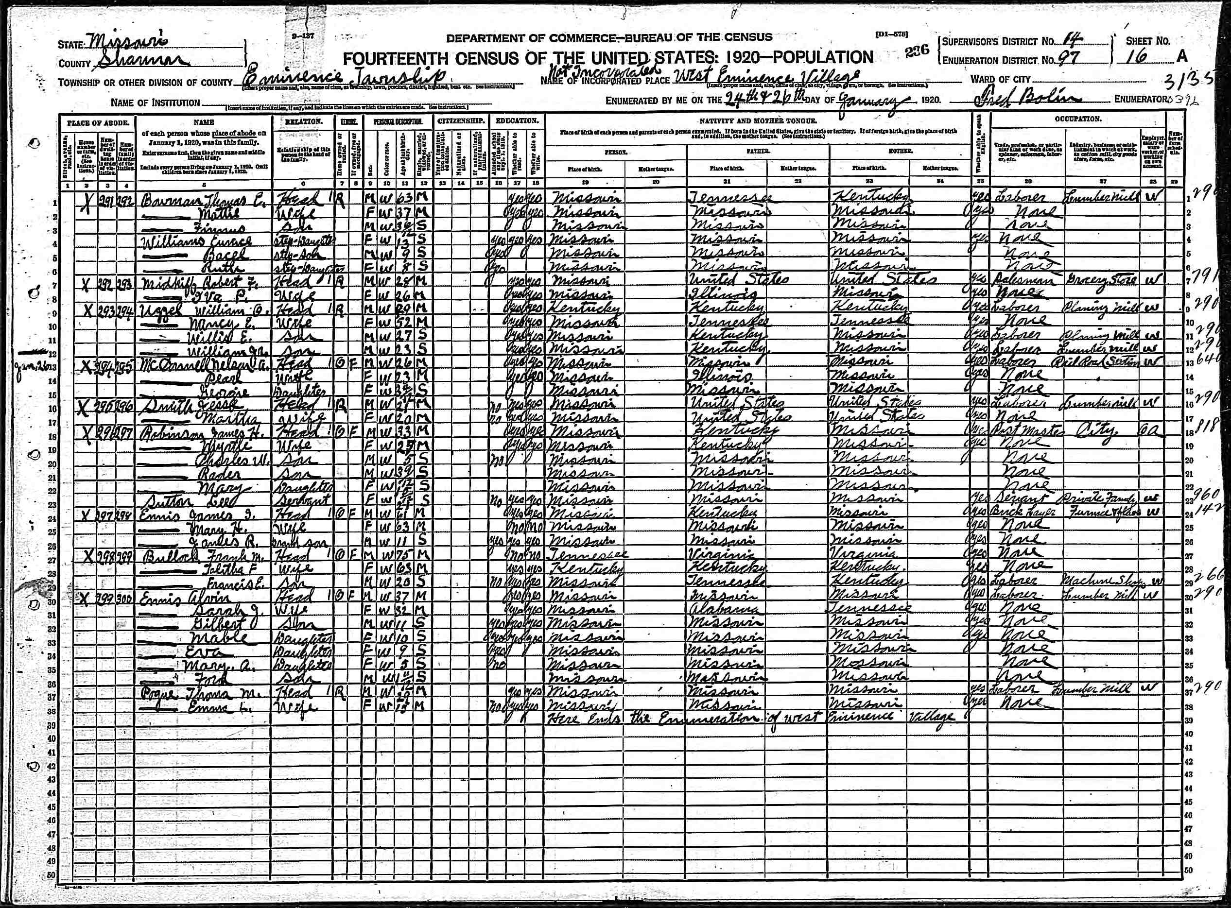 Dist 97 WEST EMINENCE Eminence township, including Shannon Co. Almshouse, Shannon Co. Jail, Eminence town, West Eminence Village and Grassy township.; Each township, County Jail, Eminence town and Eminence village should be shown separately on schedules. |