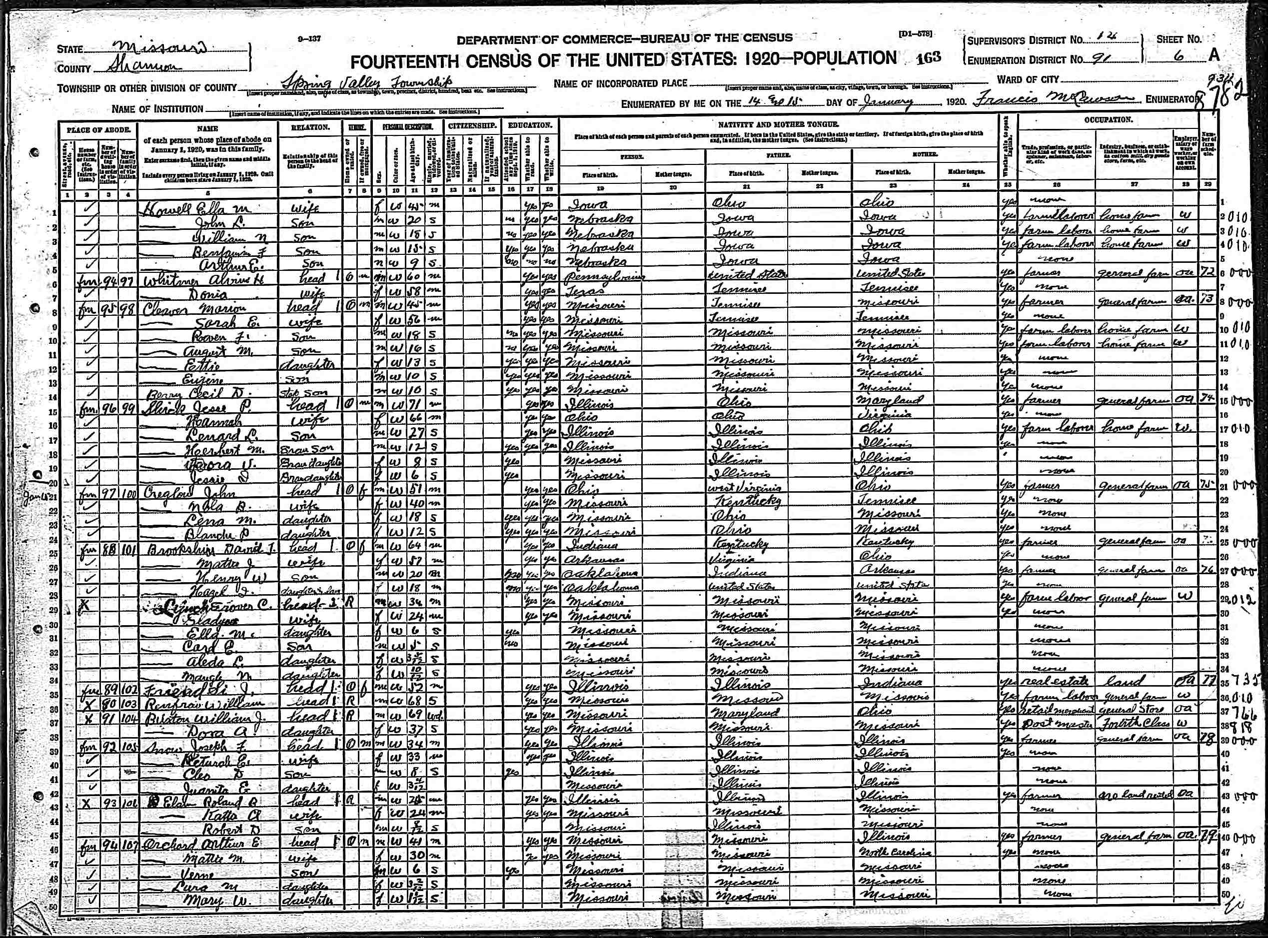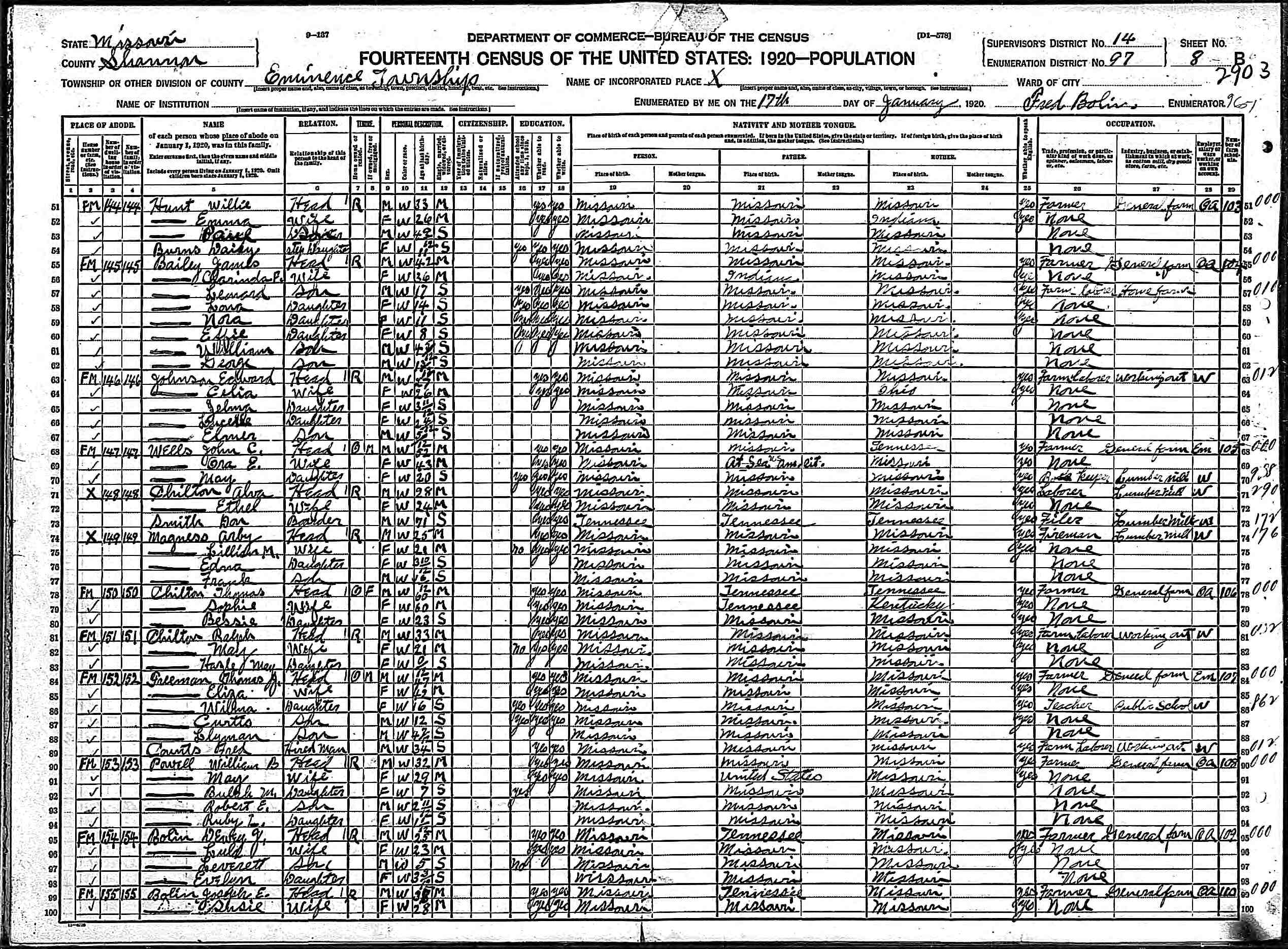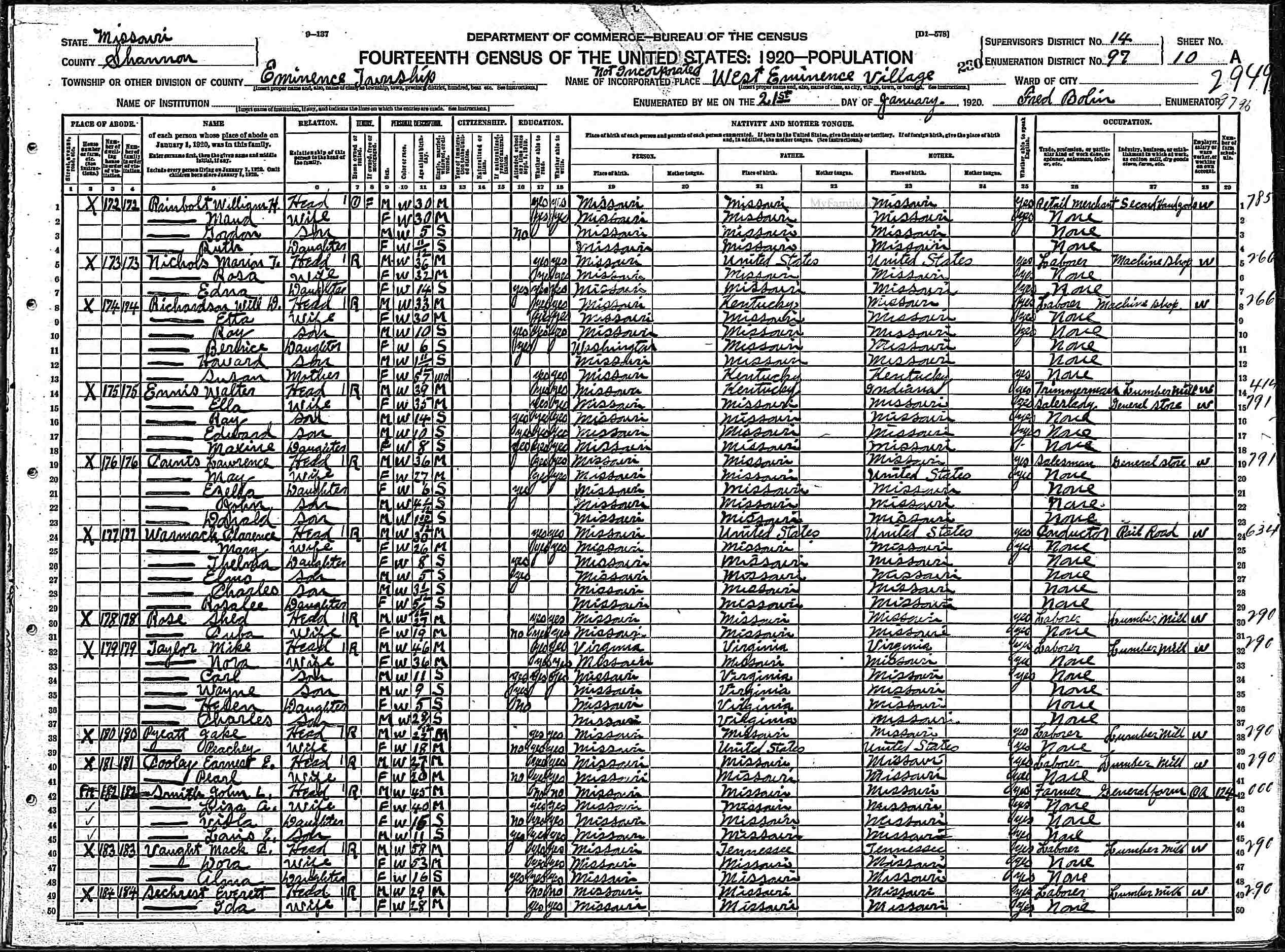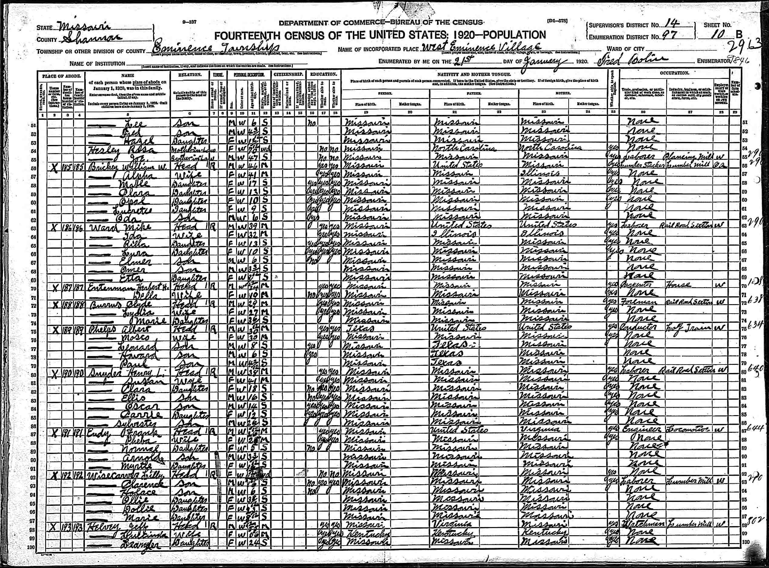 Dist 97 WEST EMINENCE Eminence township, including Shannon Co. Almshouse, Shannon Co. Jail, Eminence town, West Eminence Village and Grassy township.; Each township, County Jail, Eminence town and Eminence village should be shown separately on schedules. |