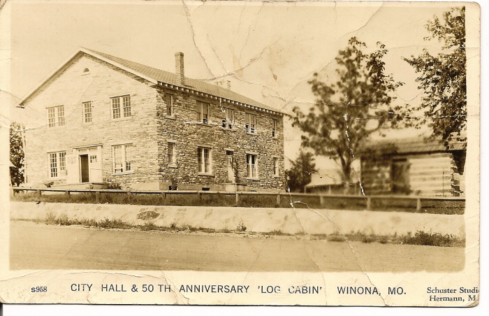 ![]() WINONA CITY HALL & 50TH ANNIVERSARY Stamped on the back, "This is the Court House Winona offers to give you. Why should you allow additional taxes to build another one?" Vote "YES" to accept this Court House." Submitted by Marcia J. Wagner |