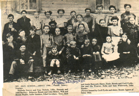 Mount Zion School, 1906 From records of Esther Harrod Barkley given to me in 1970 |
