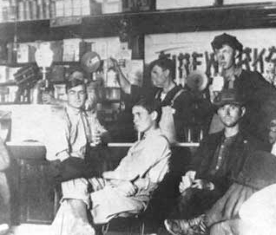 Alley Store Interior of with Customers Sitting Around the Soda Fountain |