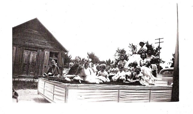 Unidentified workers building bandstand